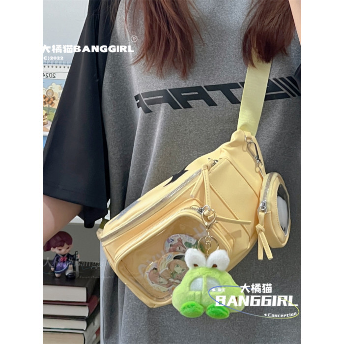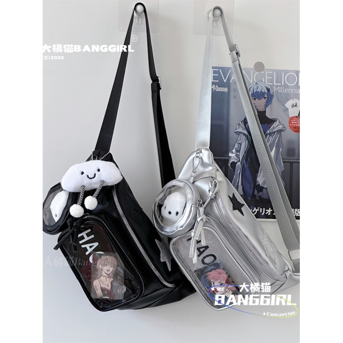 日系ins小衆暗黑PU痛包女透明吧唧徽章胸包穀子斜後後背包女學生腰包