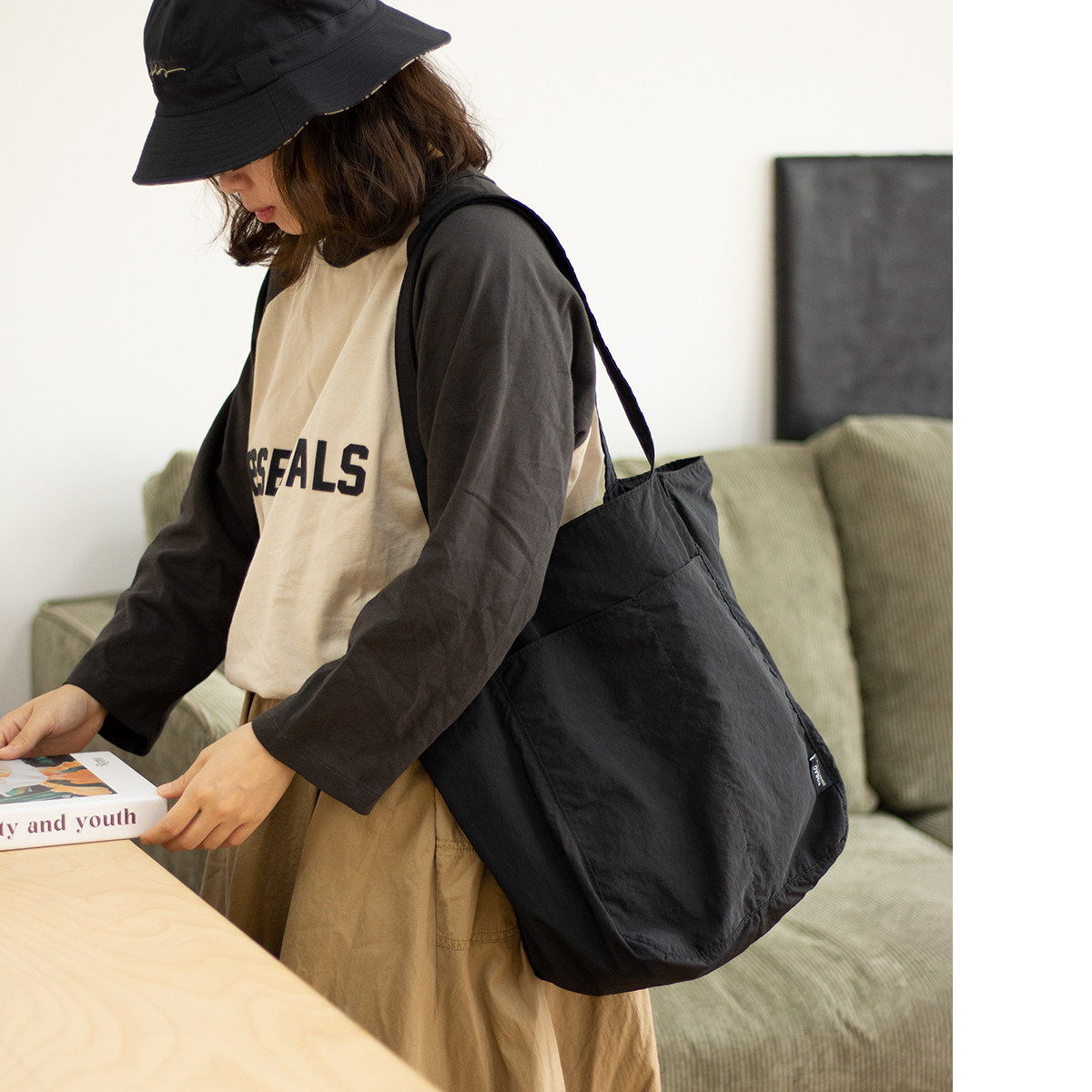 sobag日系防水尼龍休閒單肩布包女設計感小衆大容量通勤托特大包