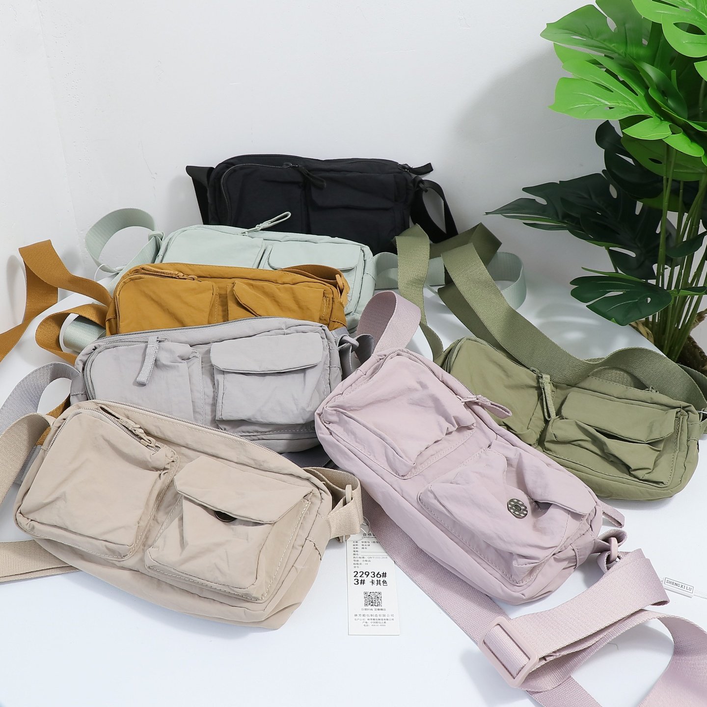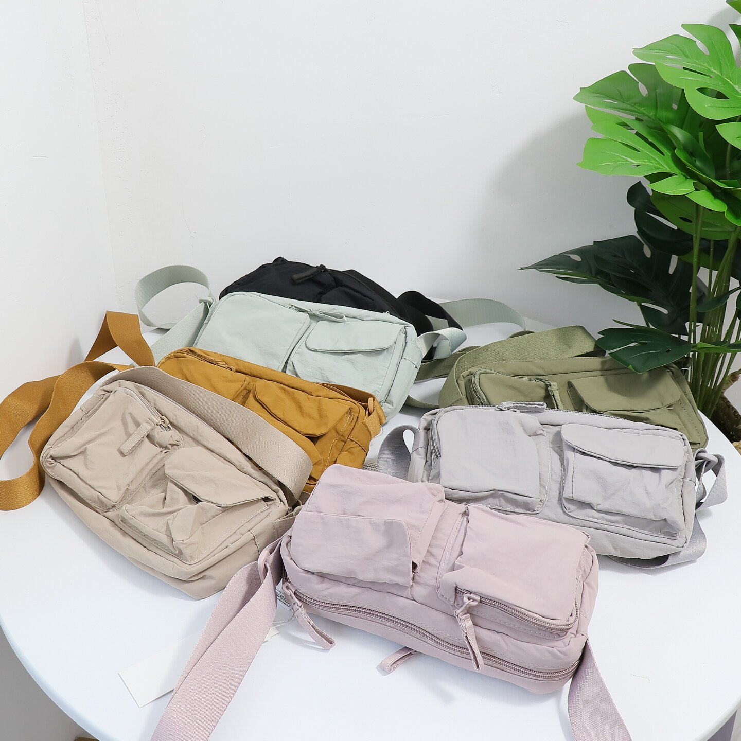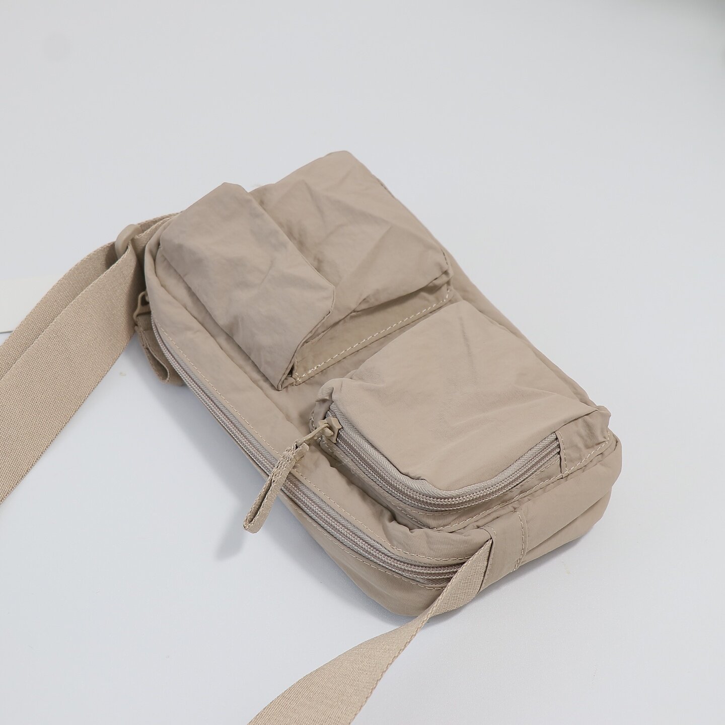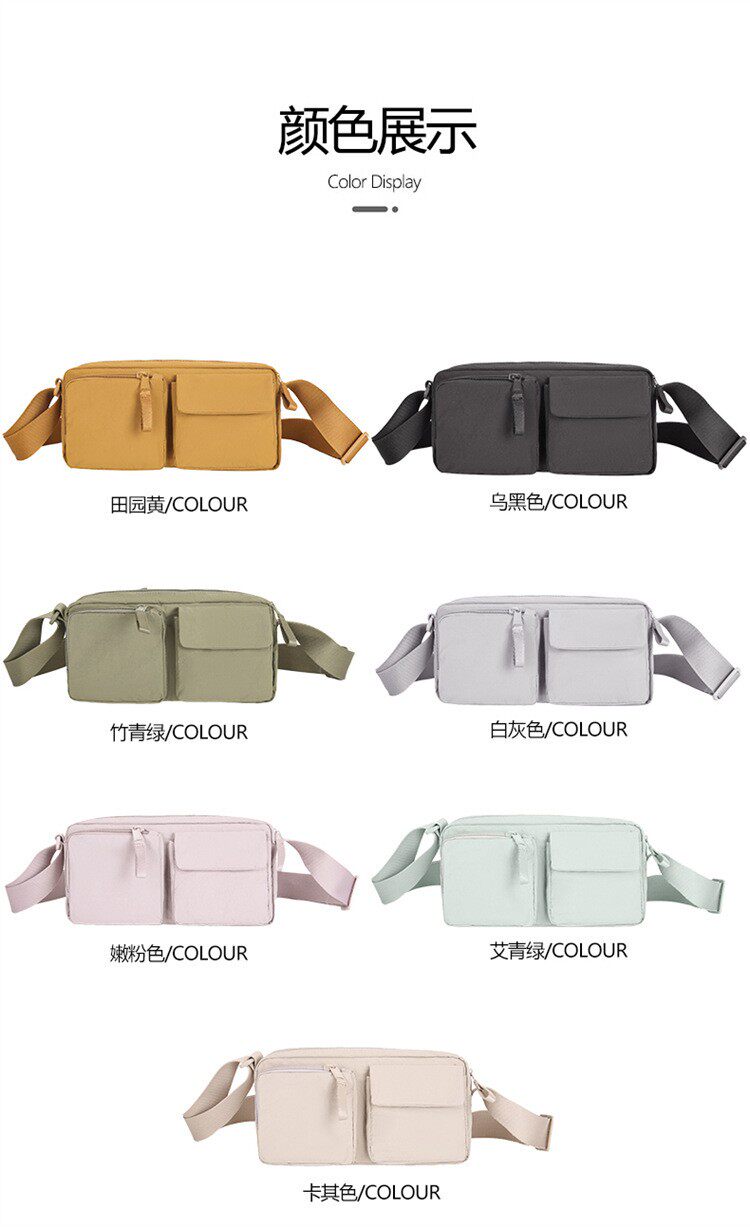 日系時尚休閒輕便多口袋單肩斜背尼龍小包男女同款手機牛津布包