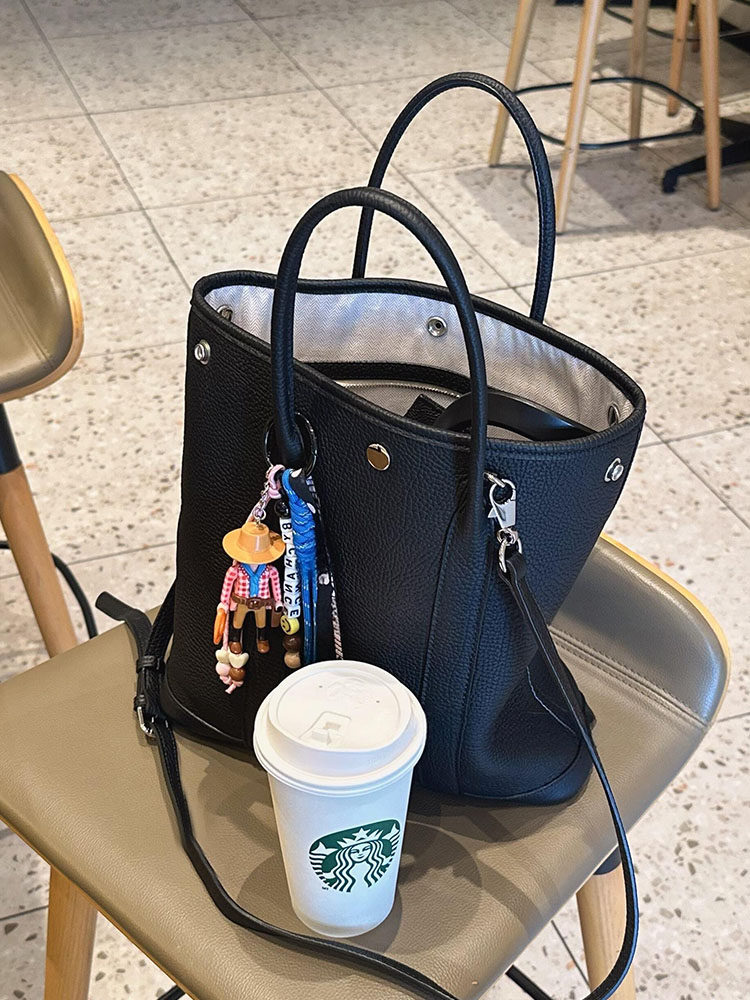 黑色真皮大容量托特包包女2026新款高級感通勤手提單肩斜背花園包