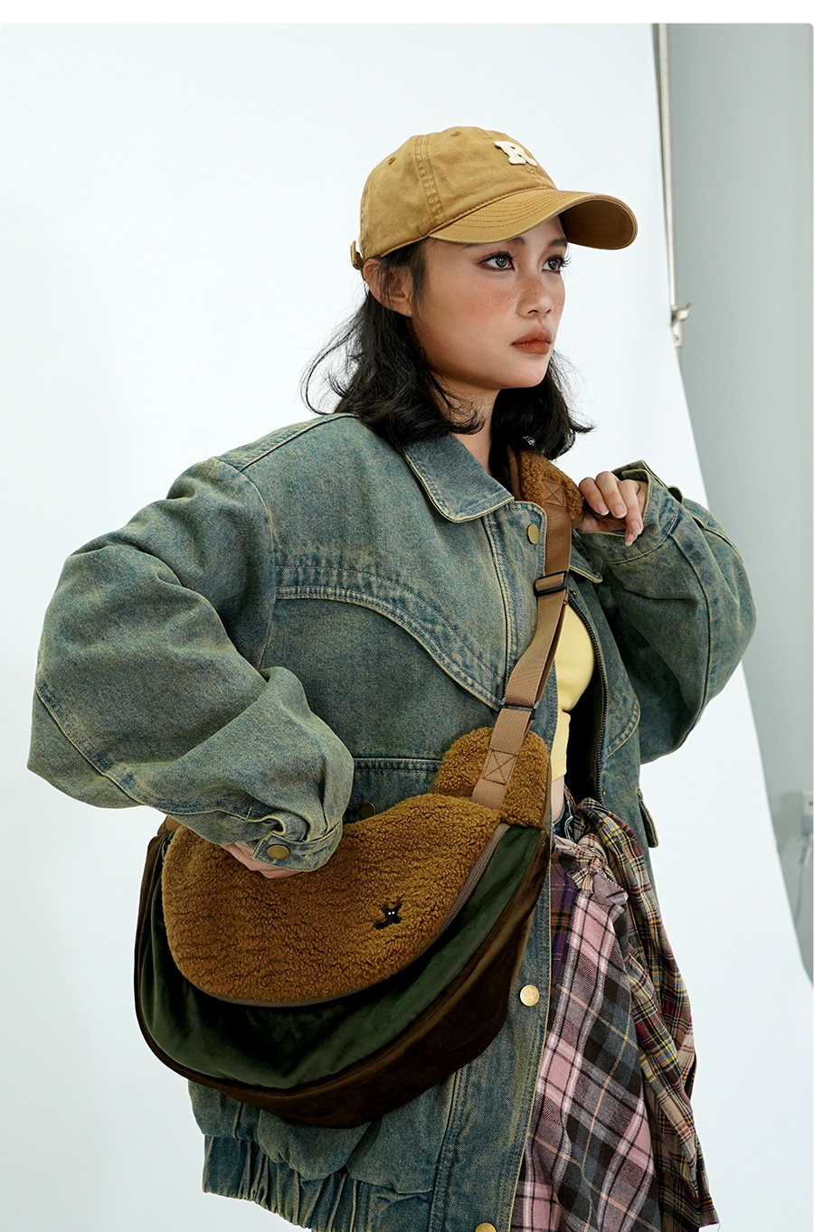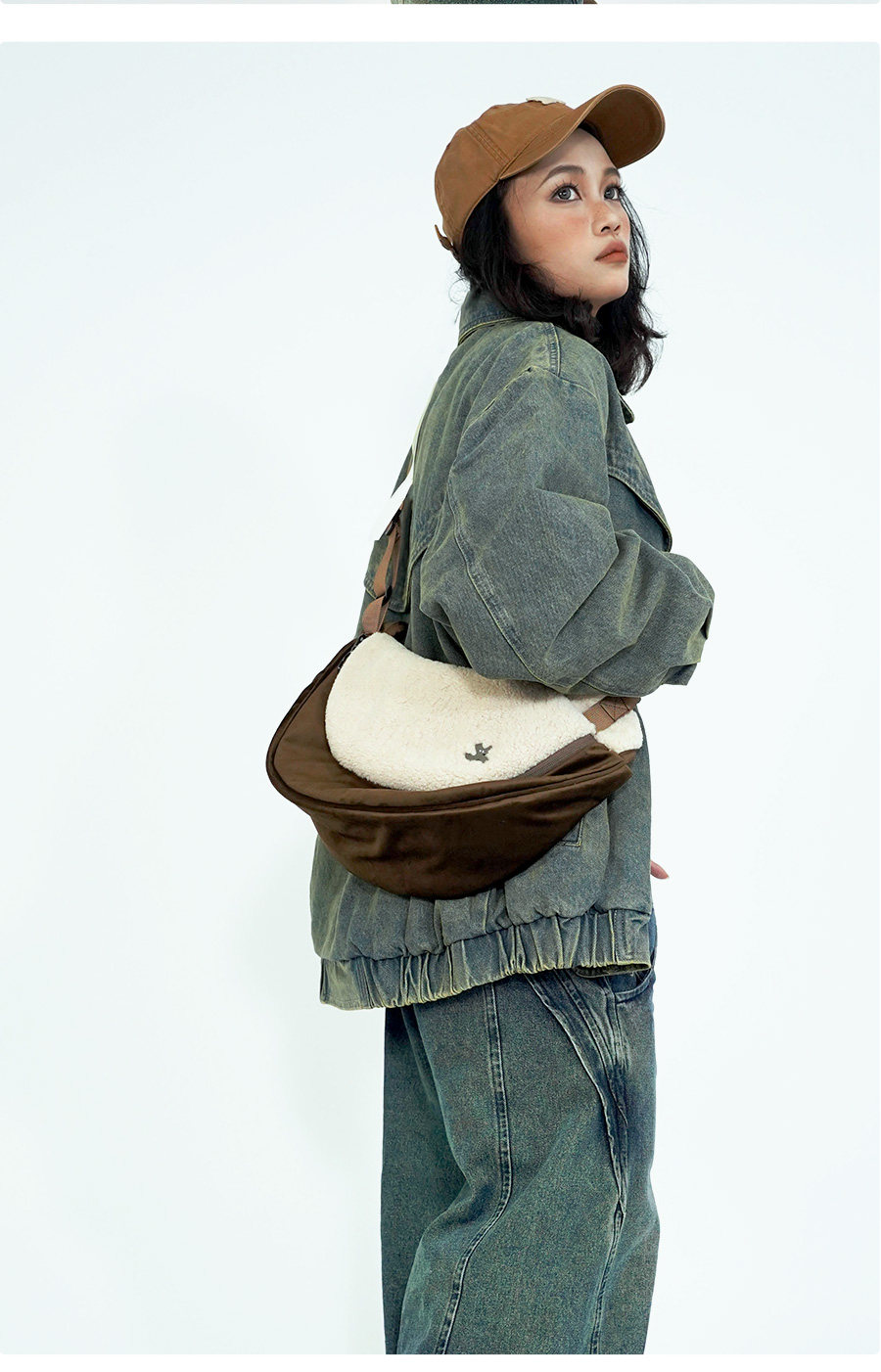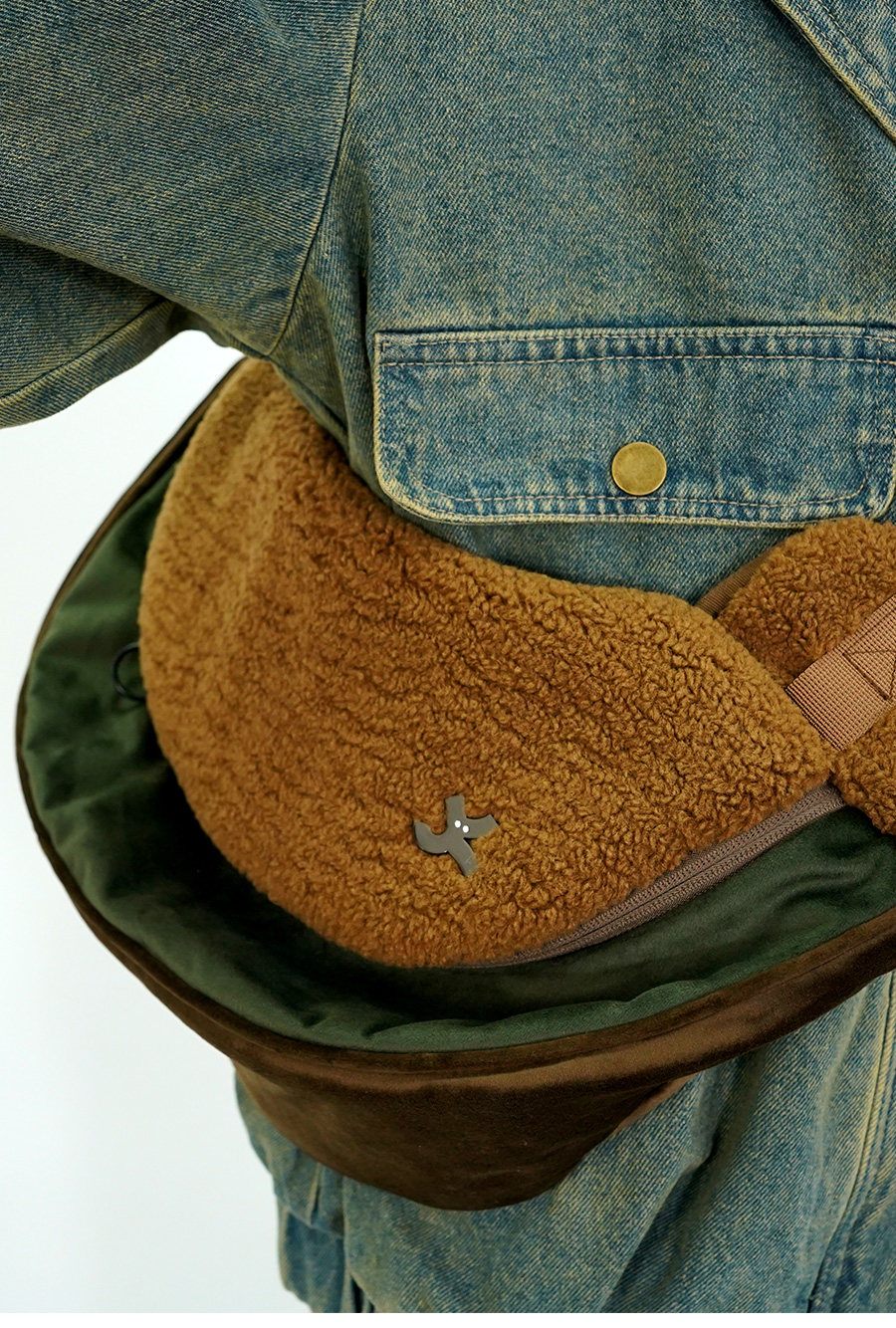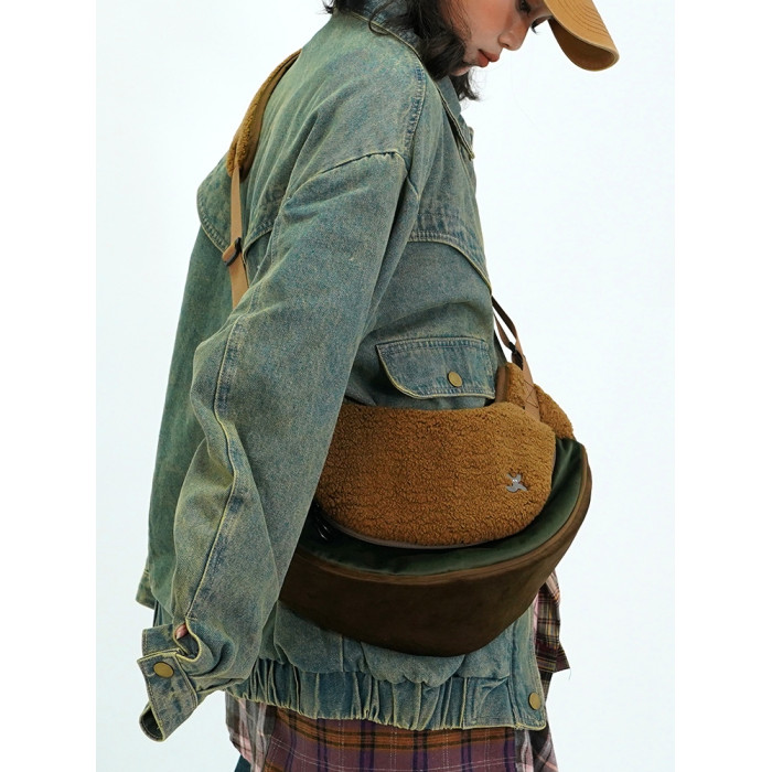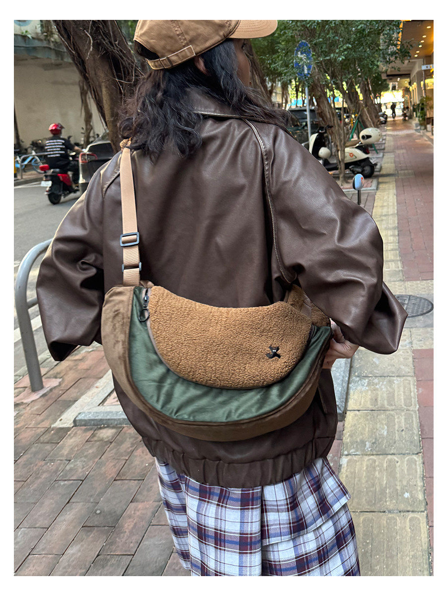 nullbag空形小衆毛絨包原創羊羔絨秋冬女斜後後背包毛毛馬鞍包百搭