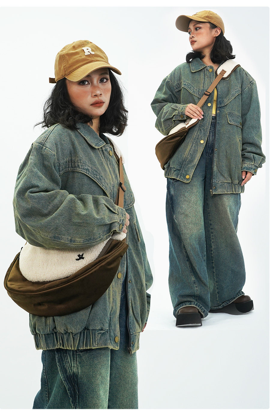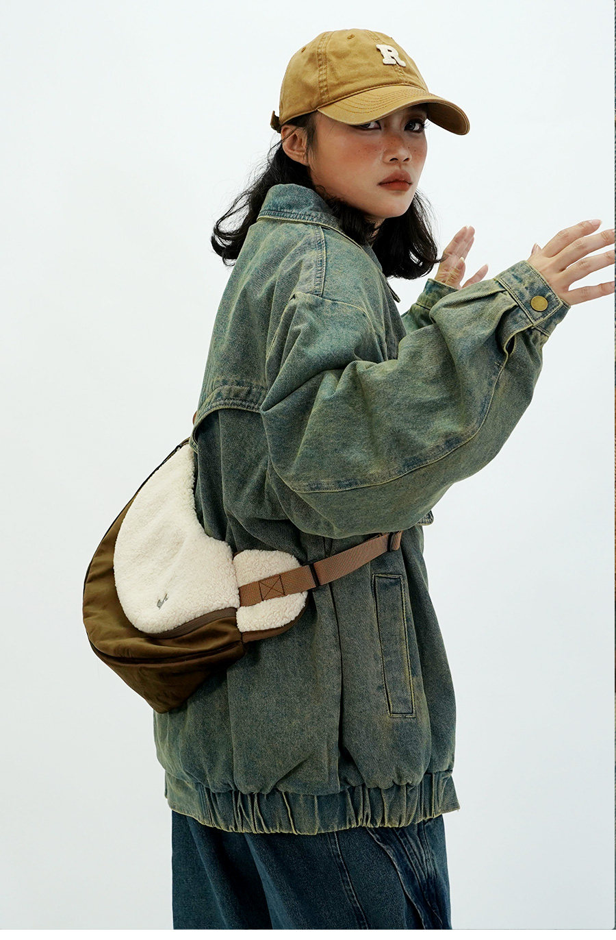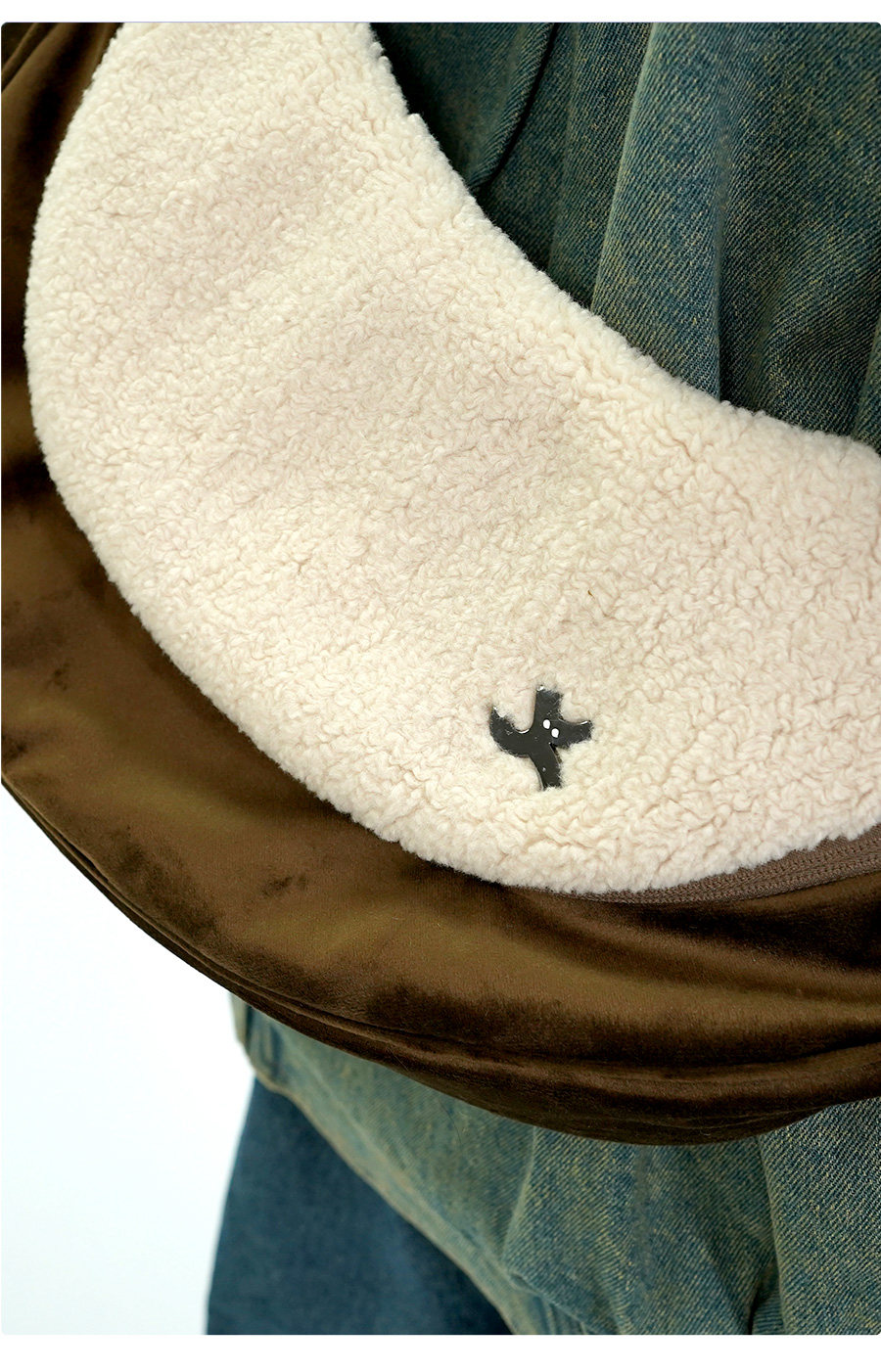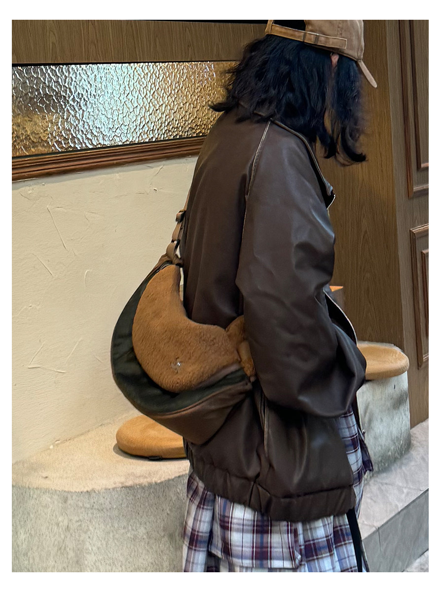 nullbag空形小衆毛絨包原創羊羔絨秋冬女斜後後背包毛毛馬鞍包百搭