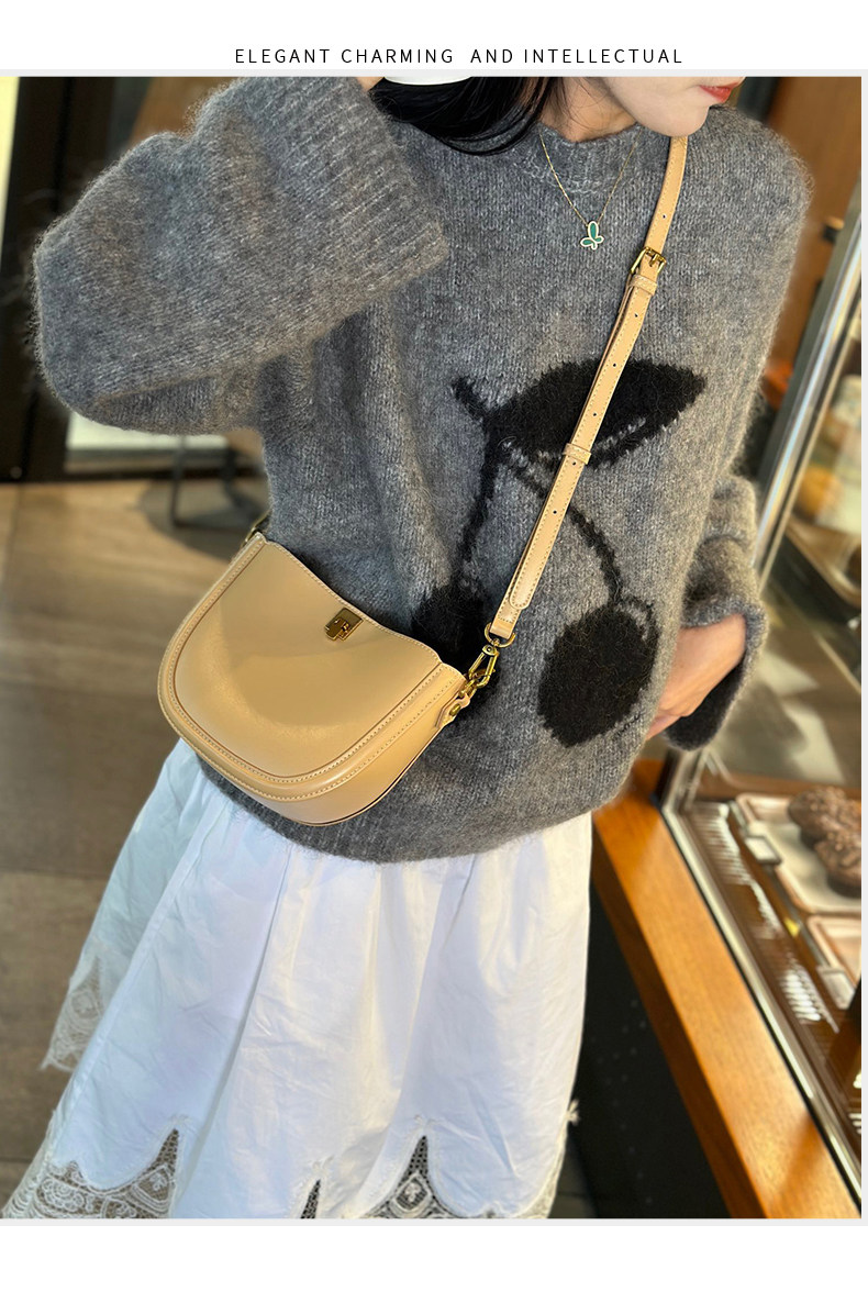 春季真皮小包包女2024新款時尚簡約洋氣單肩斜後後背包休閒百搭馬鞍包