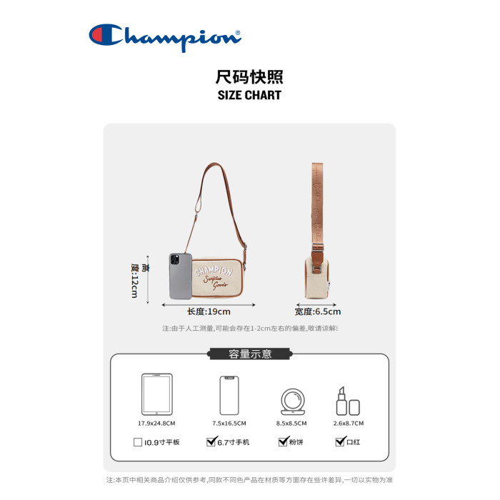 Champion冠軍官方單肩包男女情侶休閒潮流戶外通勤風小方包斜後後背包