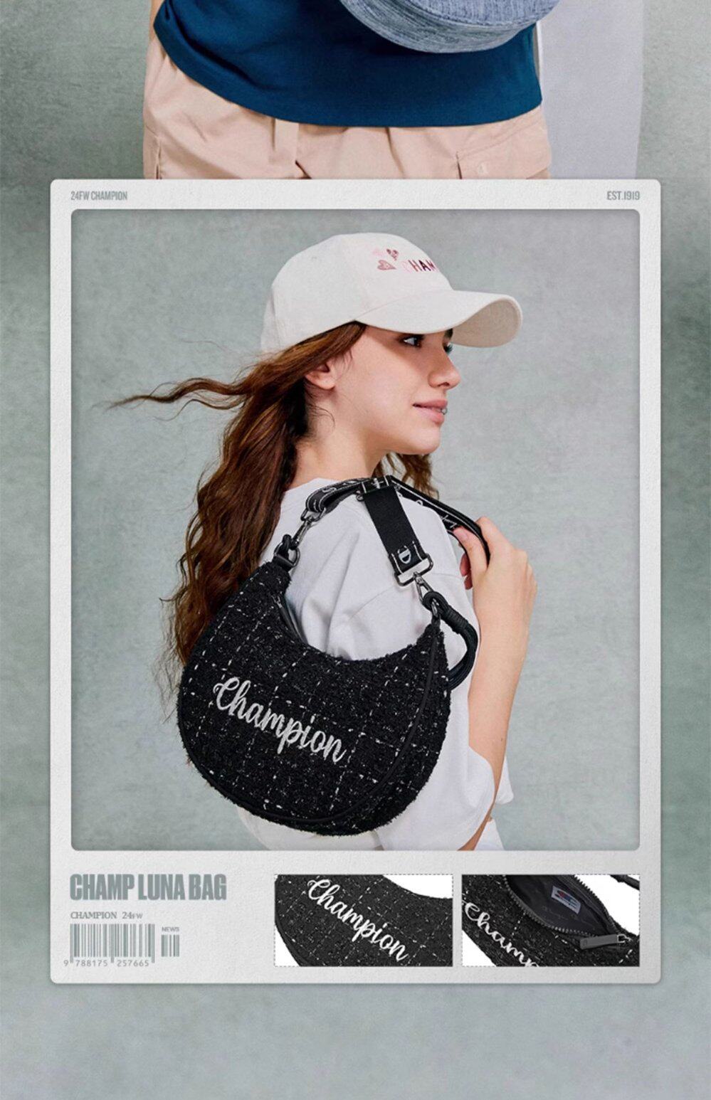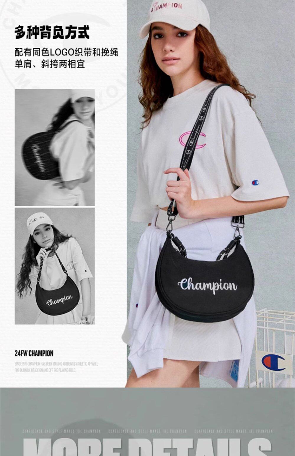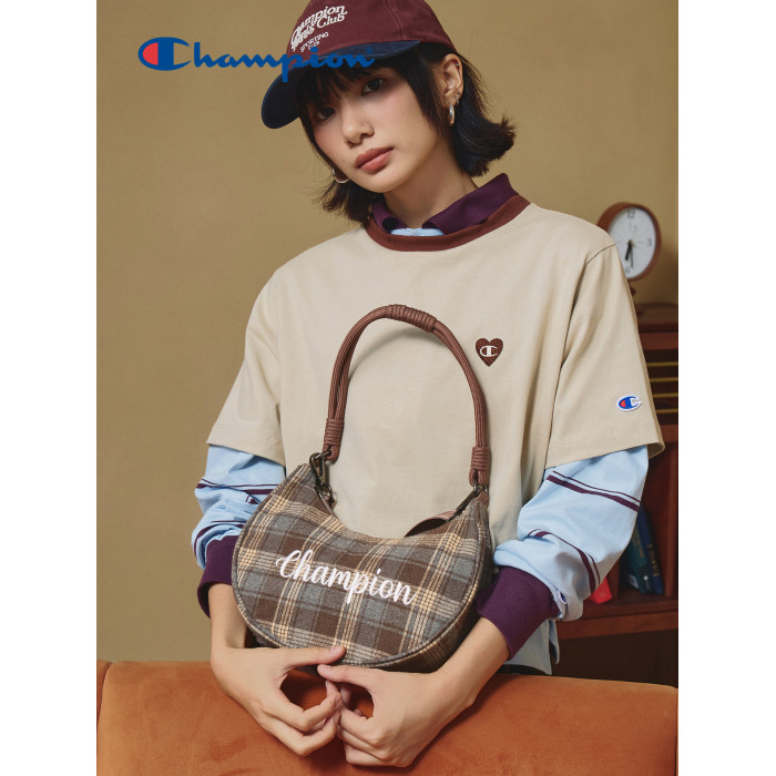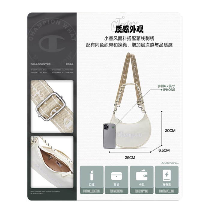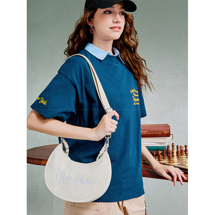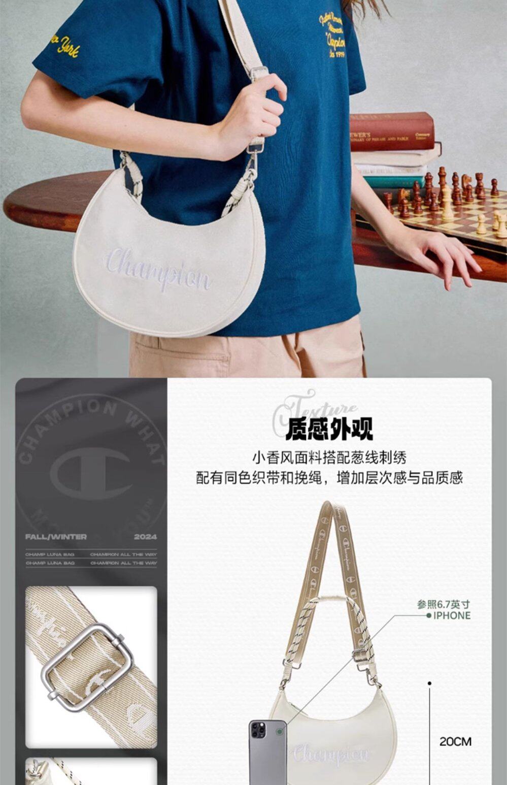 Champion冠軍官方月牙包女腋下包純色刺綉字母單肩斜背背式兩用包
