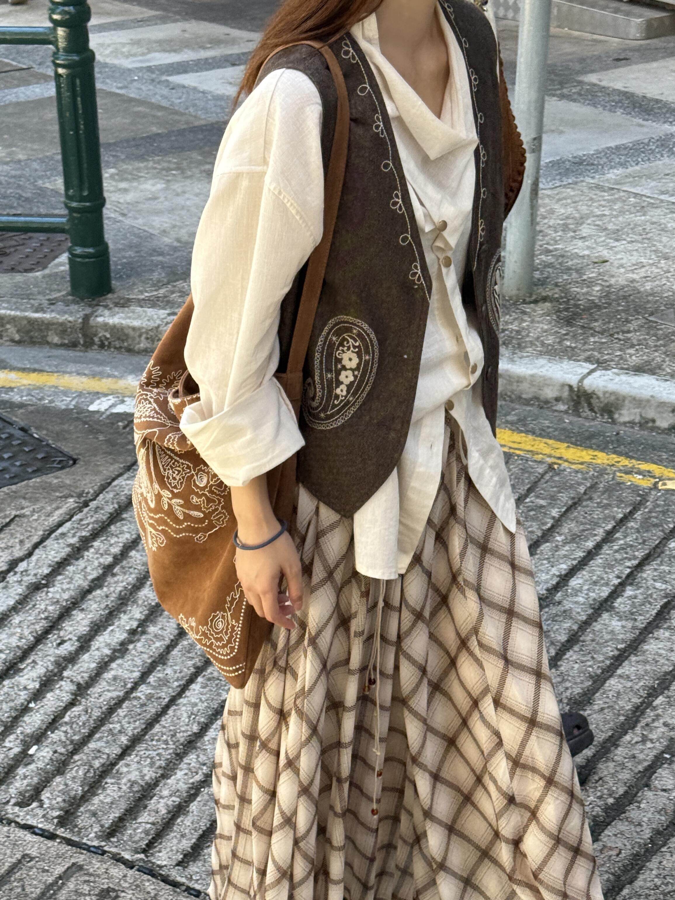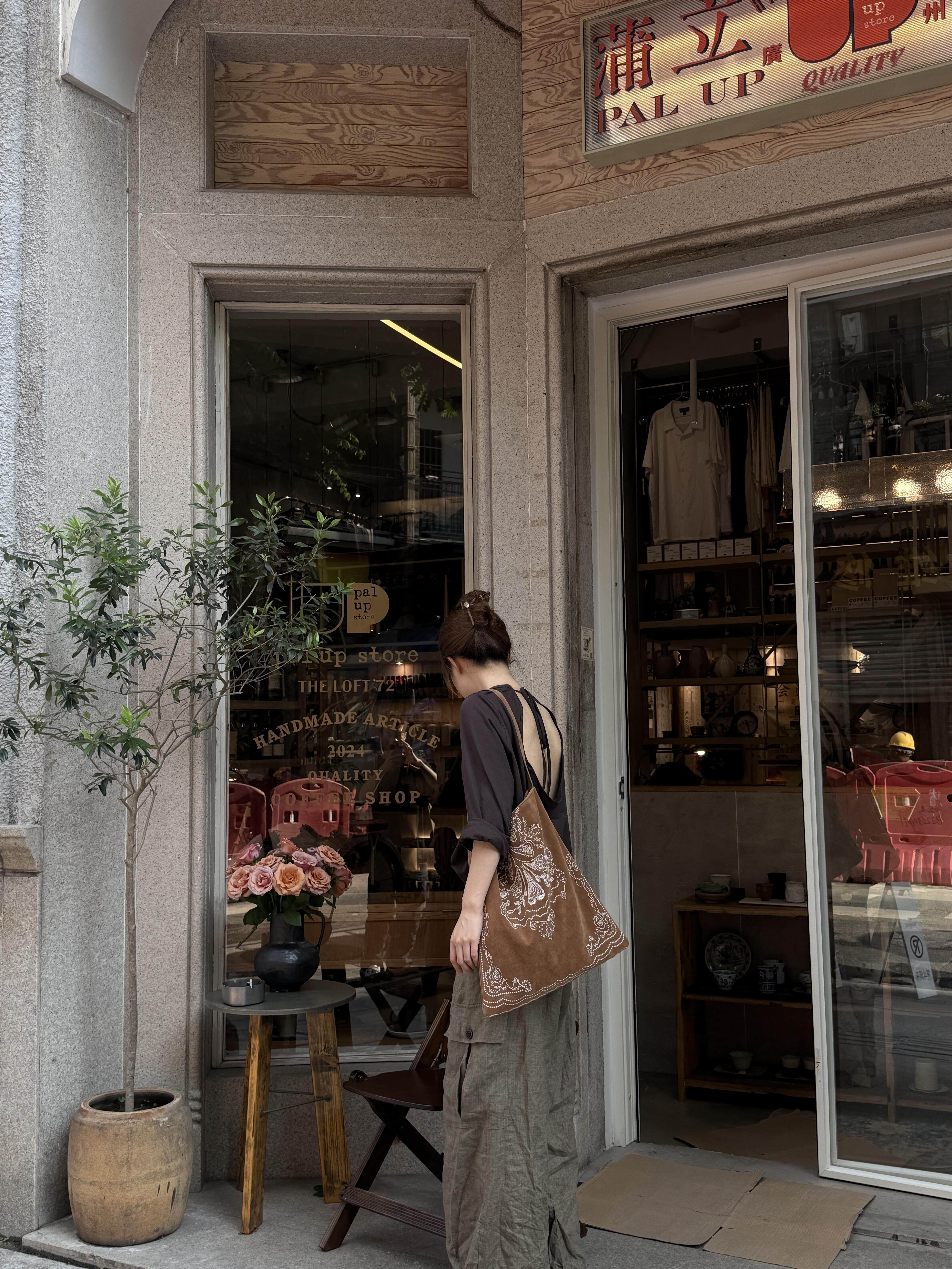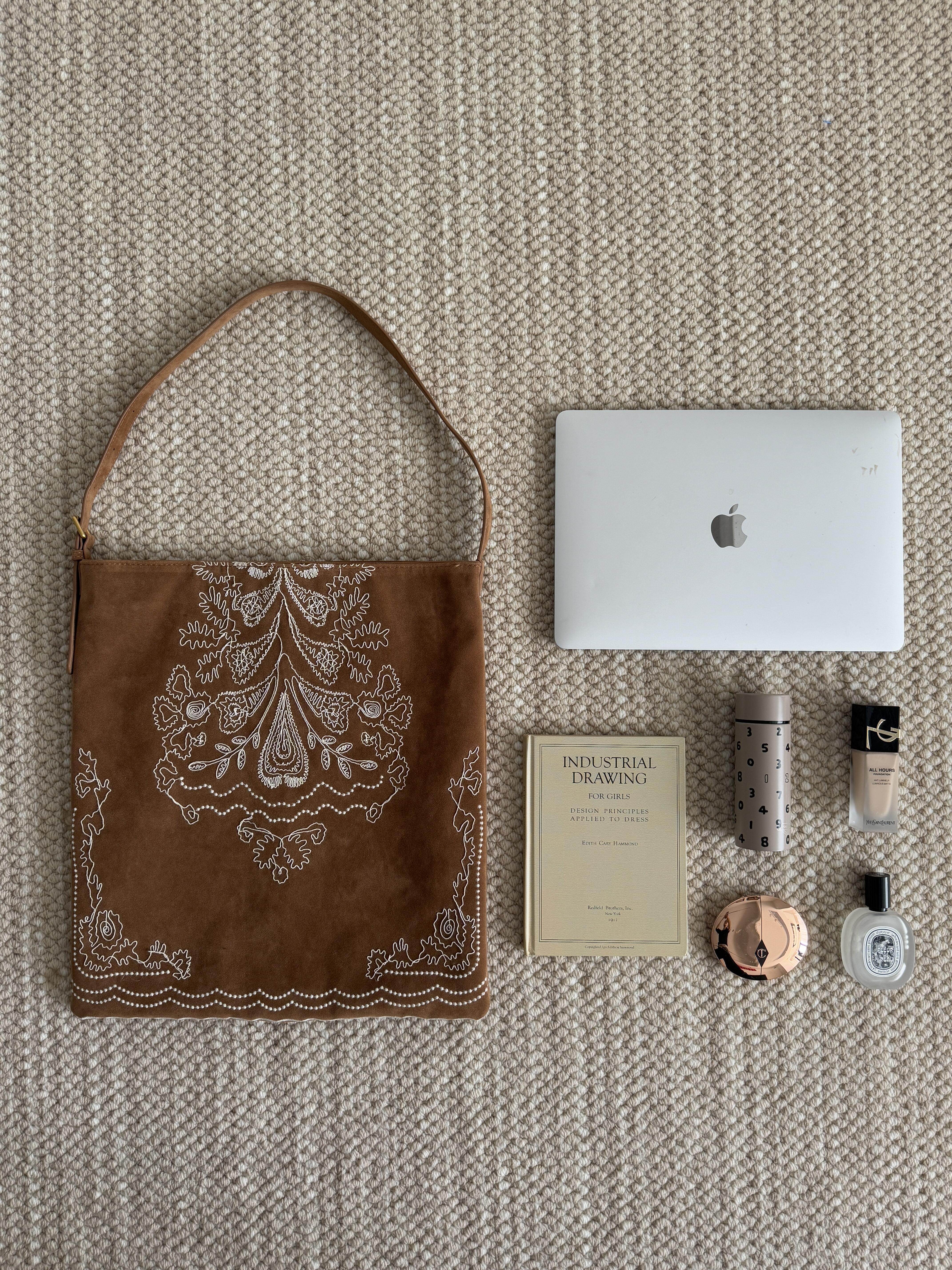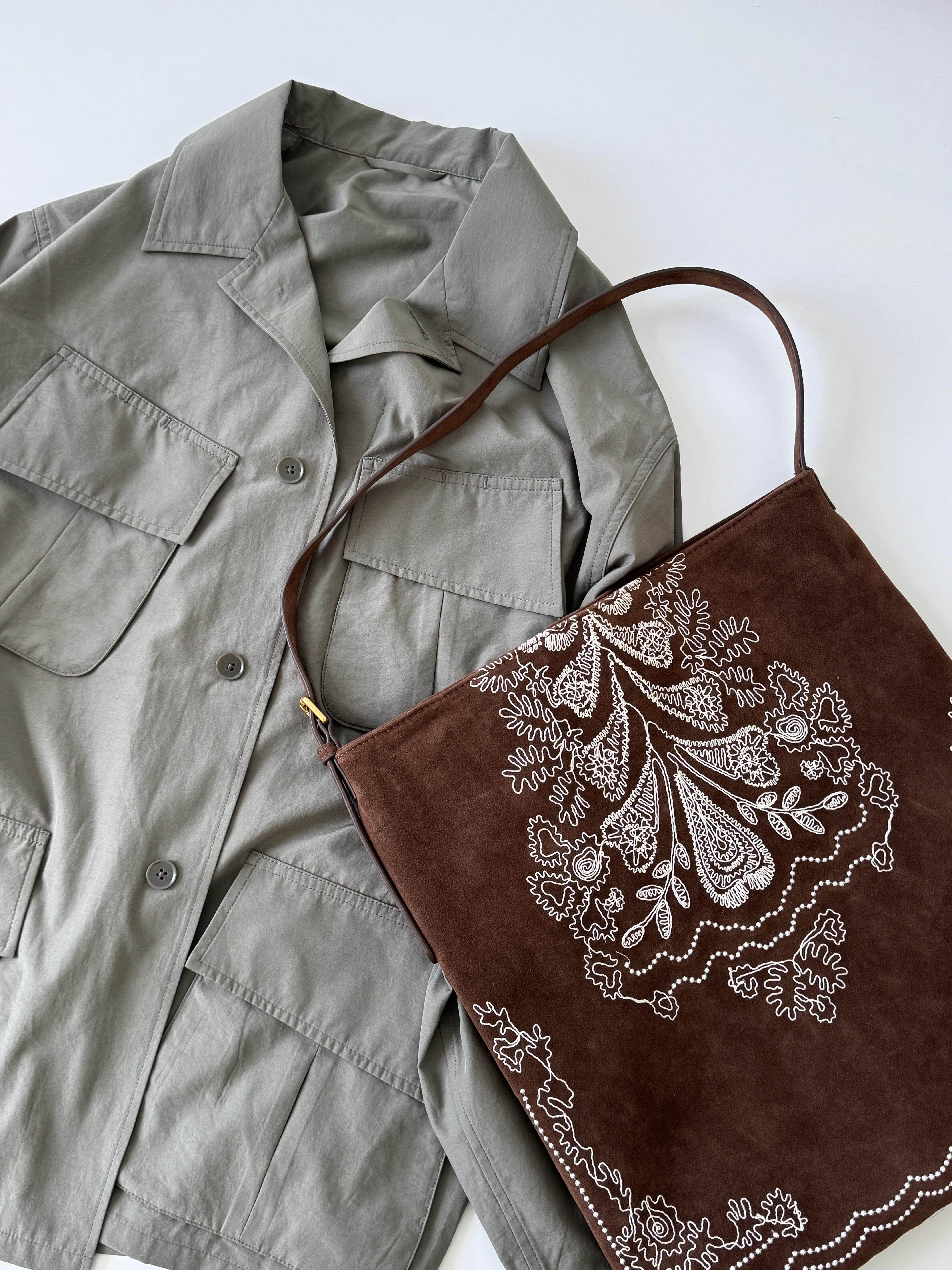 波西米亞風刺綉磨砂皮托特包珠珠大容量復古百搭單肩手提大包包女