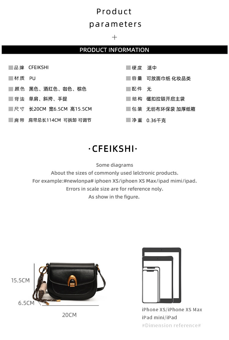 CFEIKSHI品牌店復古高級感馬鞍包2026春夏新款立體感單肩斜後後背包女