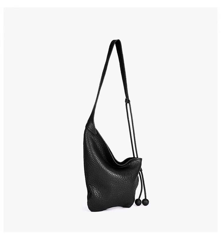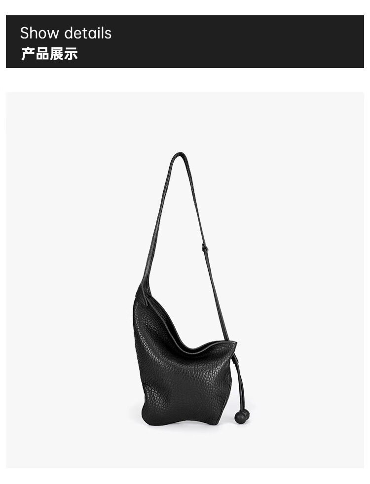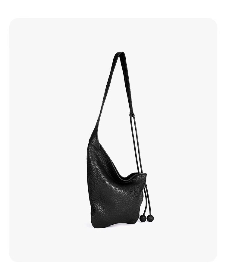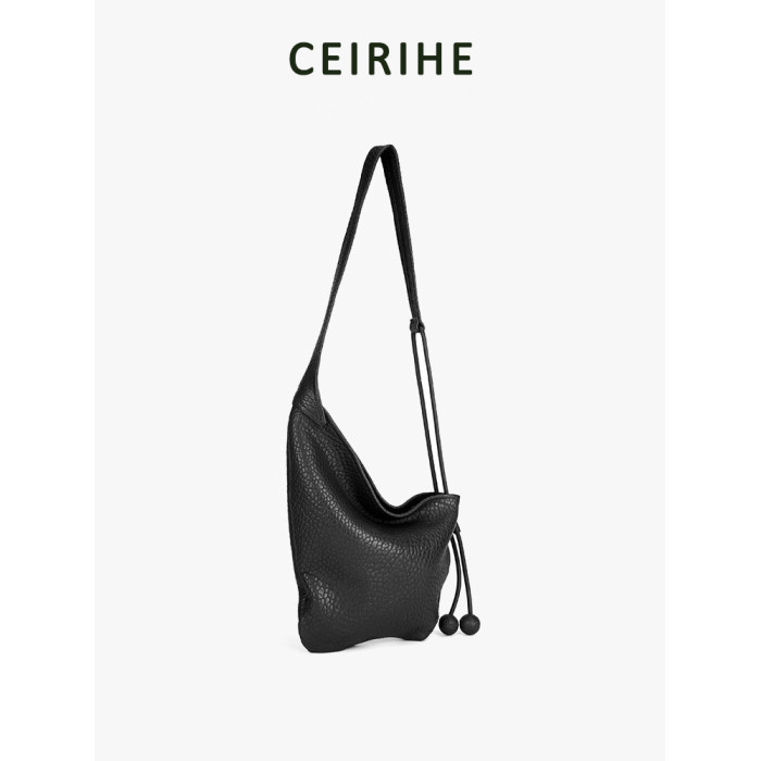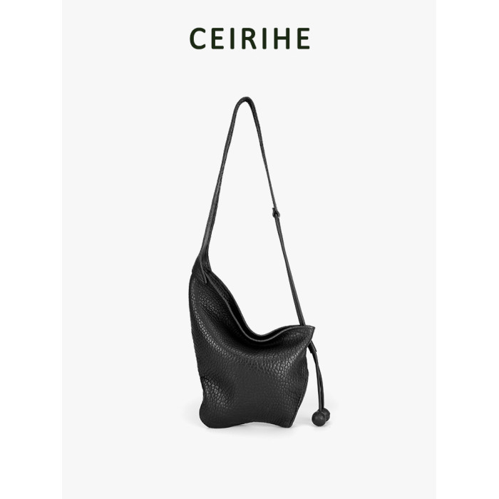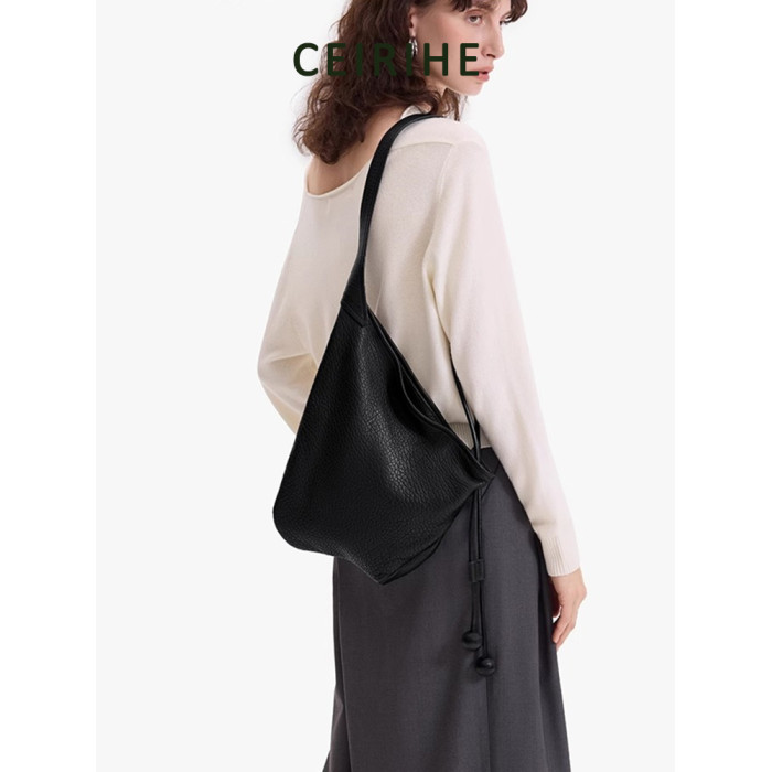 CEIRIHE 頭層泡泡紋羊皮牛角包女慵懶HOBO真皮托特包包單肩斜後後背包