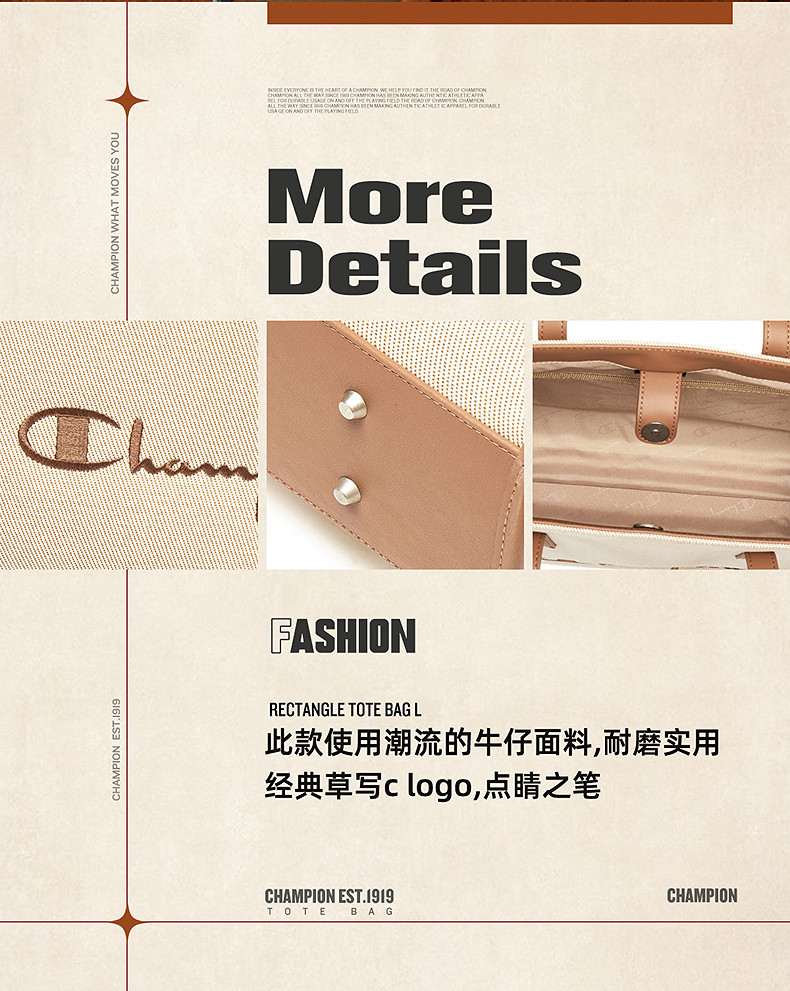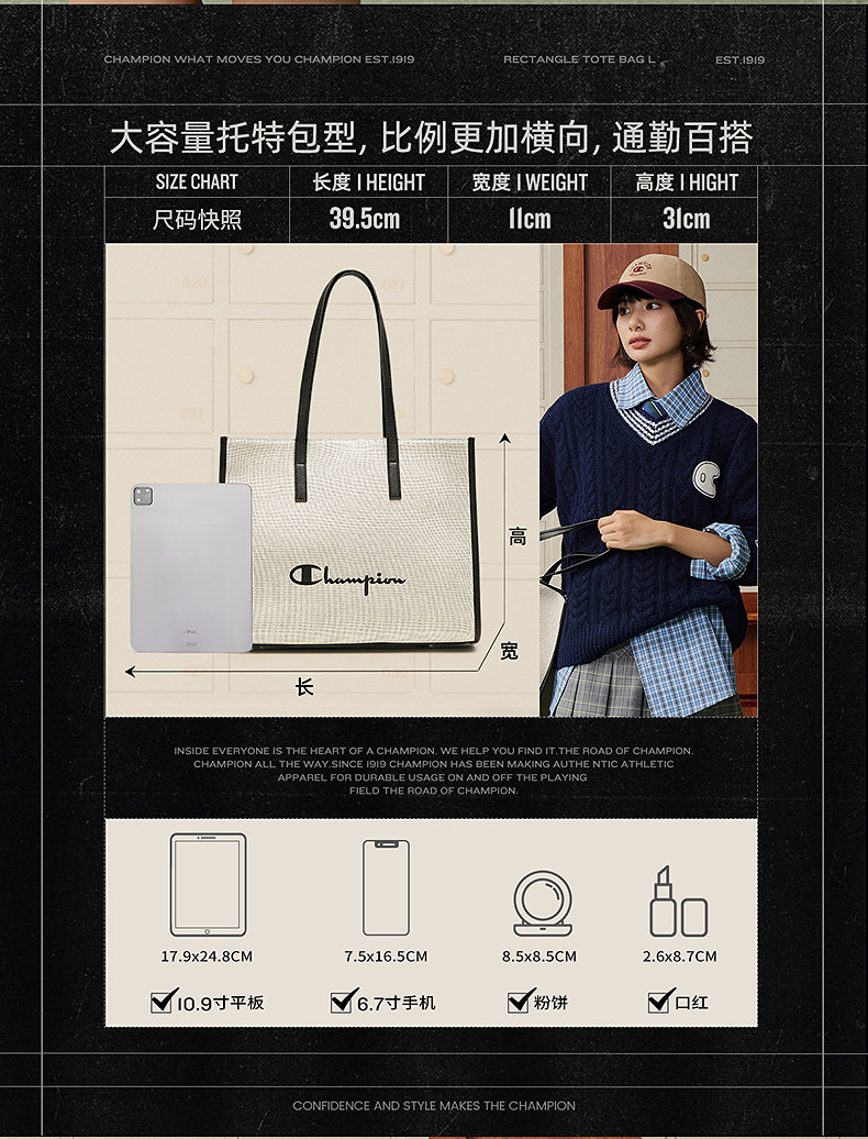 champion冠軍26春季新款方形托特包女士通勤上班電腦包單肩大容量