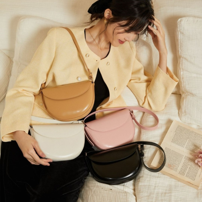 2026新款真皮女包馬鞍牛皮馬鞍包單肩斜後後背包女包時尚腋下女小方包