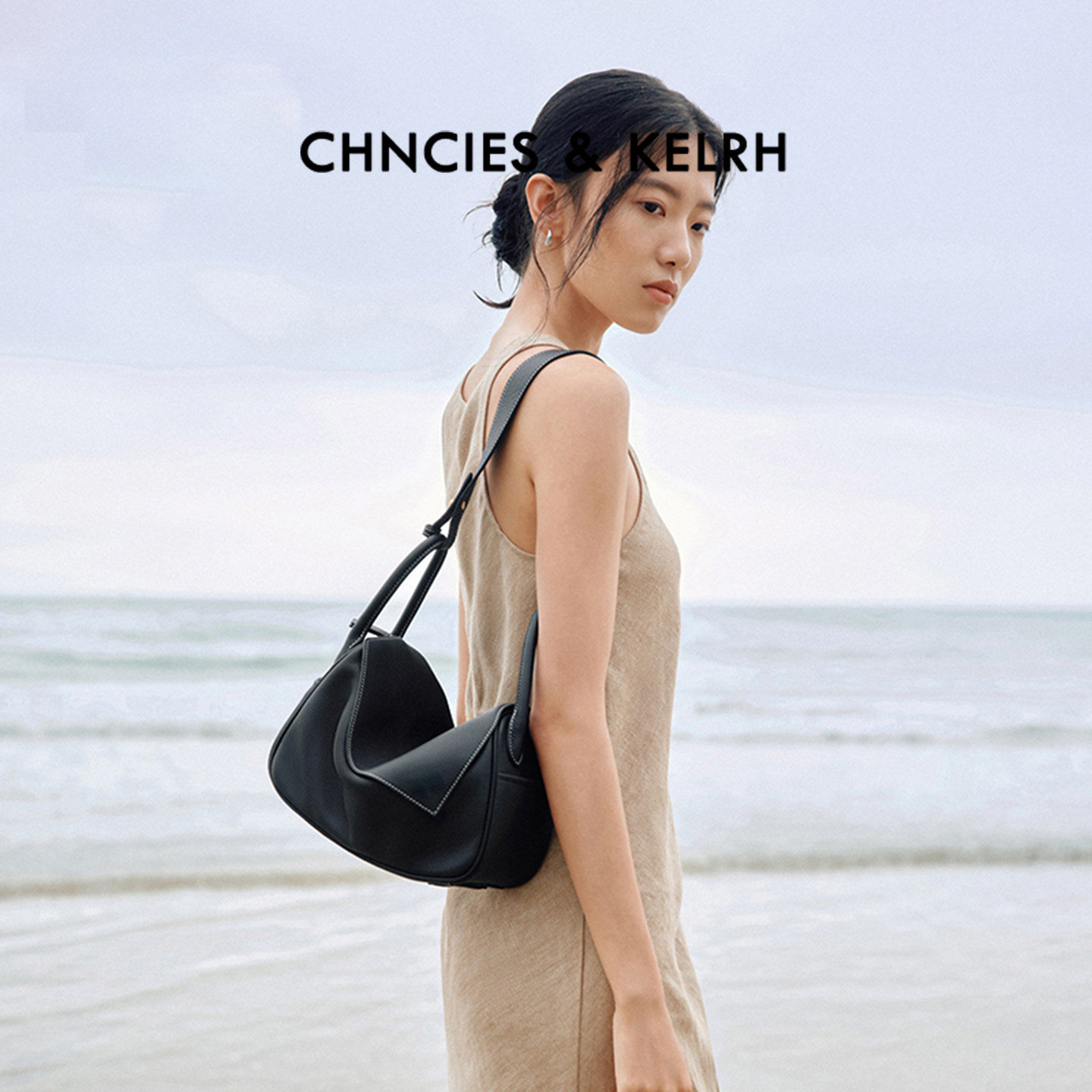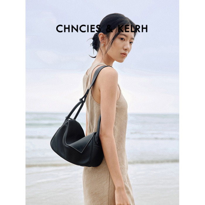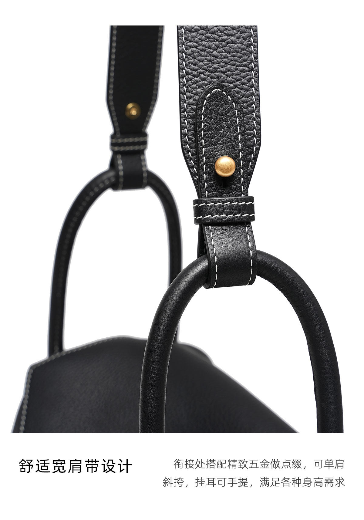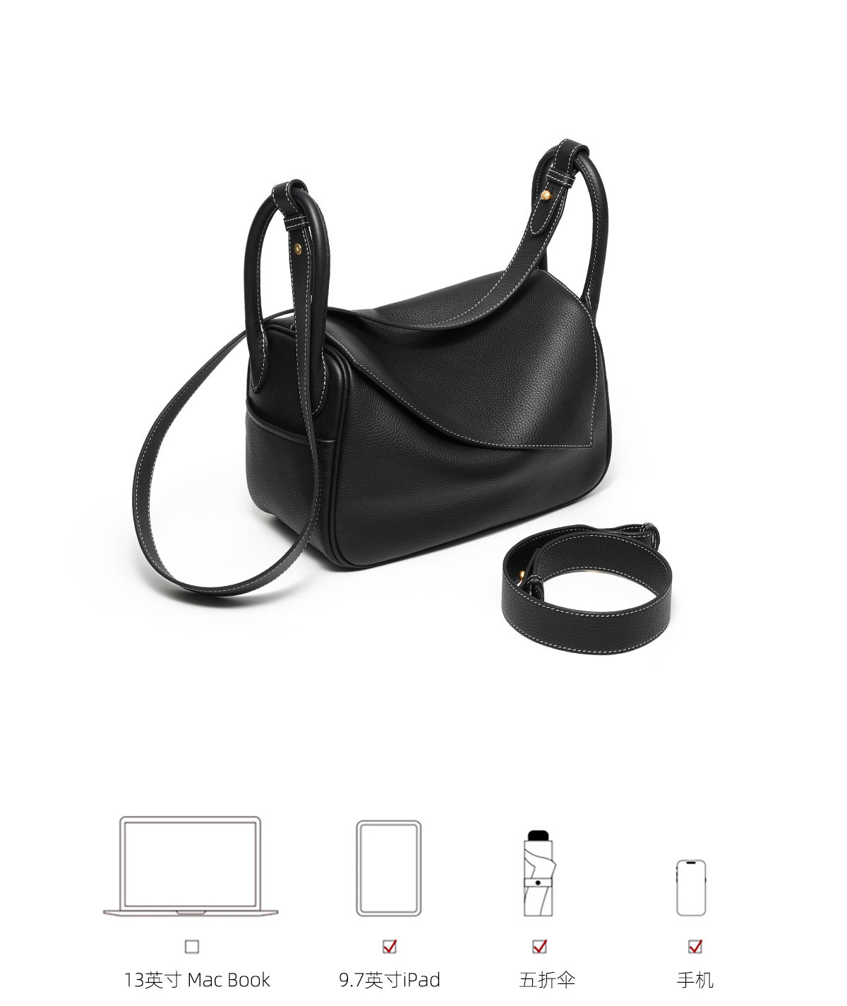 王楚然同款元寶包黑色真皮枕頭包小衆高級感單肩斜後後背包通勤腋下包