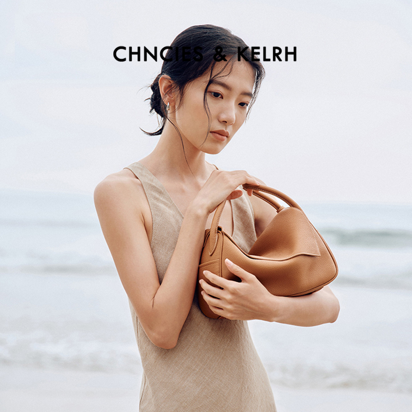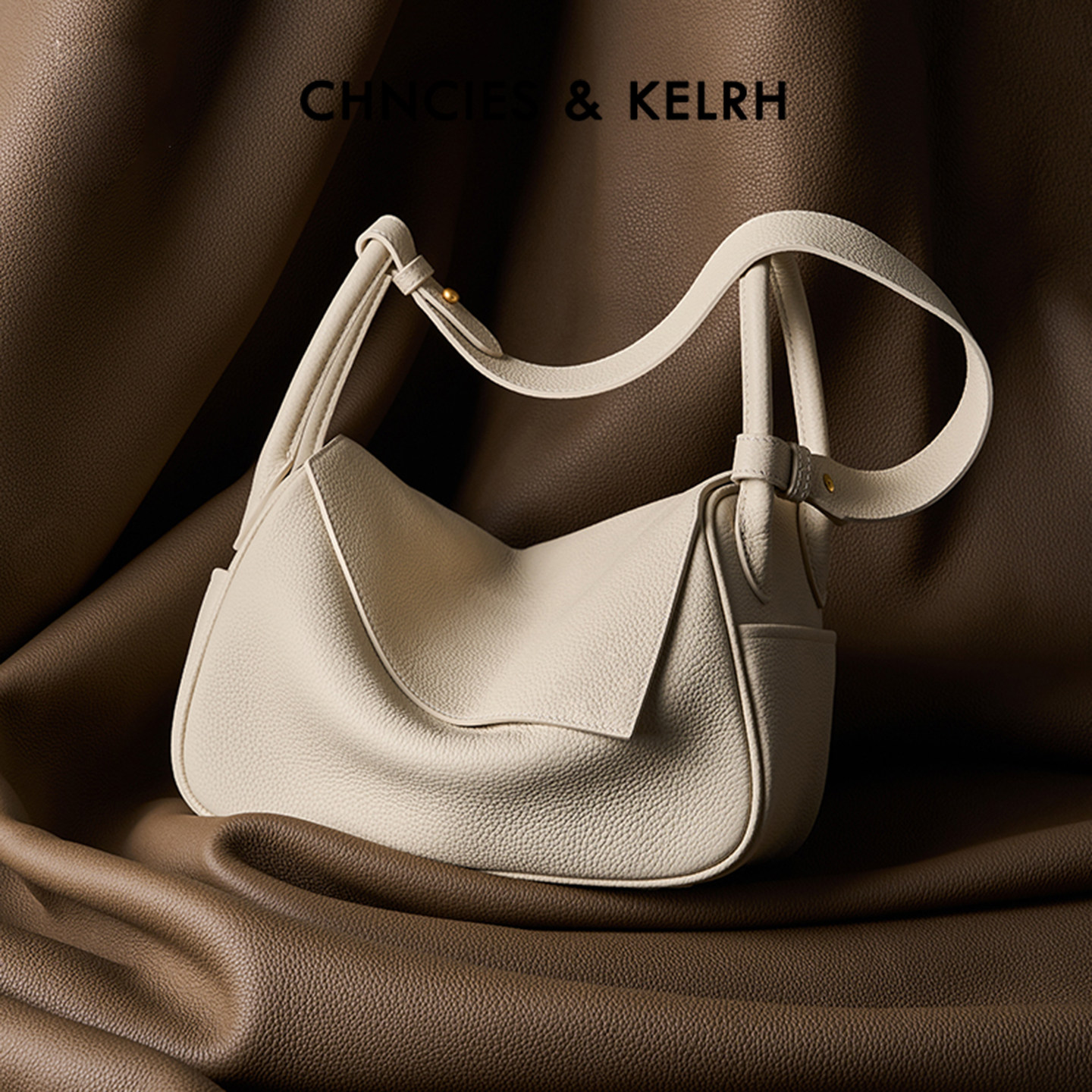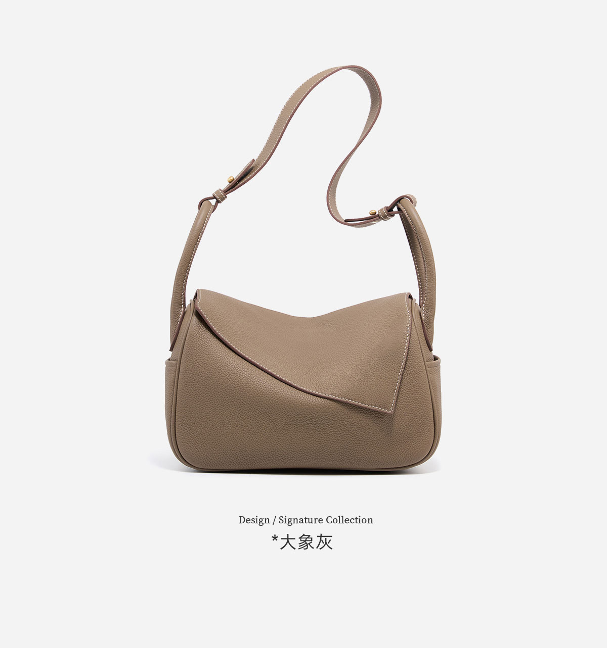 王楚然同款元寶包黑色真皮枕頭包小衆高級感單肩斜後後背包通勤腋下包