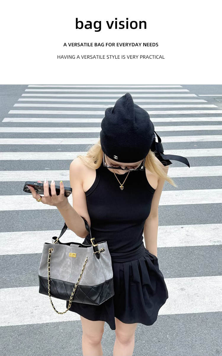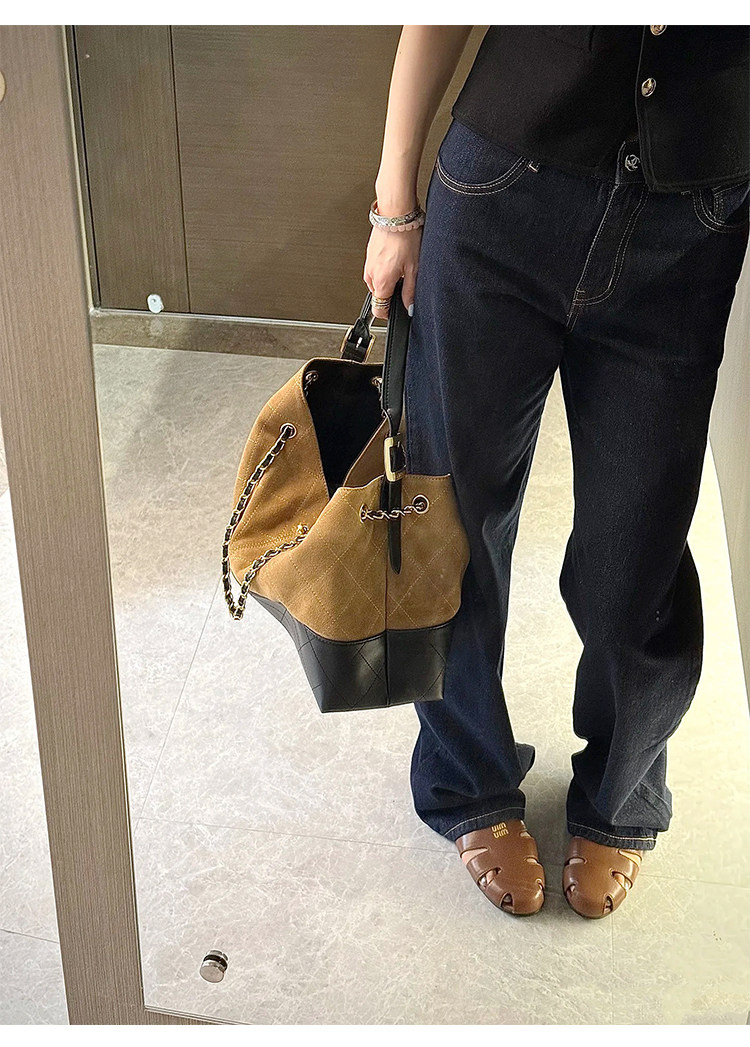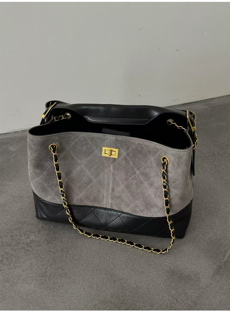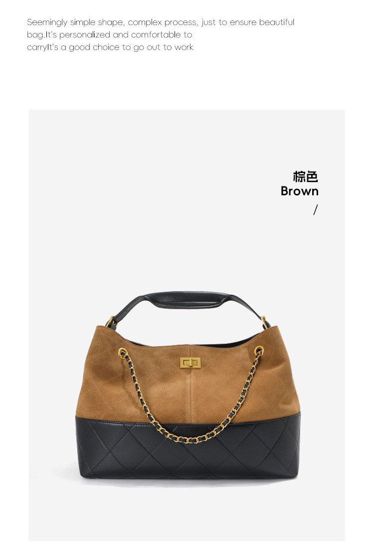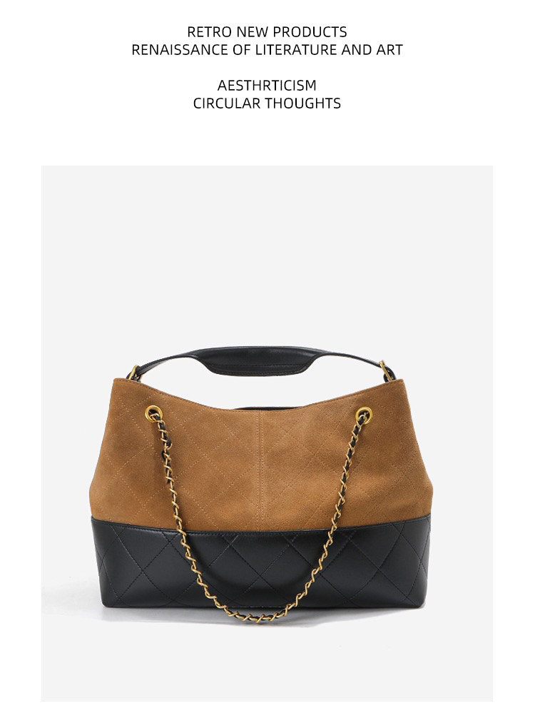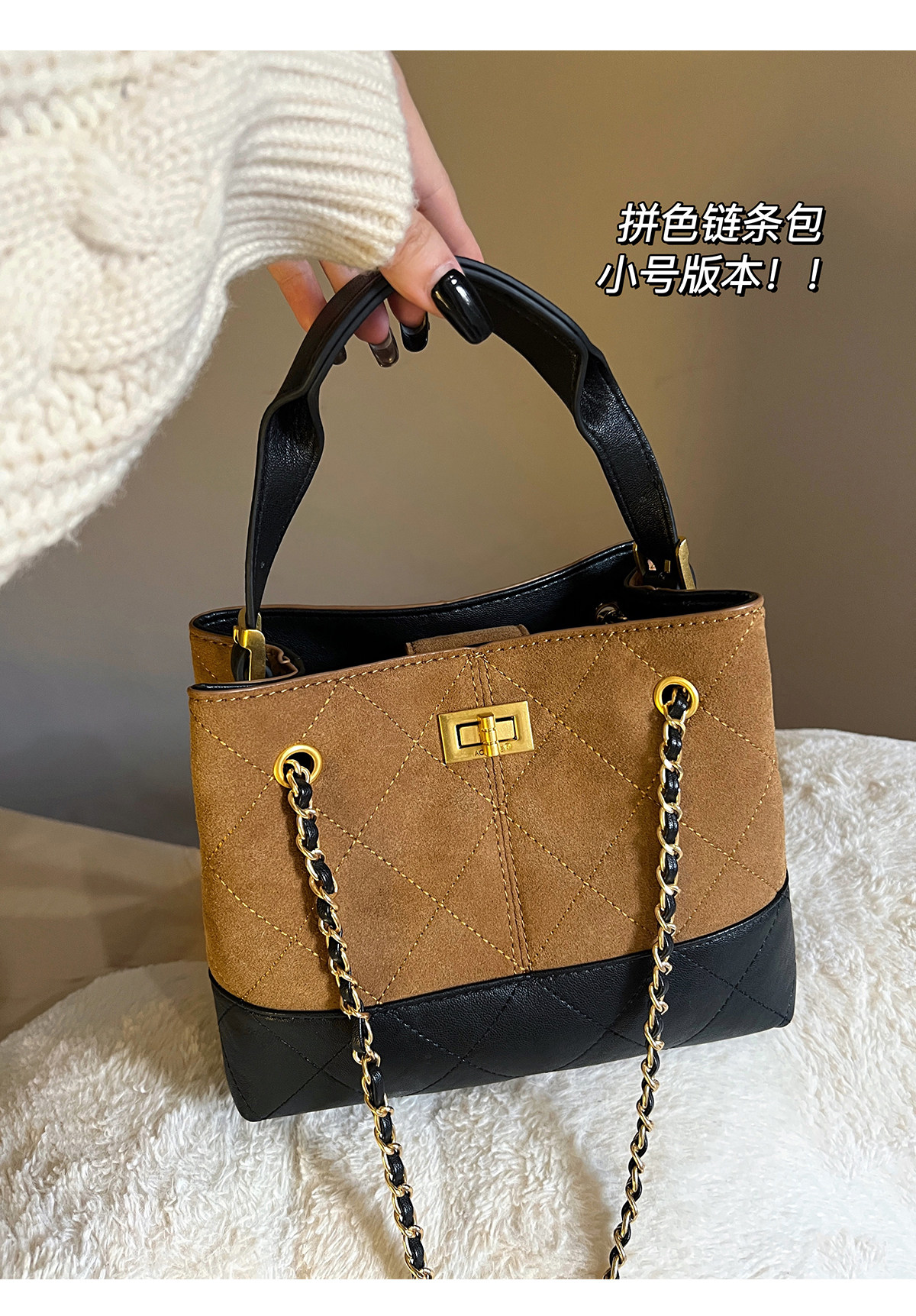阿馨yolo 牛皮高品質!小香風鏈條拼色包單肩包女小衆設計感麂皮包