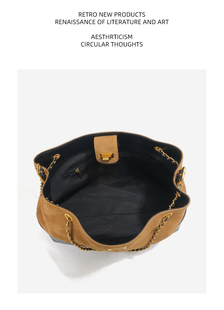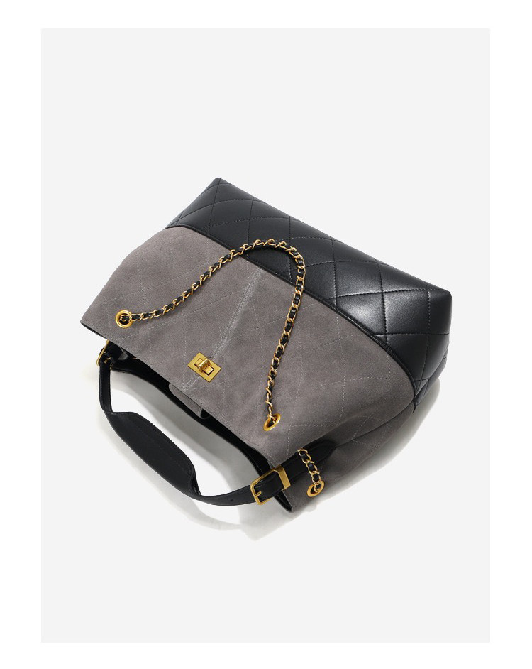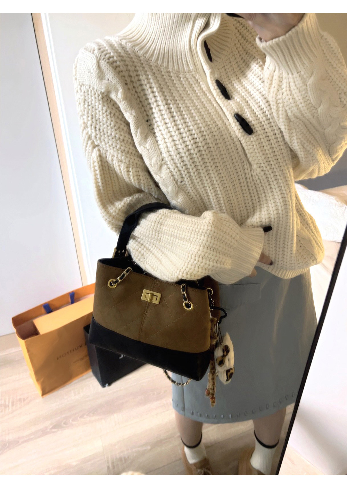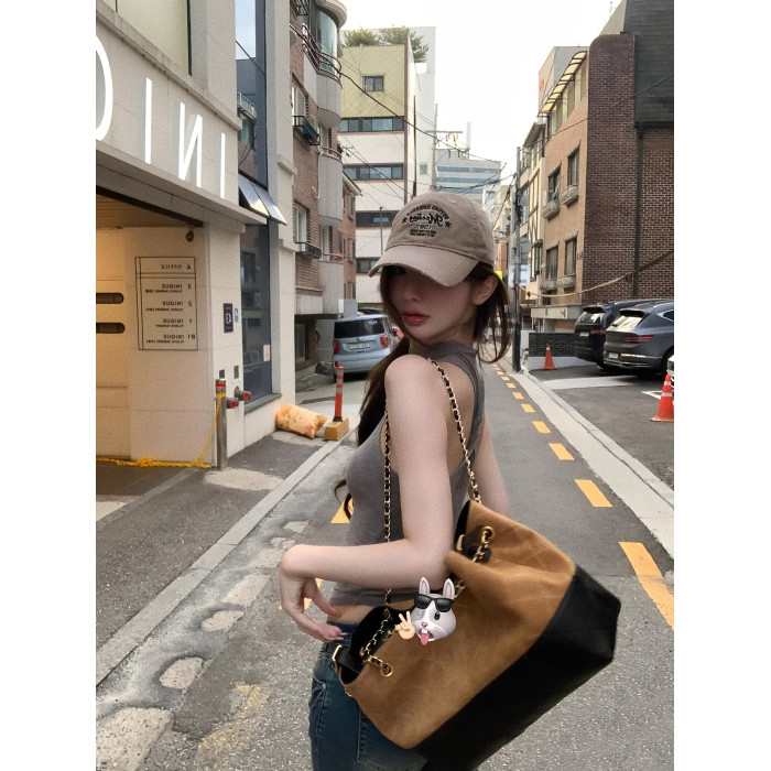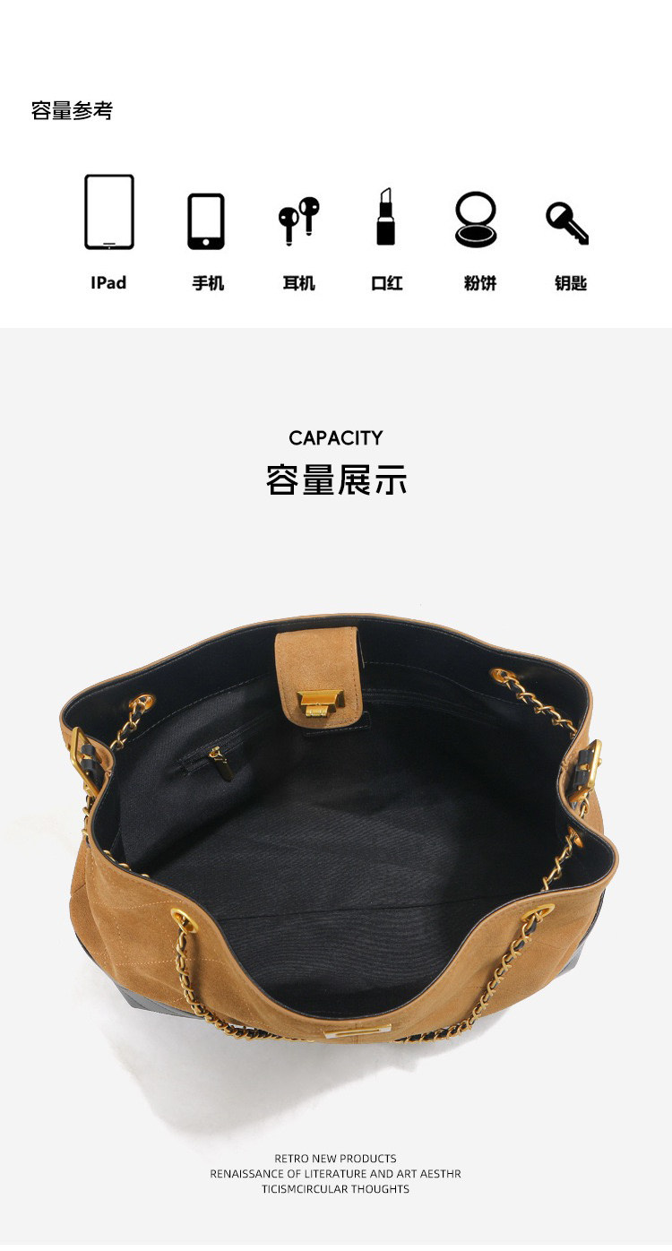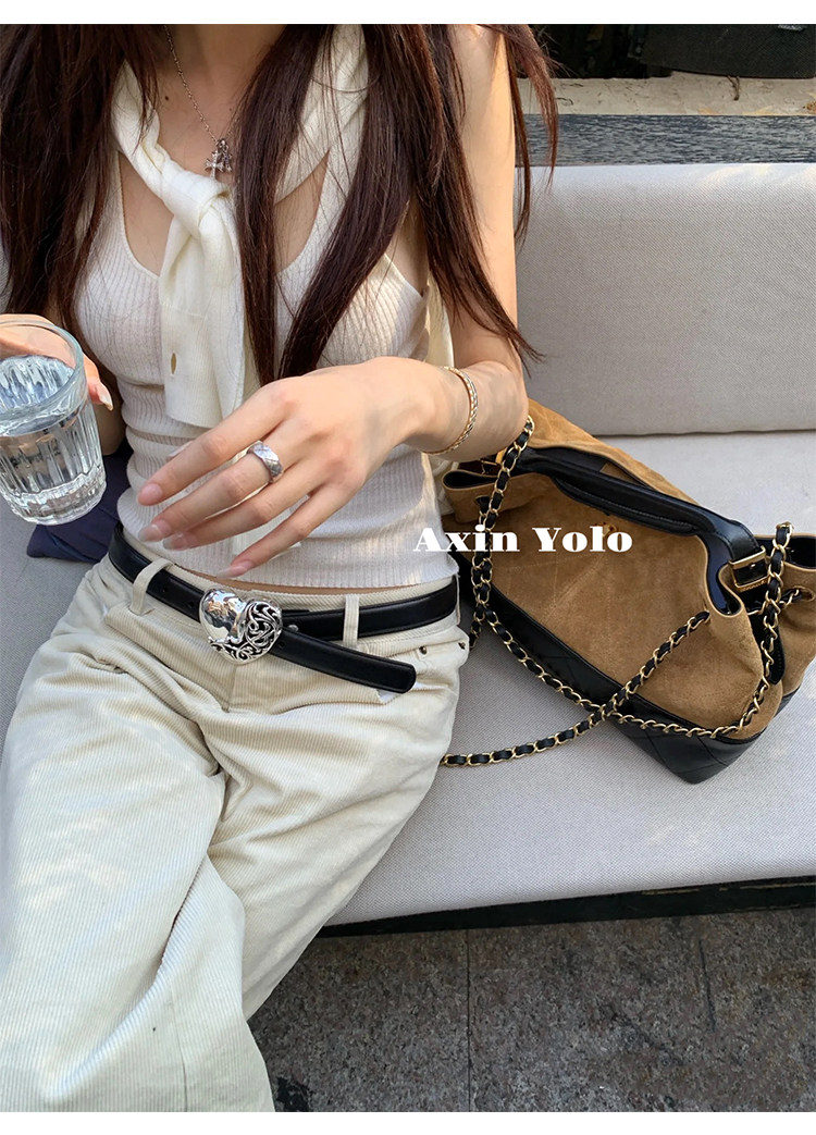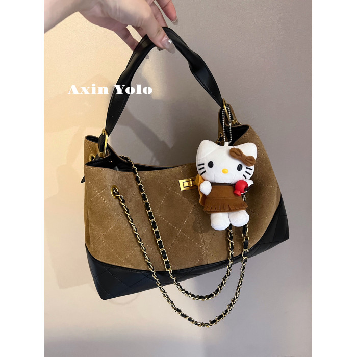阿馨yolo 牛皮高品質!小香風鏈條拼色包單肩包女小衆設計感麂皮包