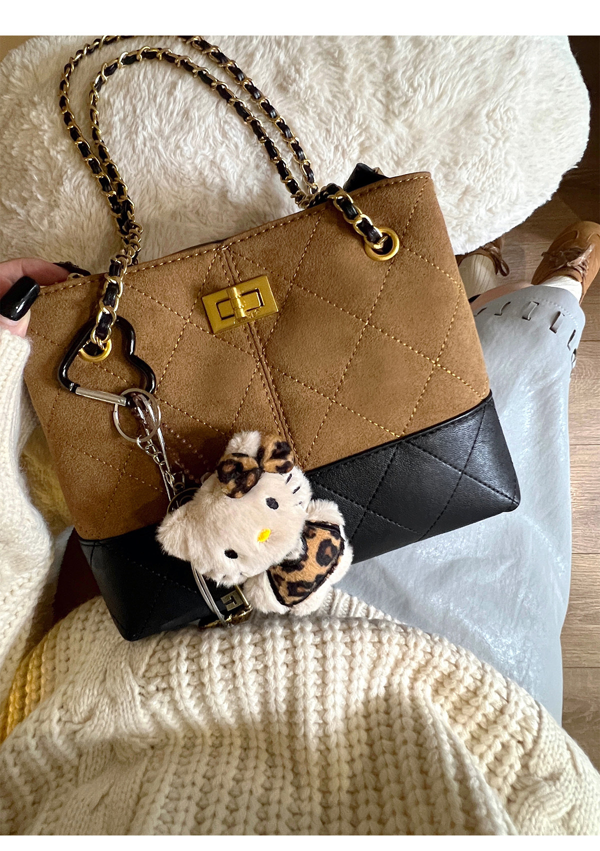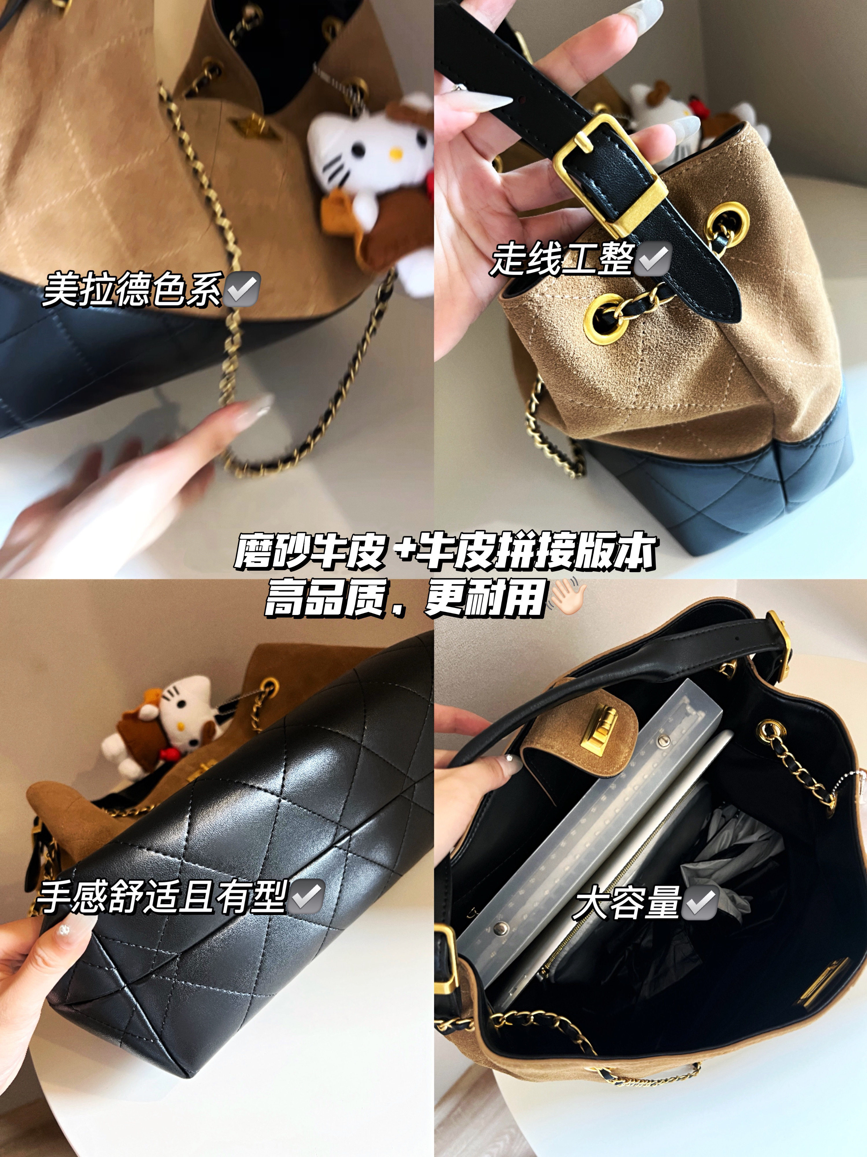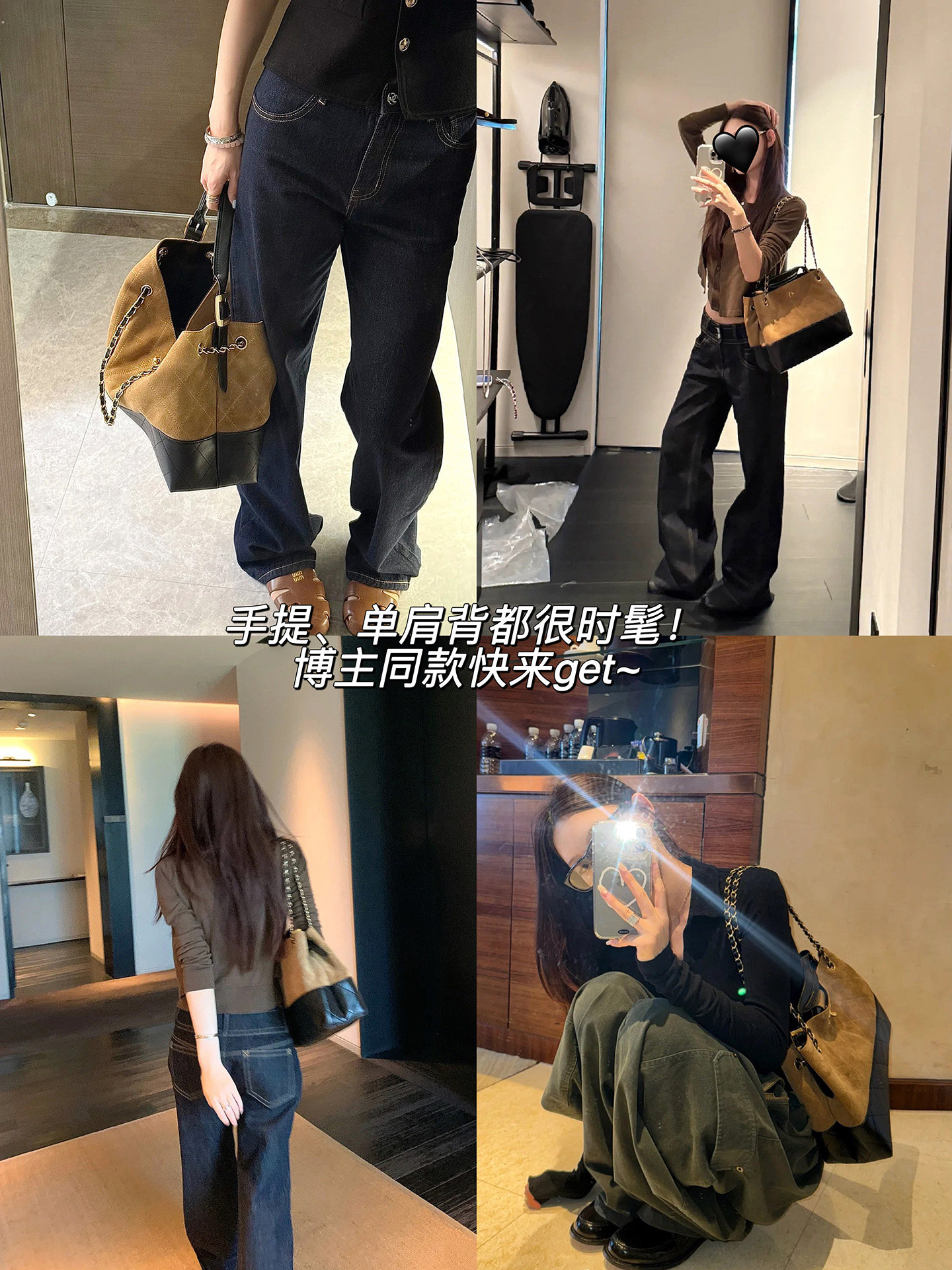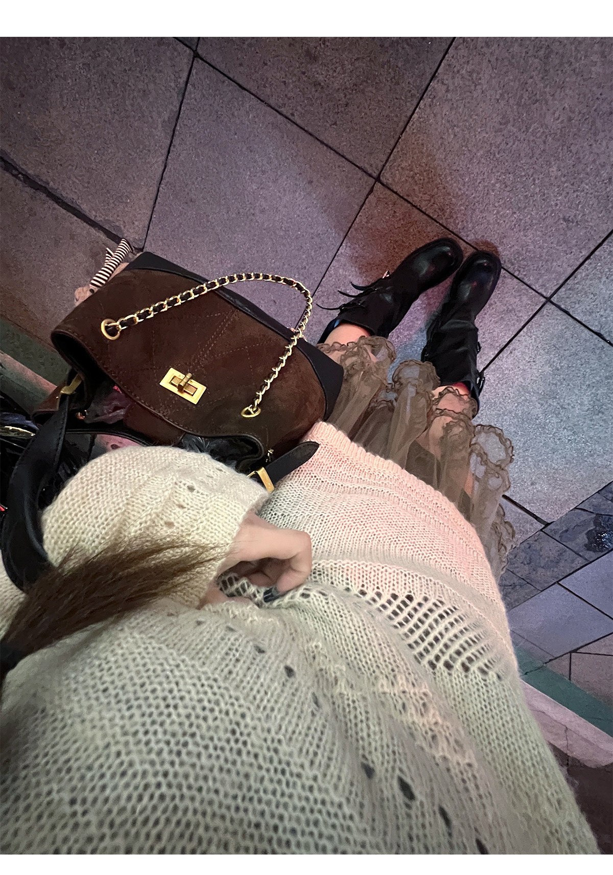 阿馨yolo 牛皮高品質!小香風鏈條拼色包單肩包女小衆設計感麂皮包