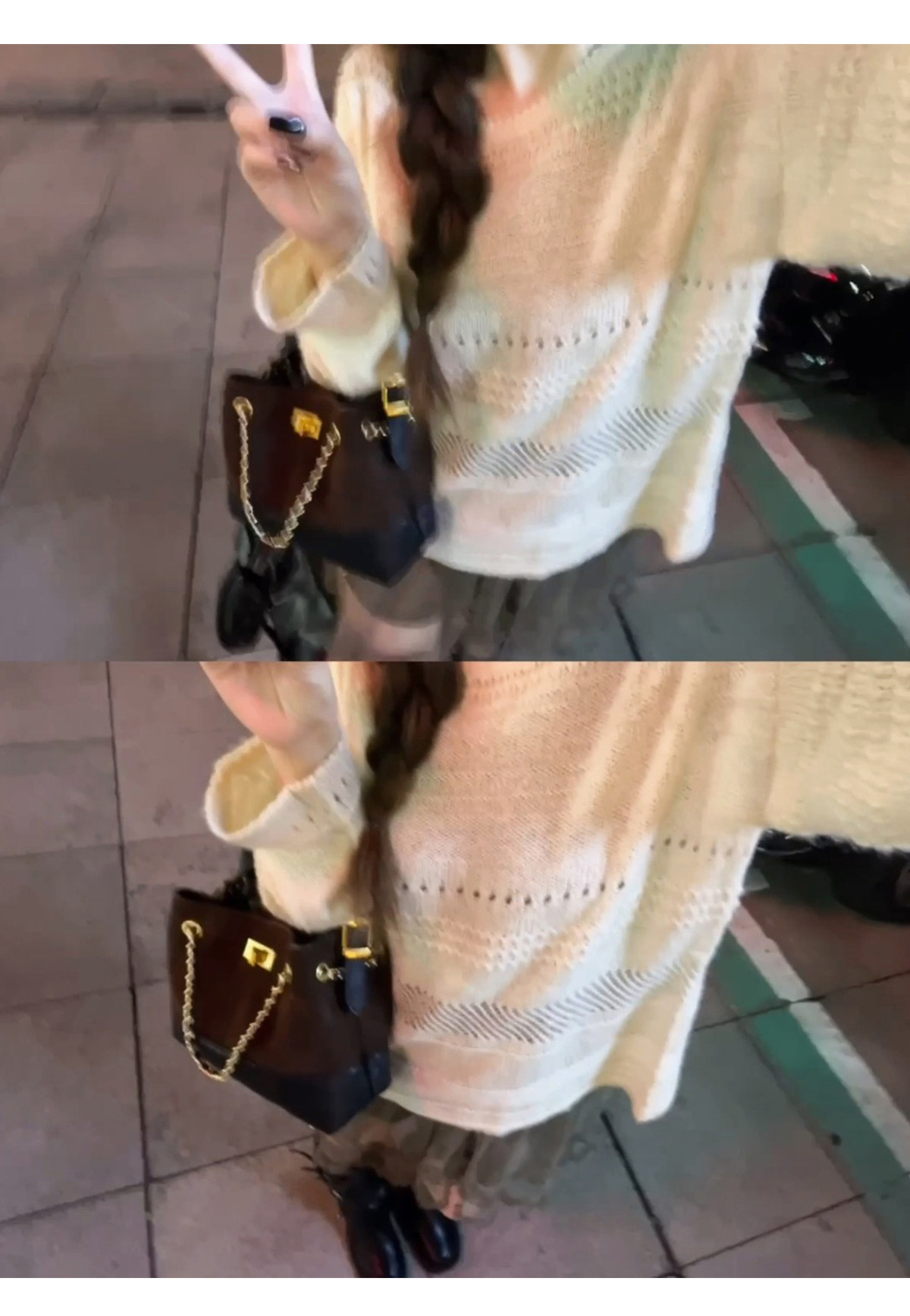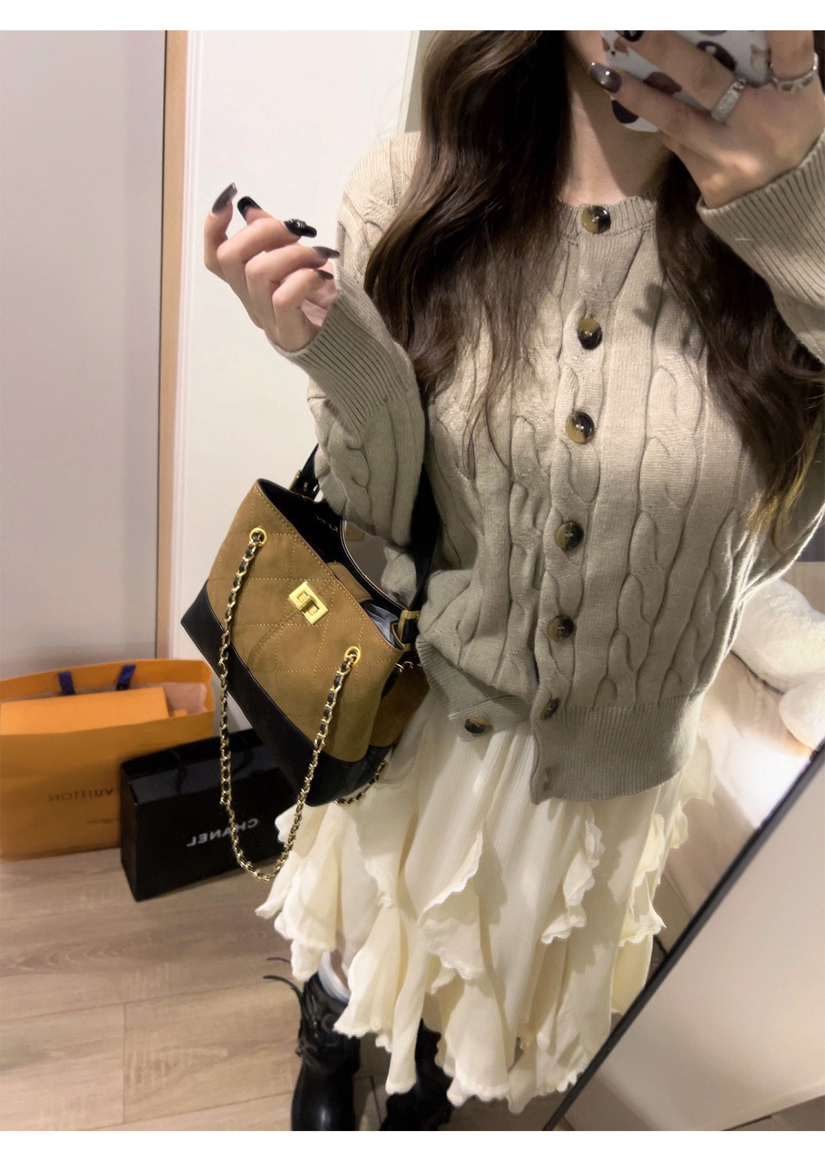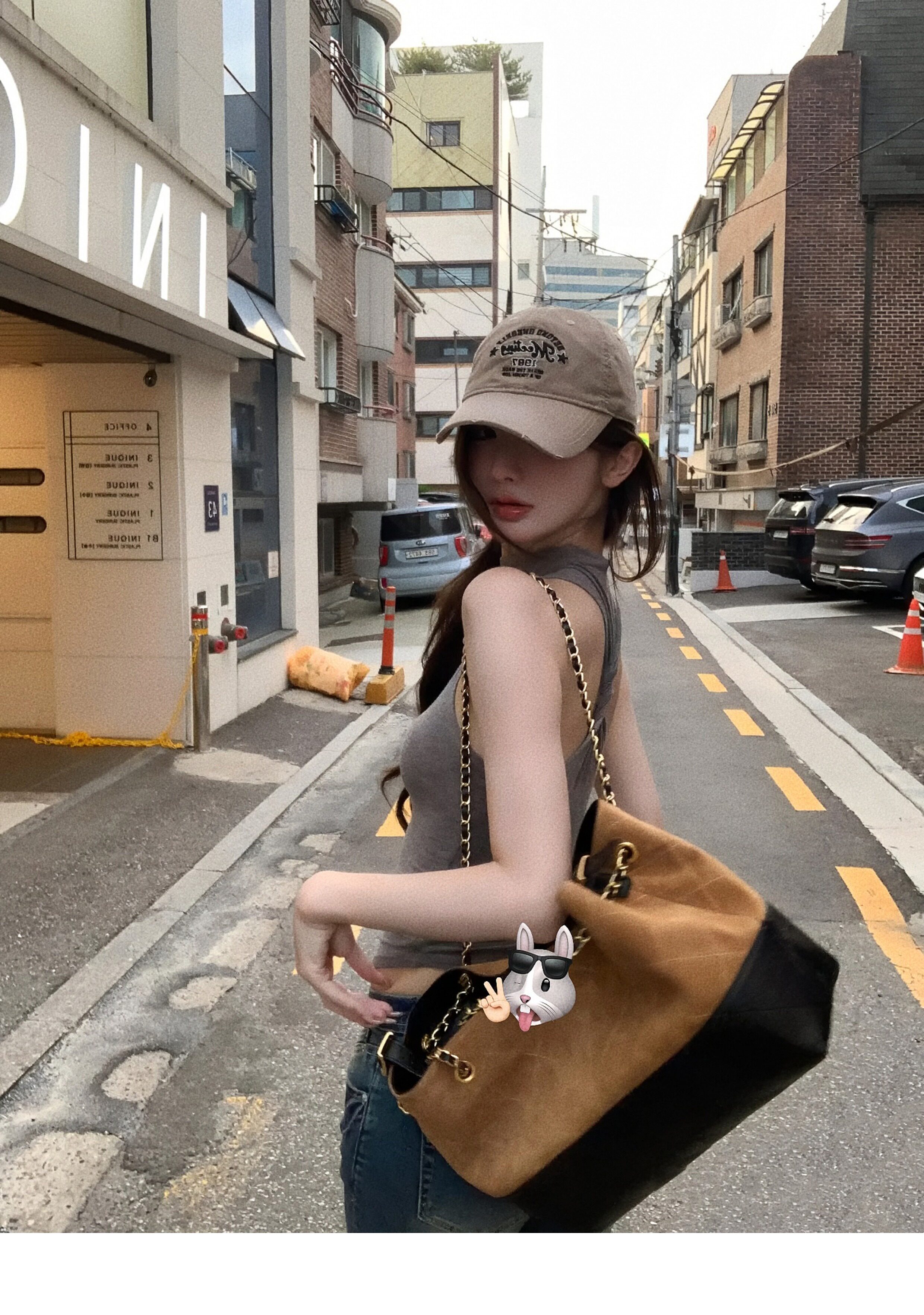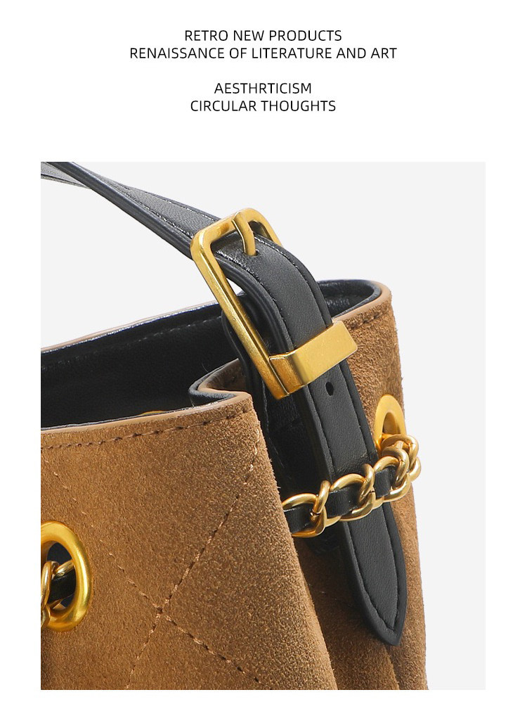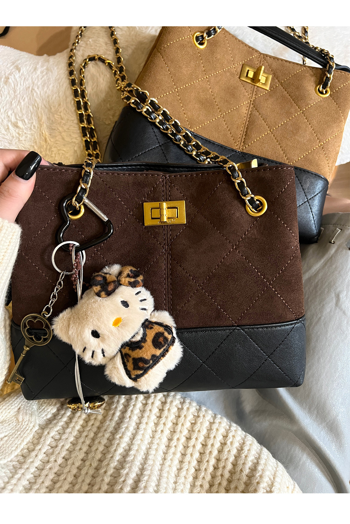阿馨yolo 牛皮高品質!小香風鏈條拼色包單肩包女小衆設計感麂皮包
