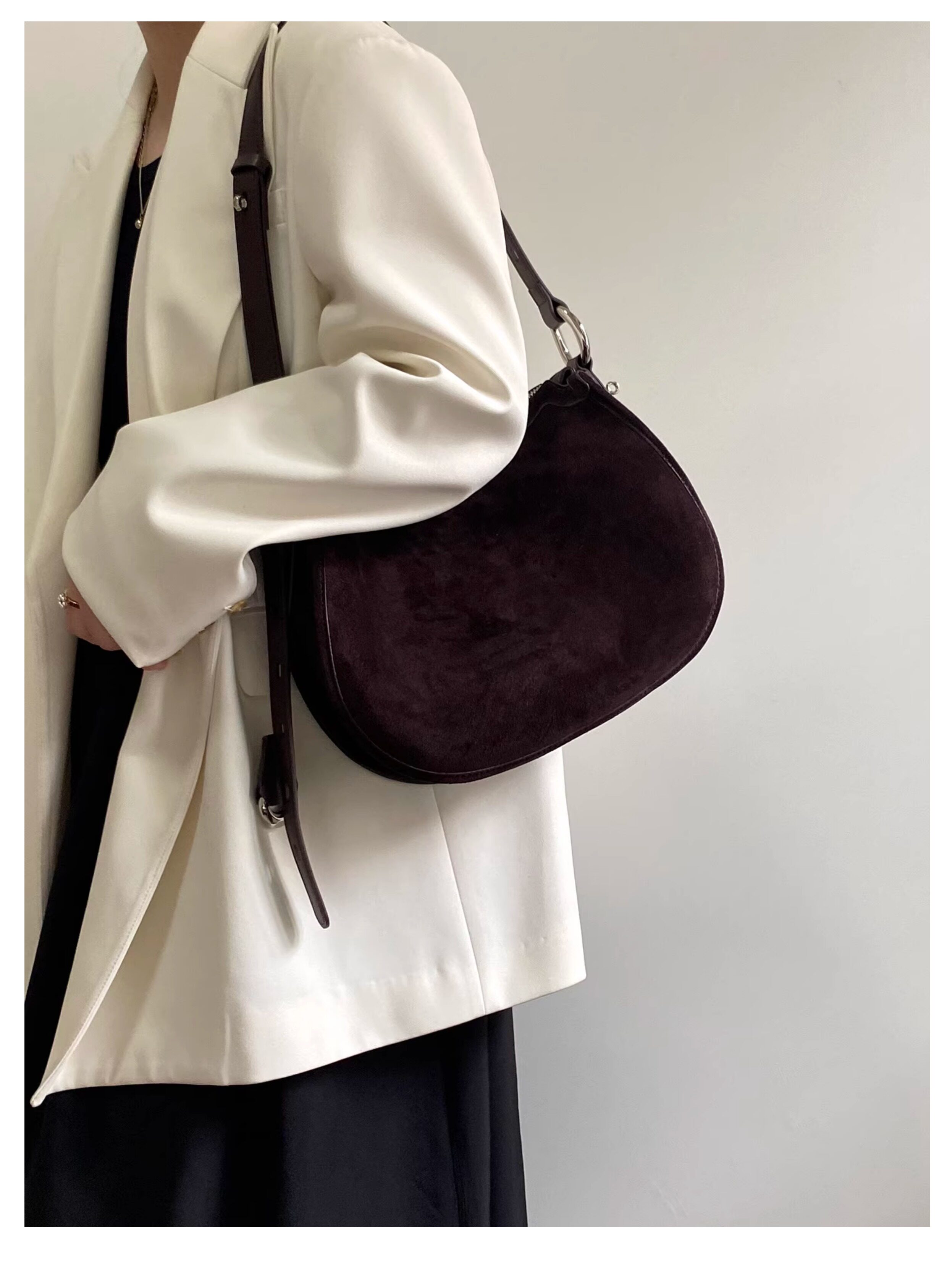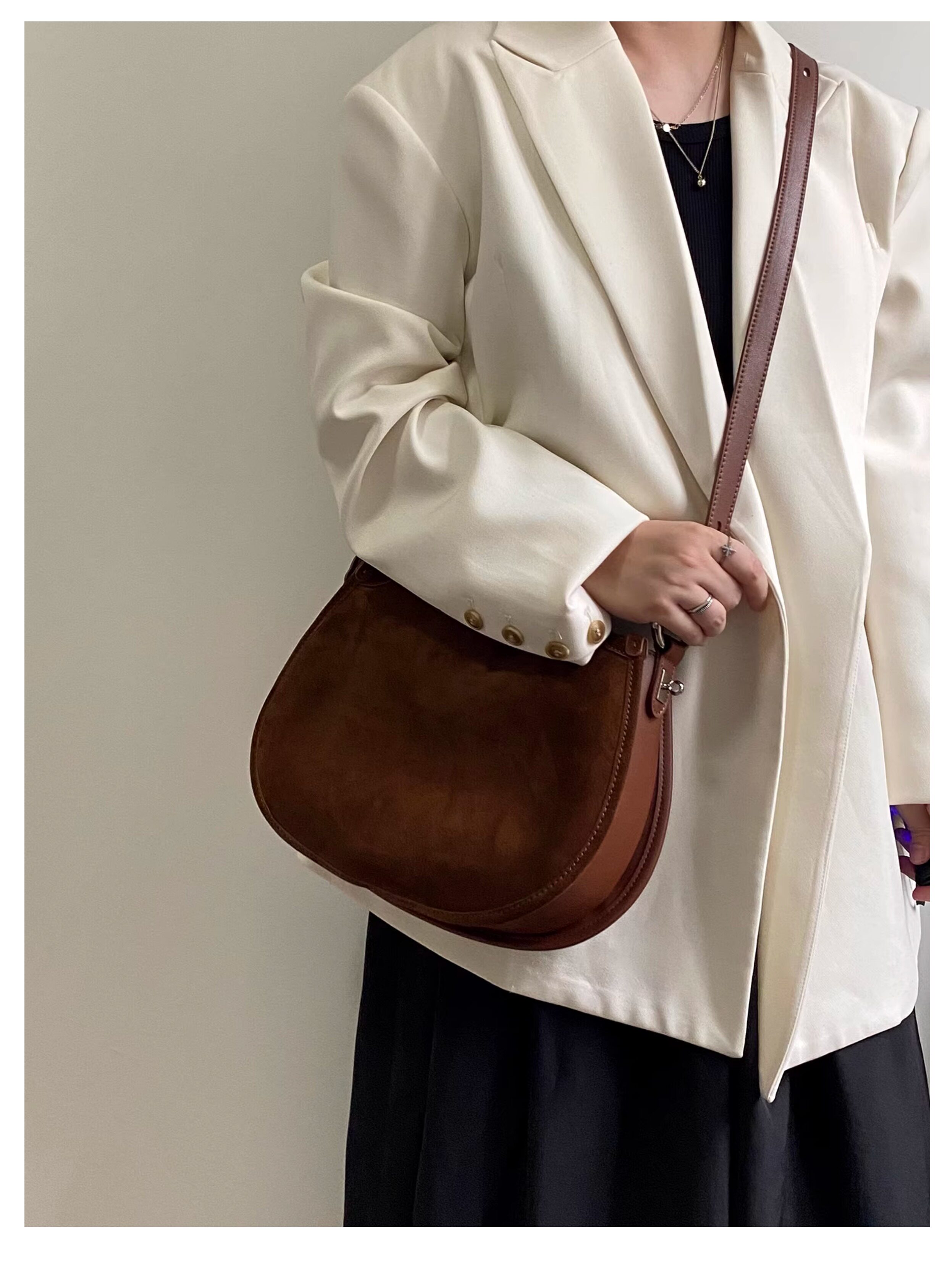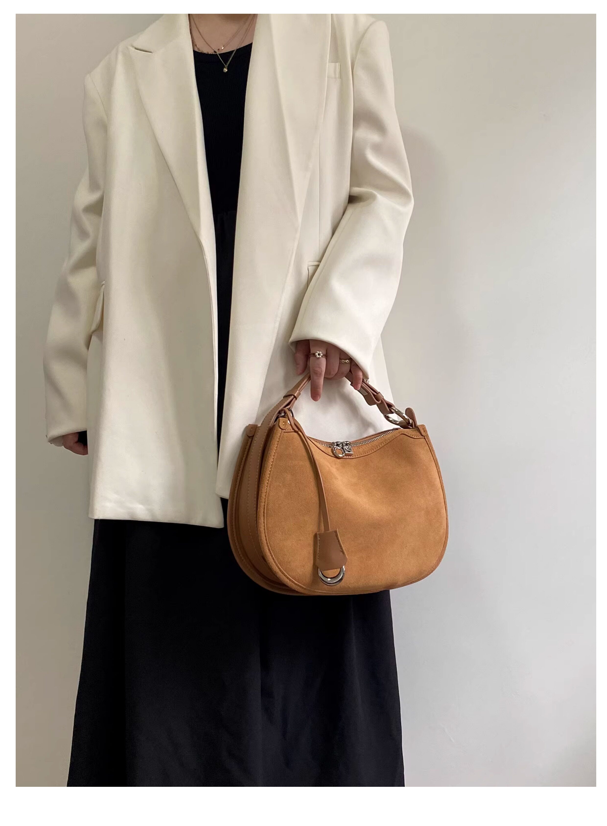 怪獸君2025秋冬新款磨砂牛皮馬鞍包真皮單肩包百搭高級感斜後後背包潮