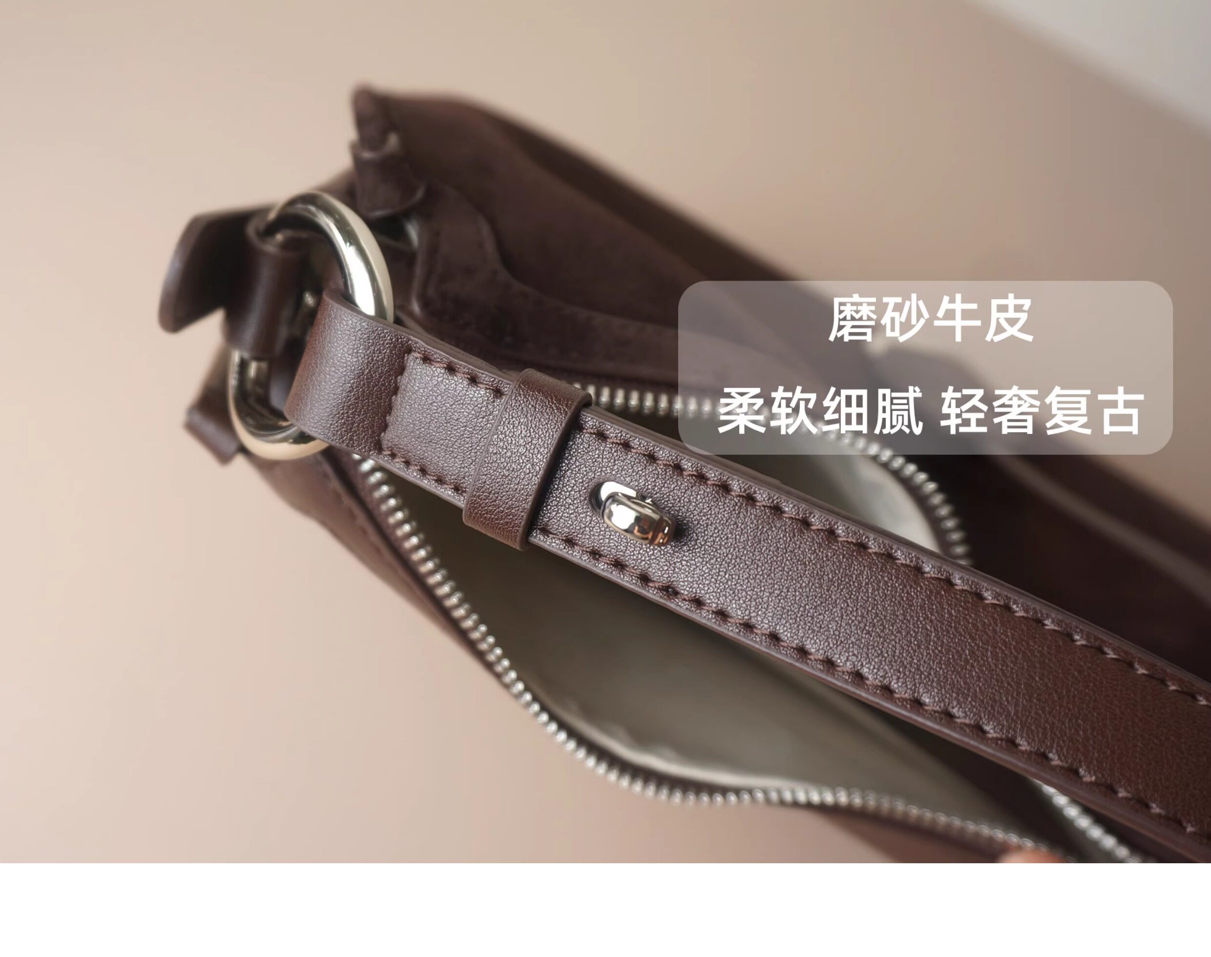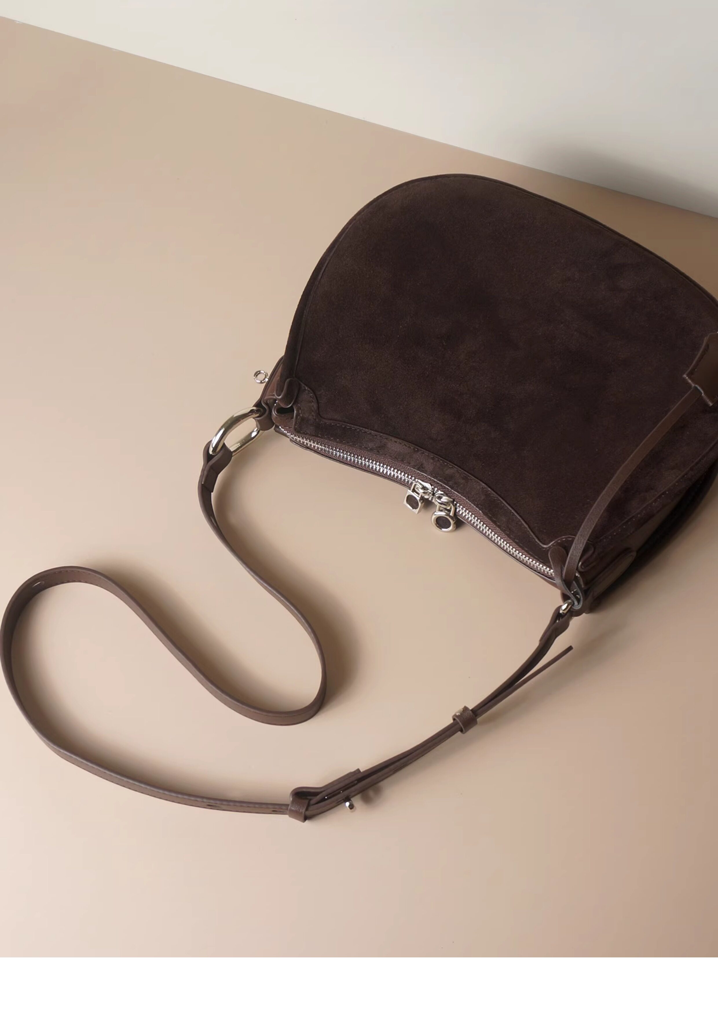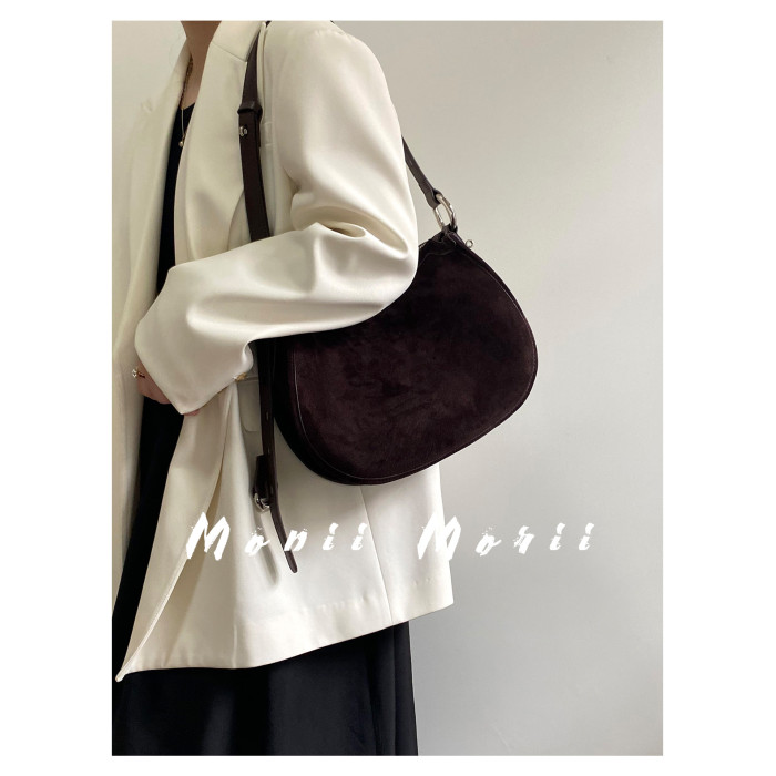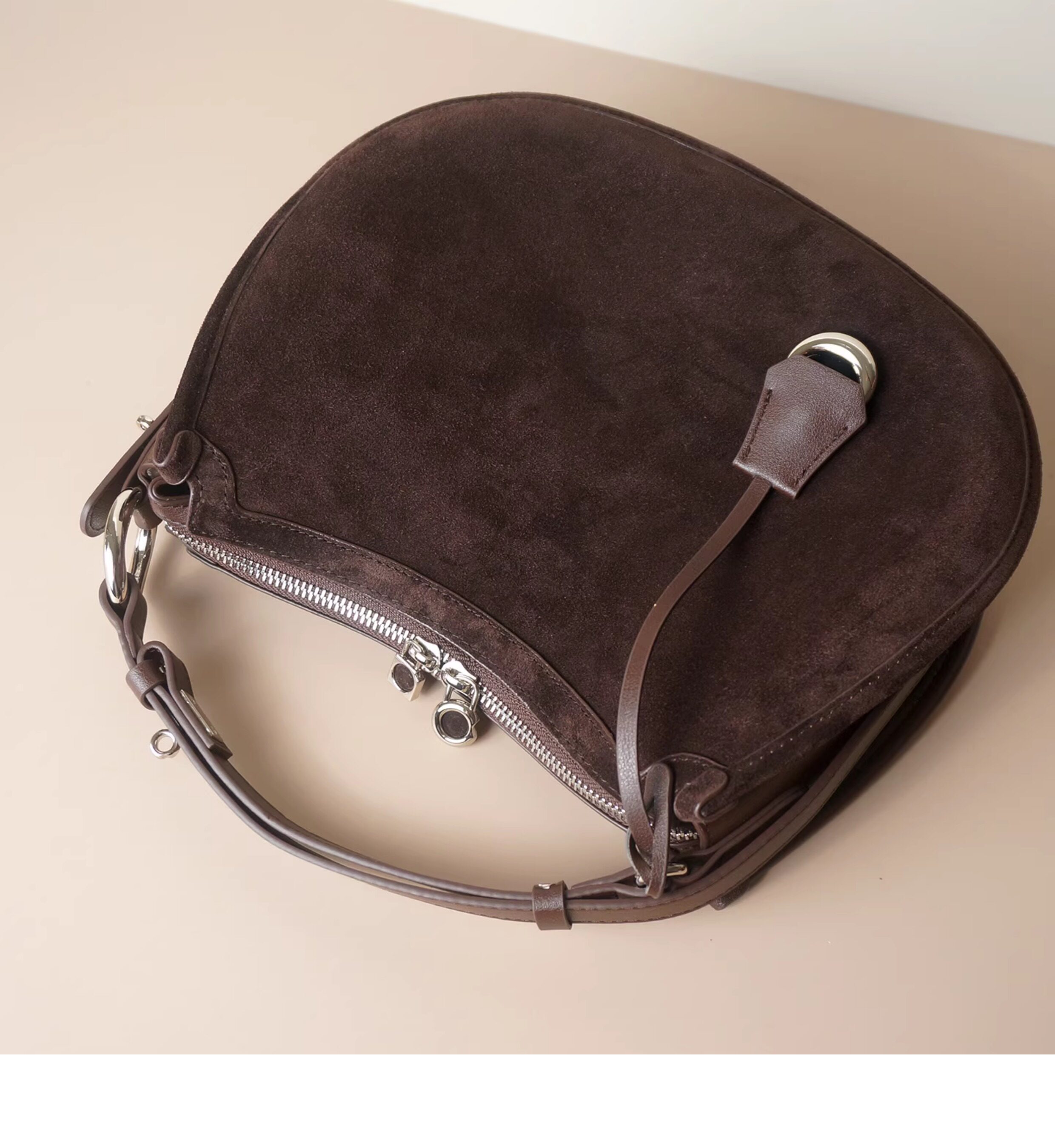 怪獸君2025秋冬新款磨砂牛皮馬鞍包真皮單肩包百搭高級感斜後後背包潮