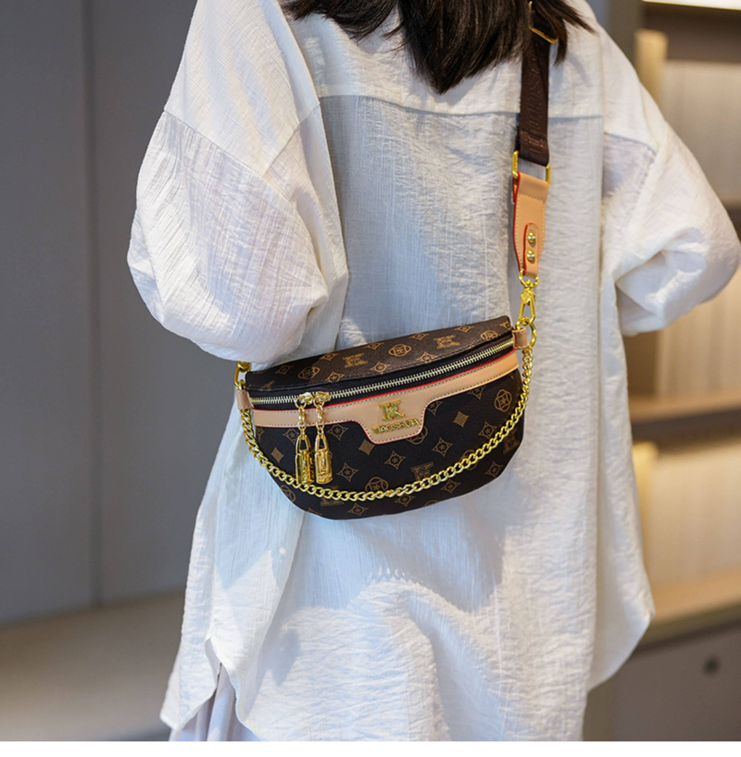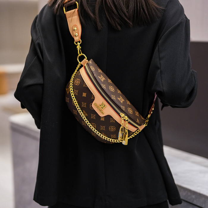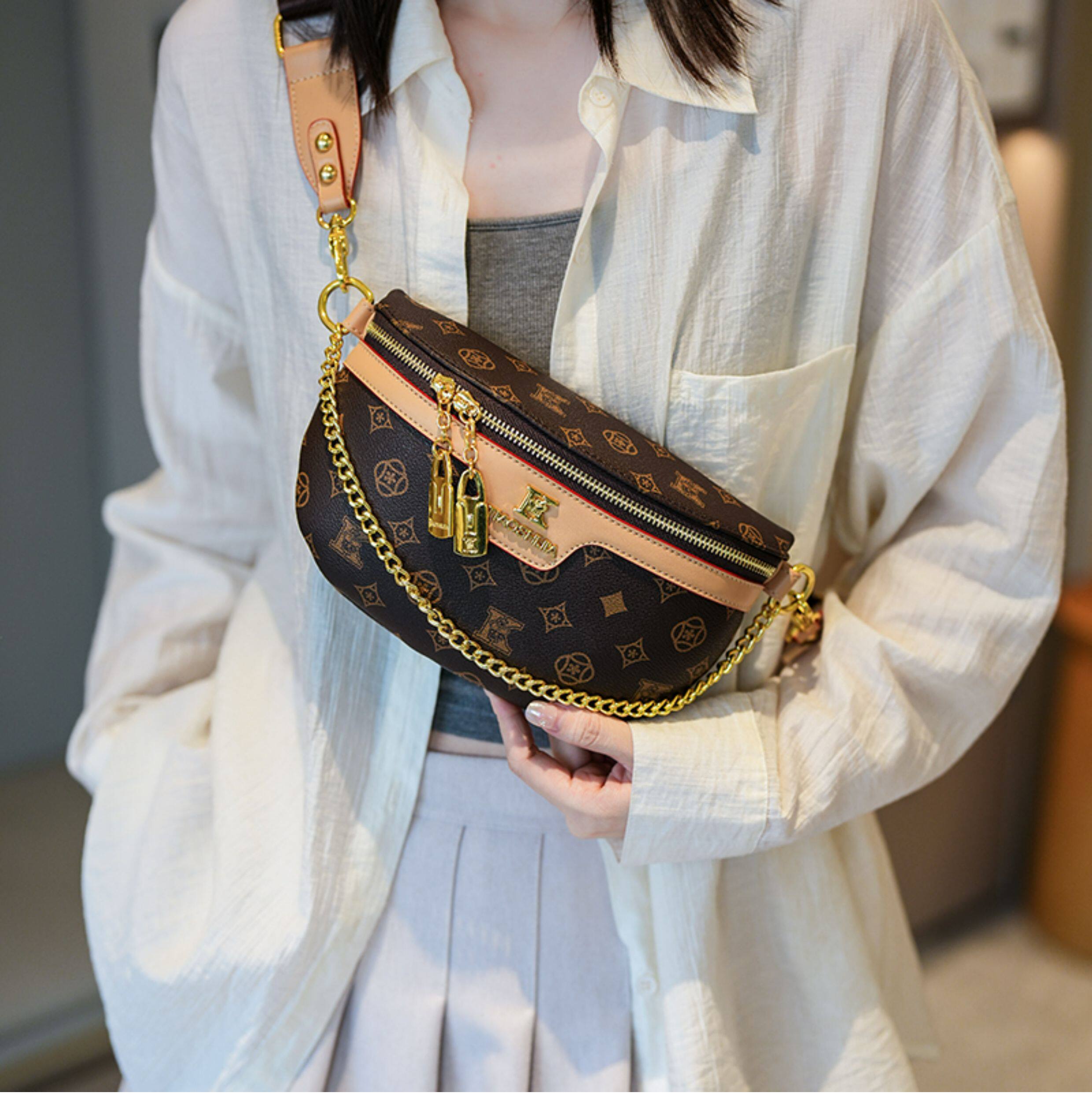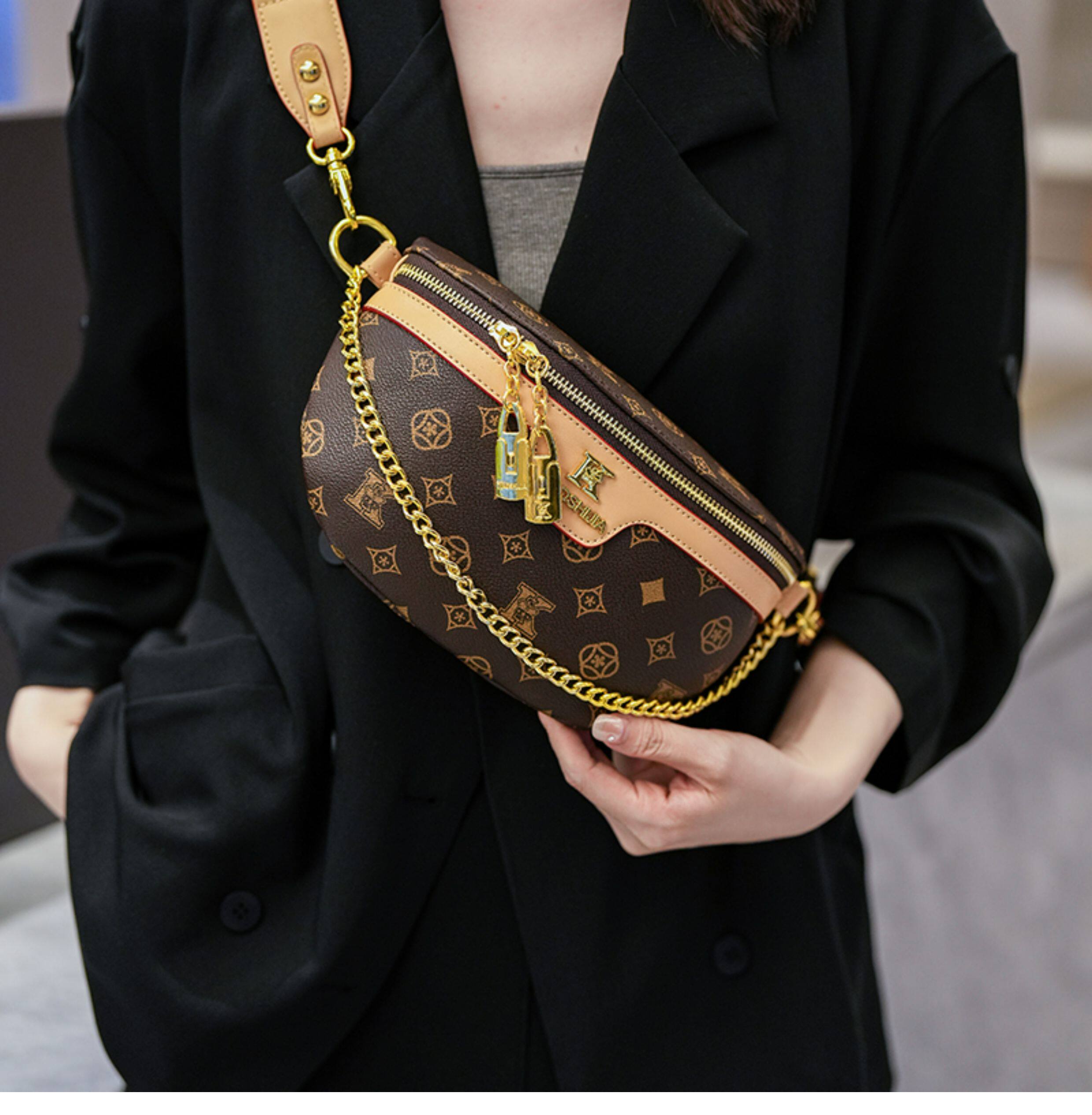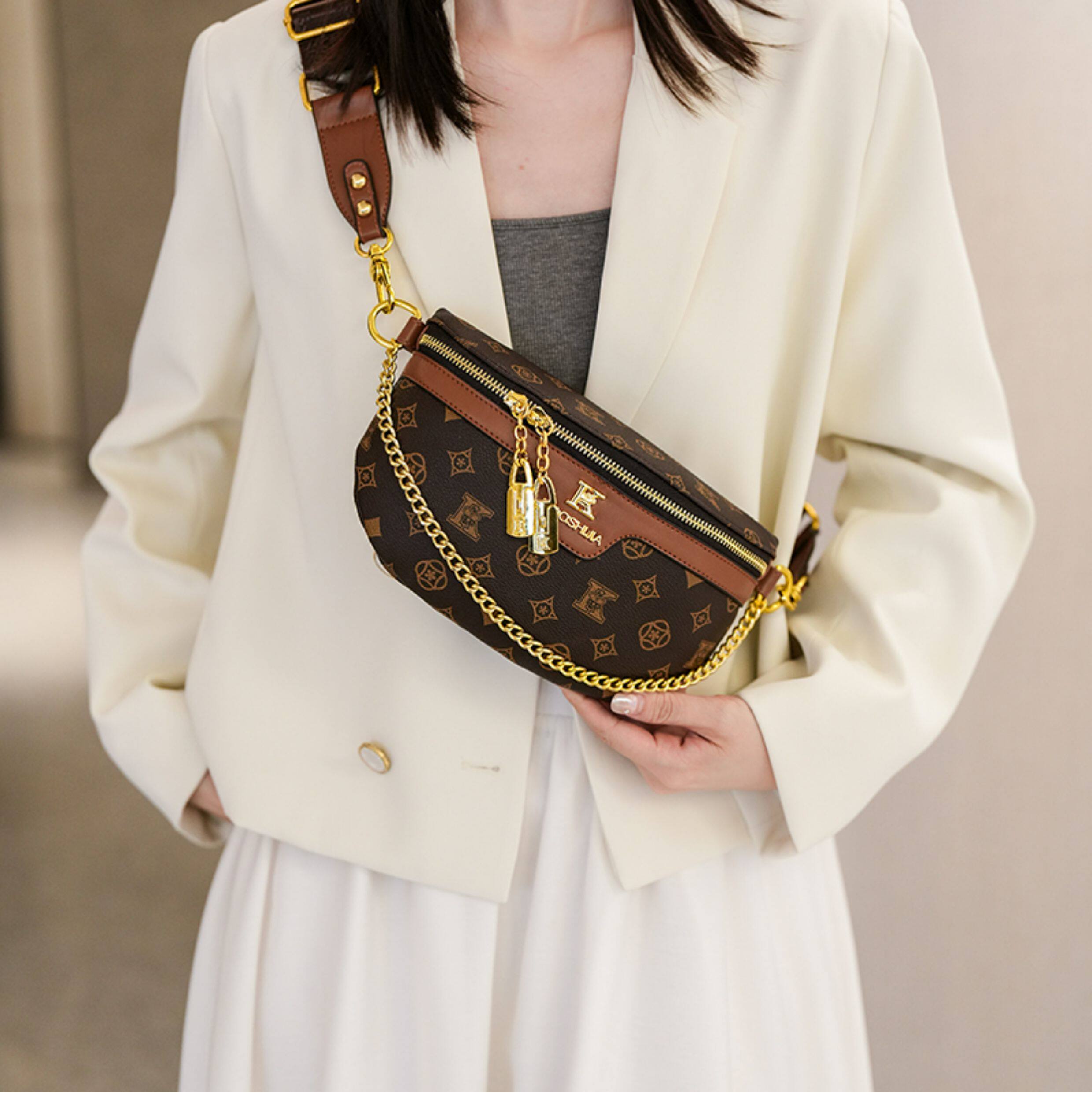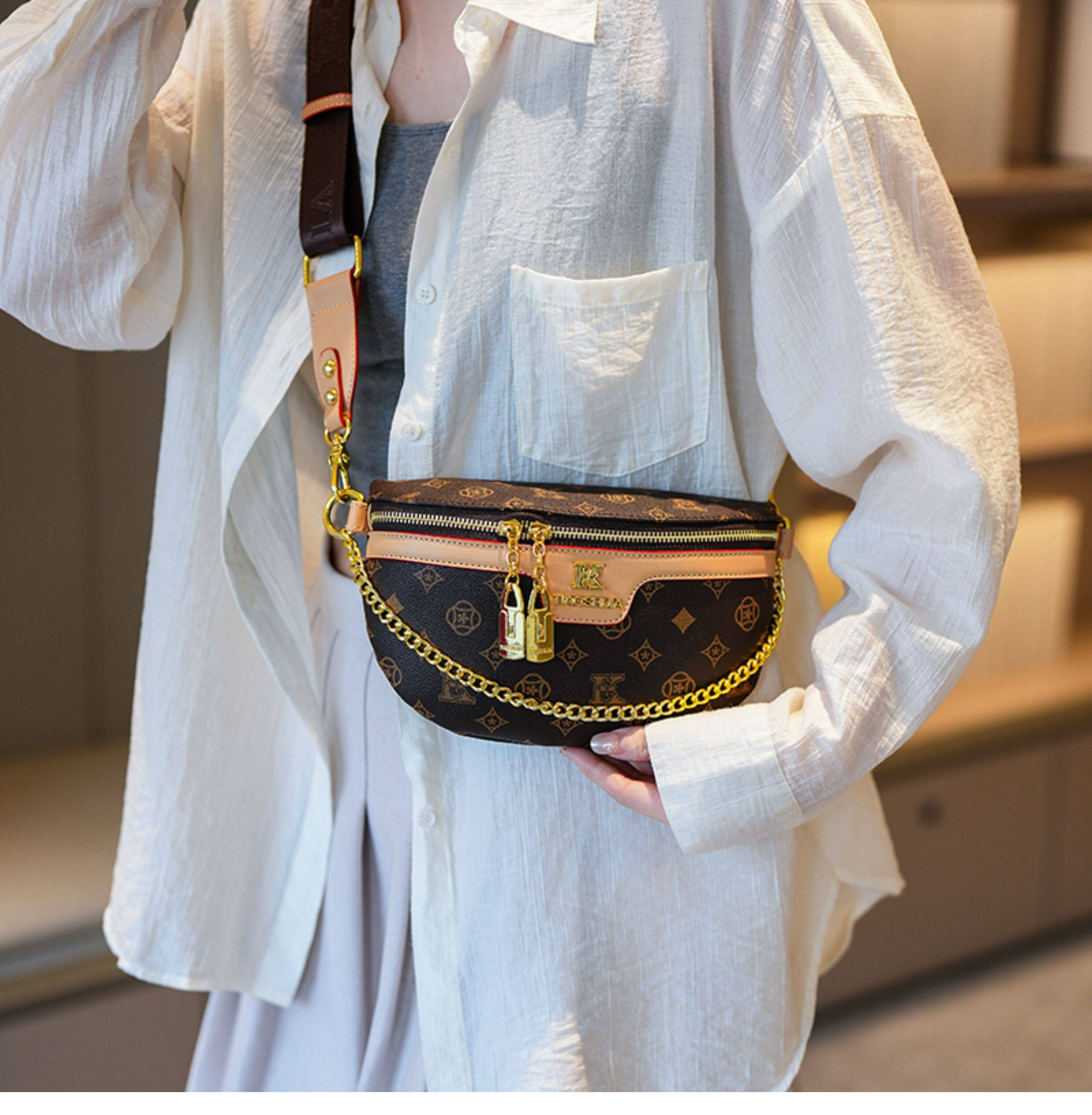 2026新款春輕奢高級感小衆巨好看老花腰包胸包餃子包斜背小包包女