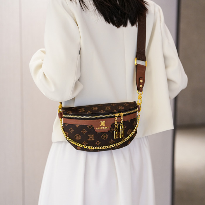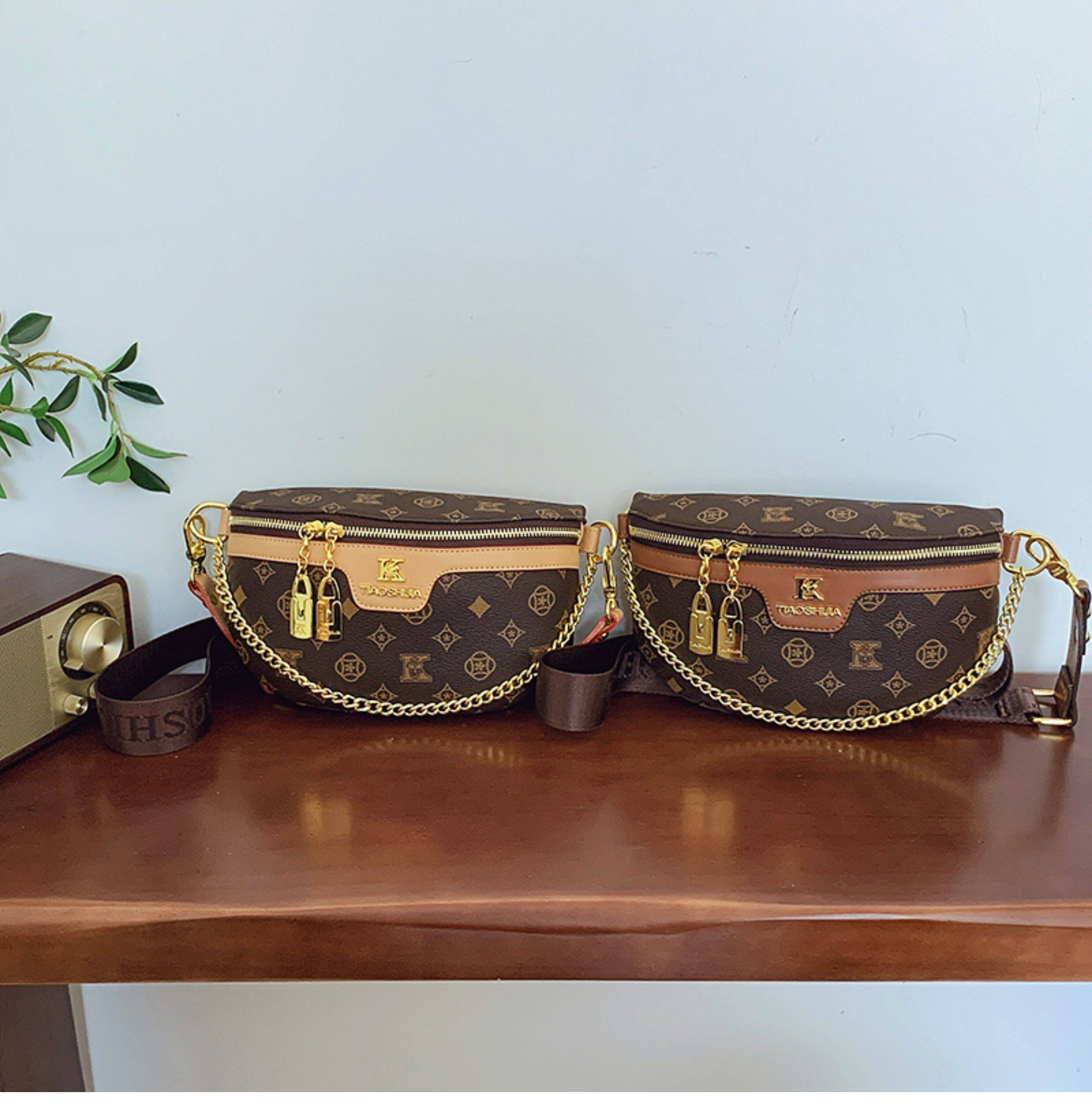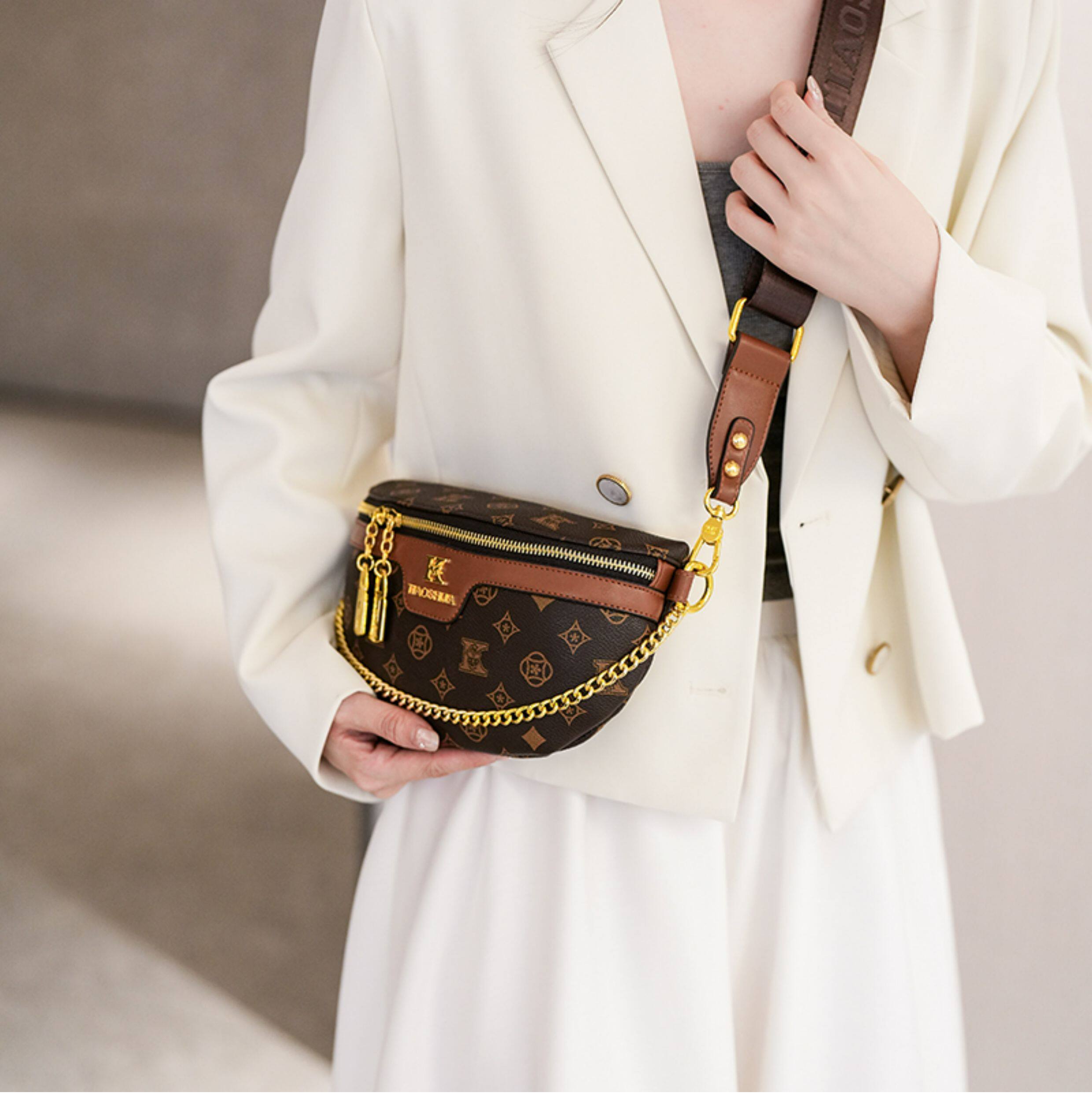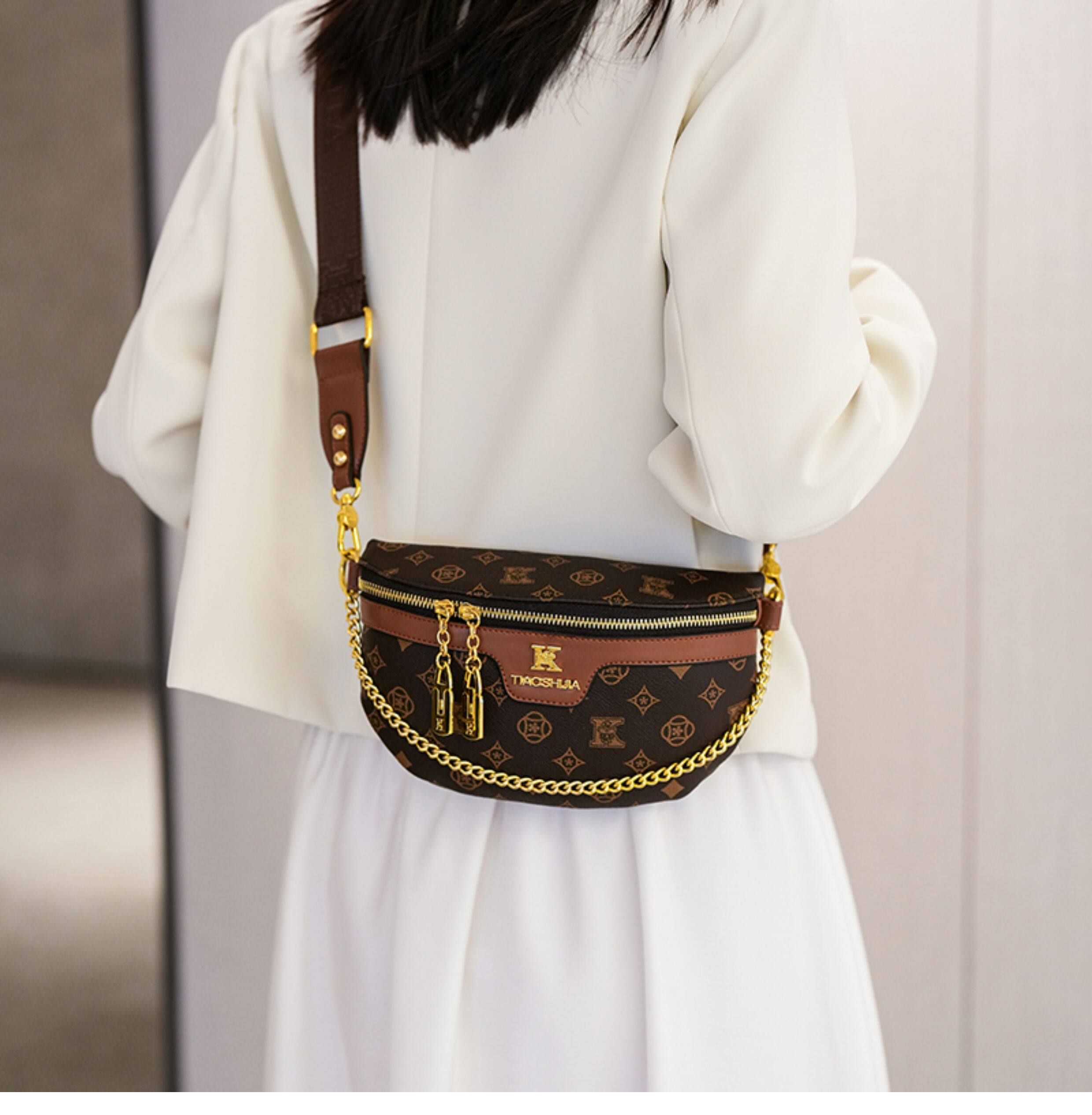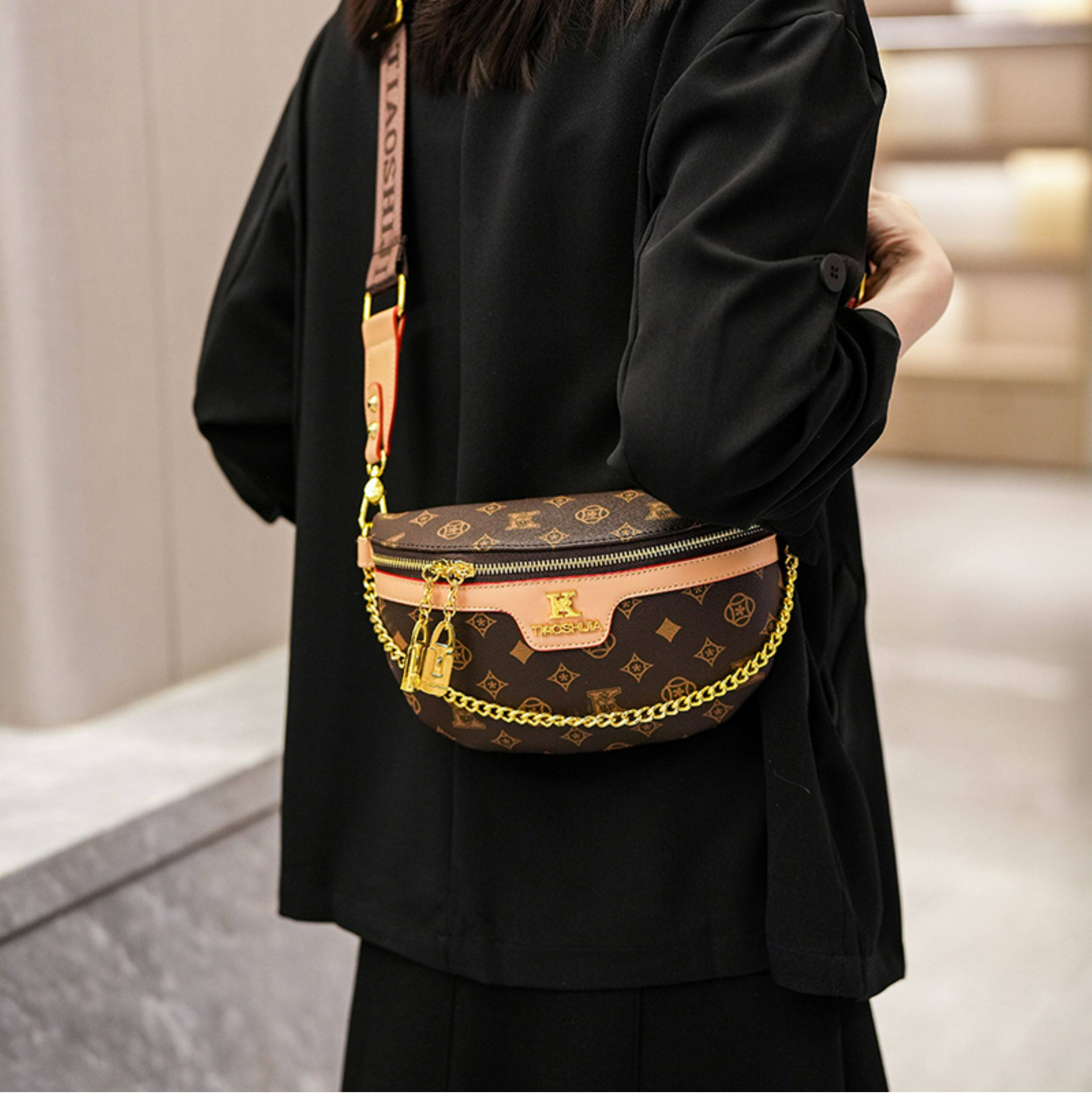 2026新款春輕奢高級感小衆巨好看老花腰包胸包餃子包斜背小包包女