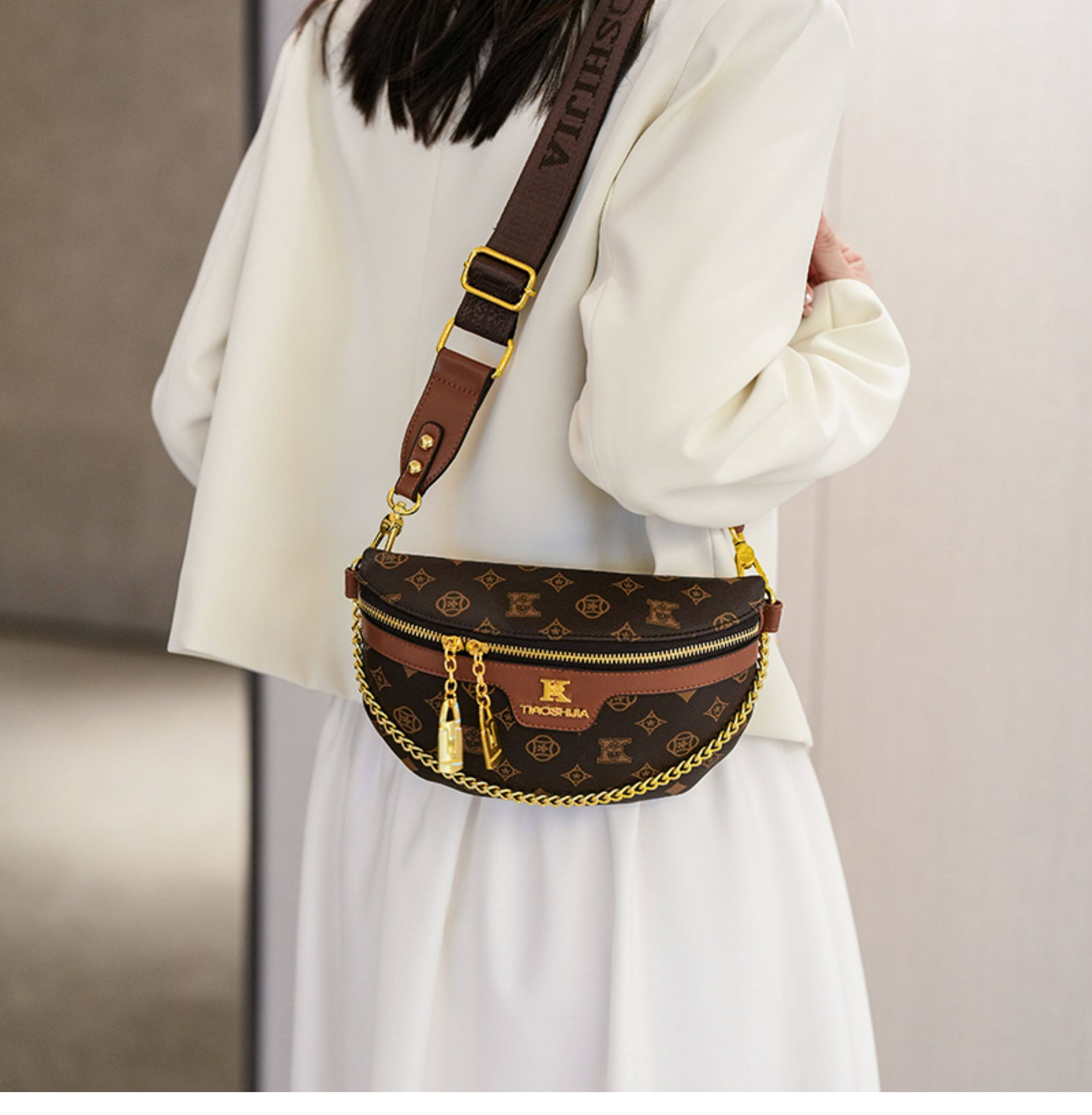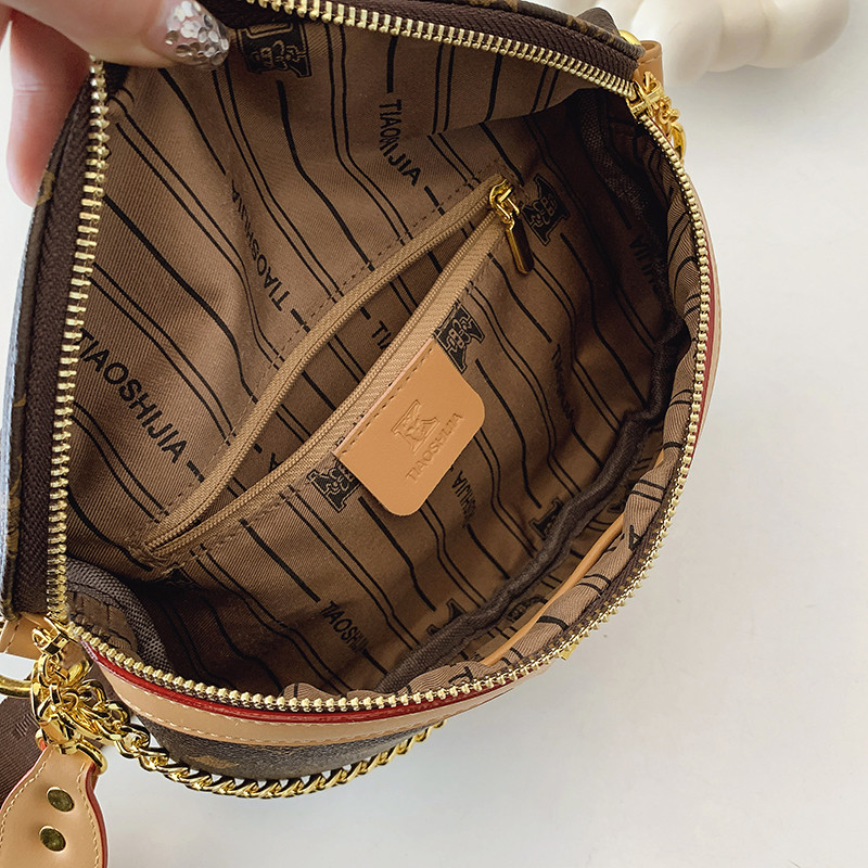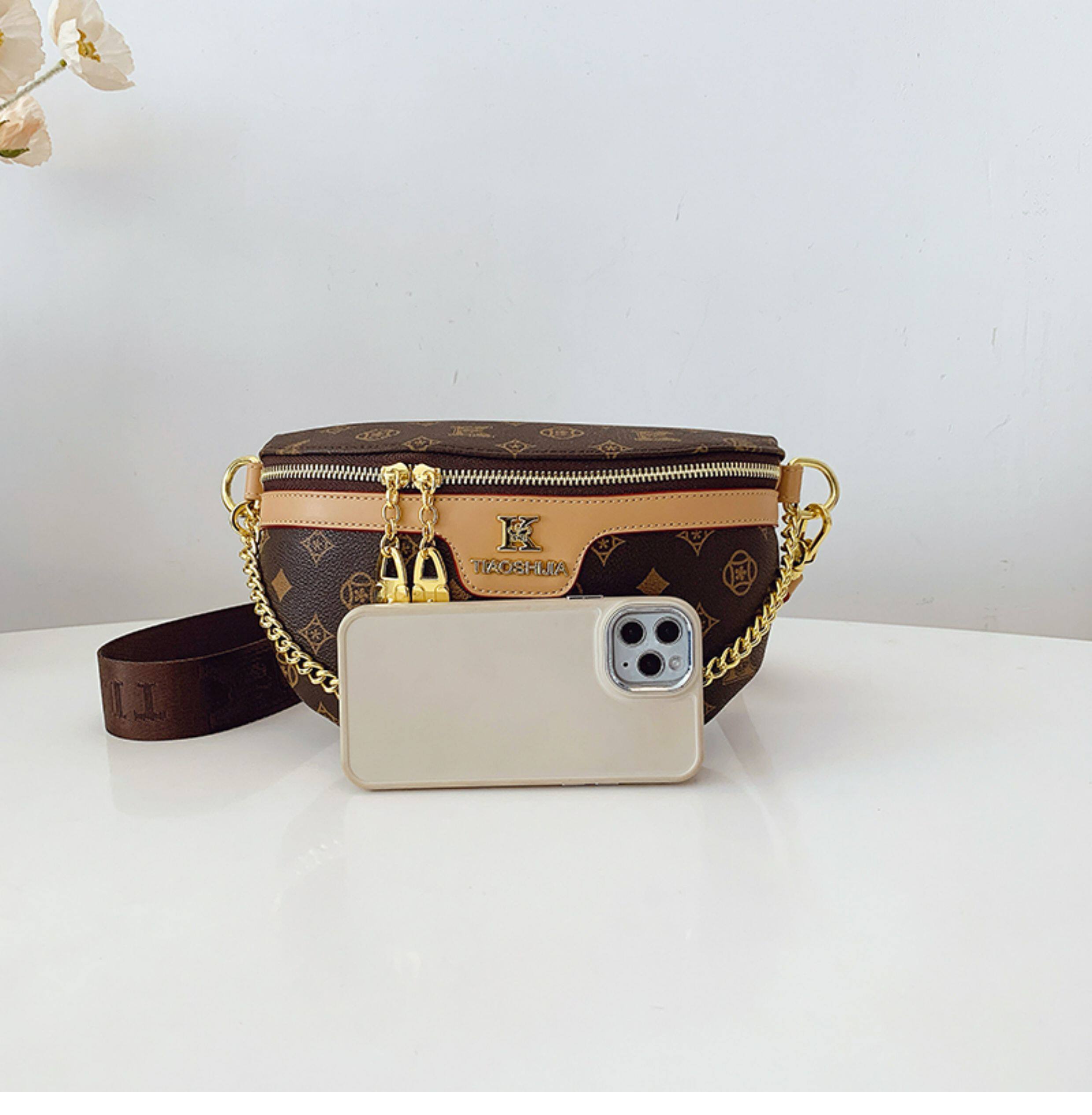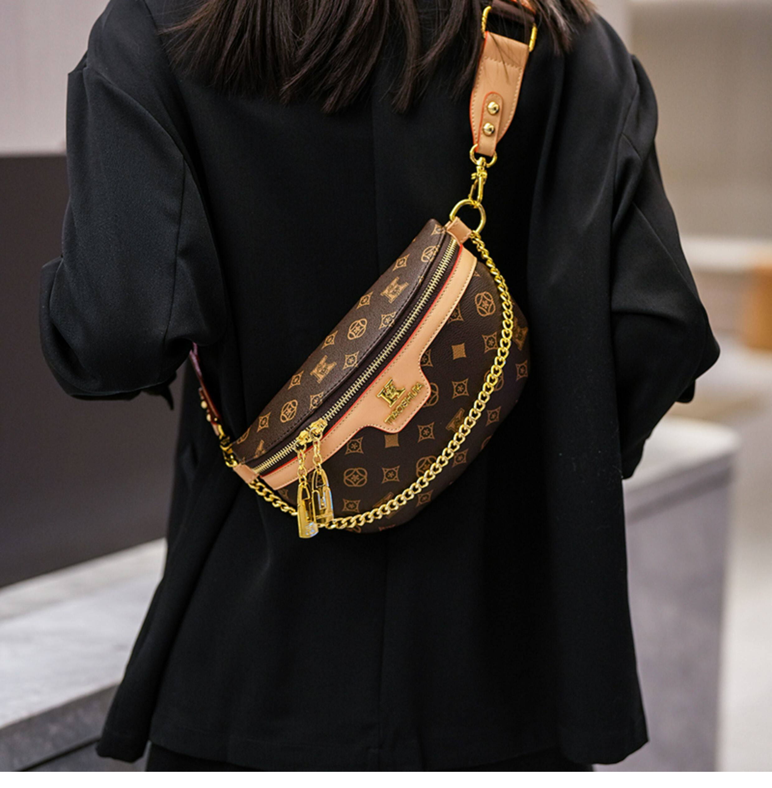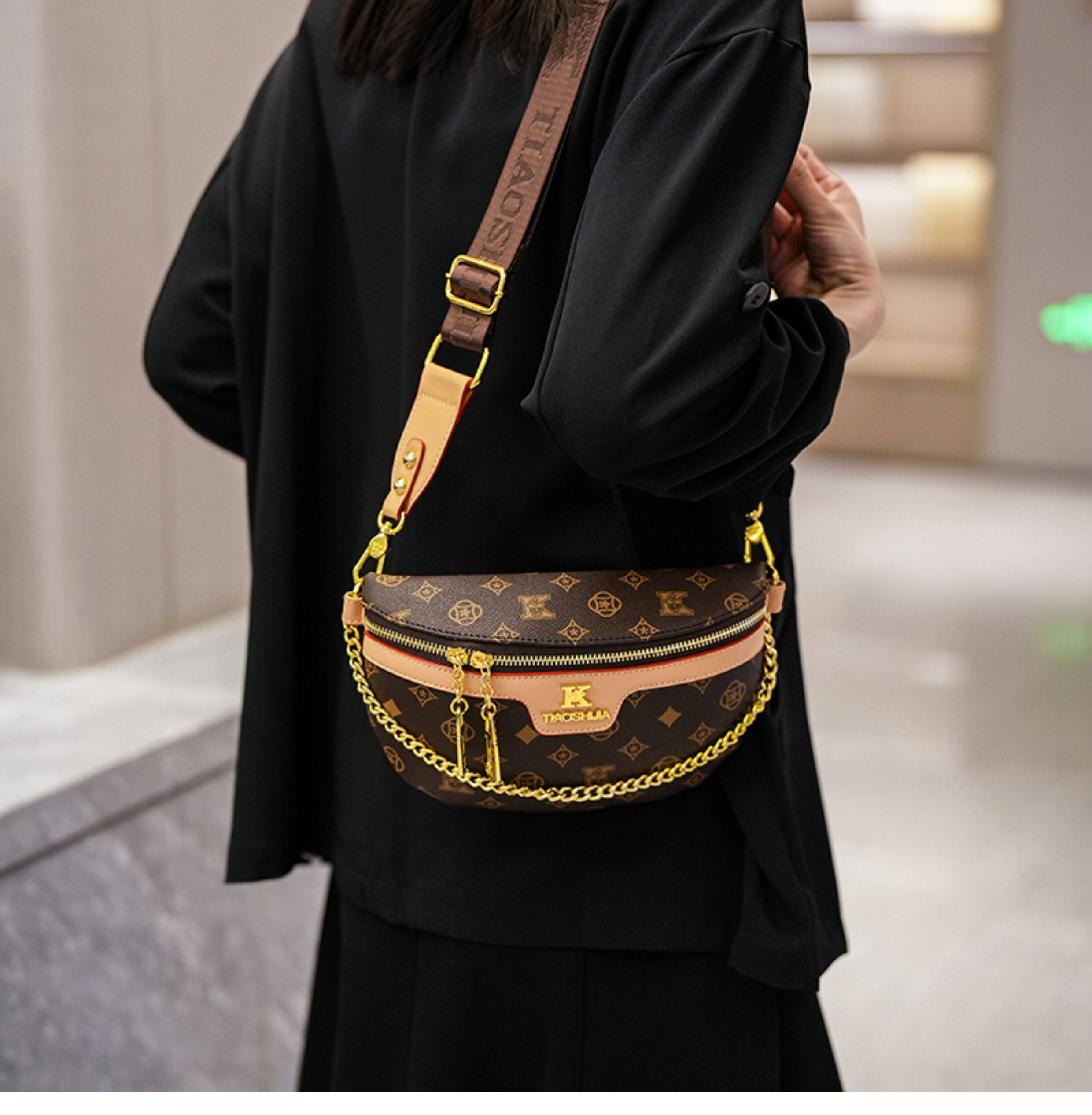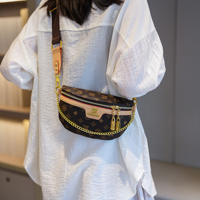 2026新款春輕奢高級感小衆巨好看老花腰包胸包餃子包斜背小包包女