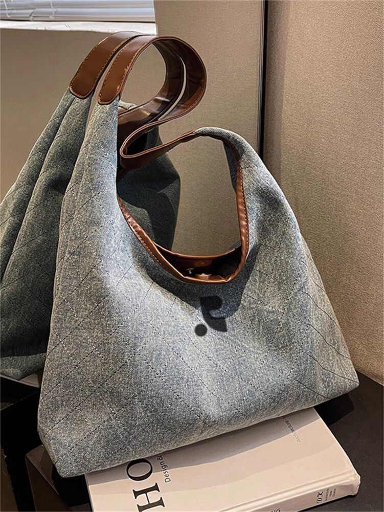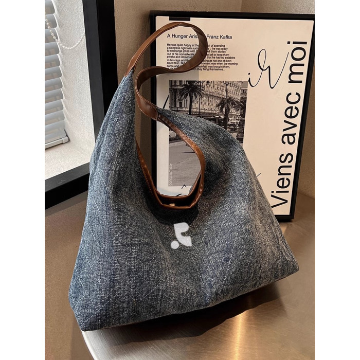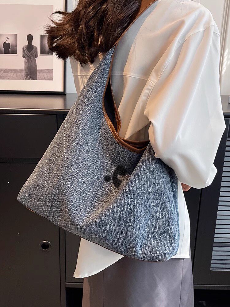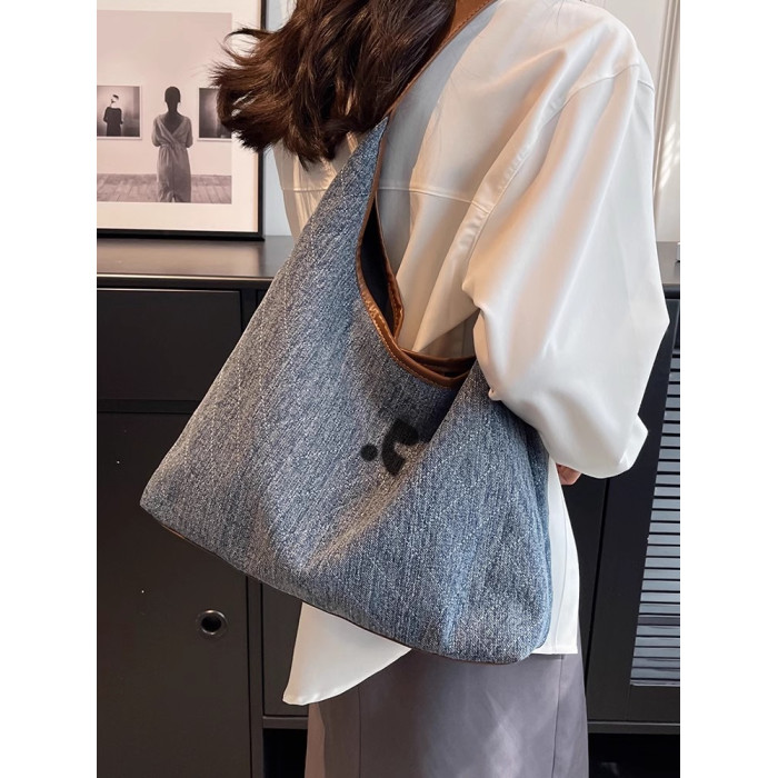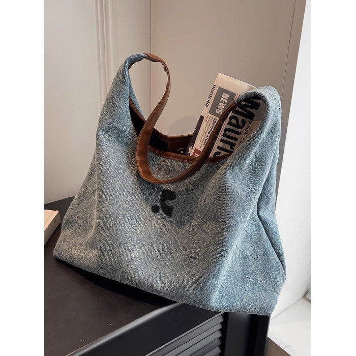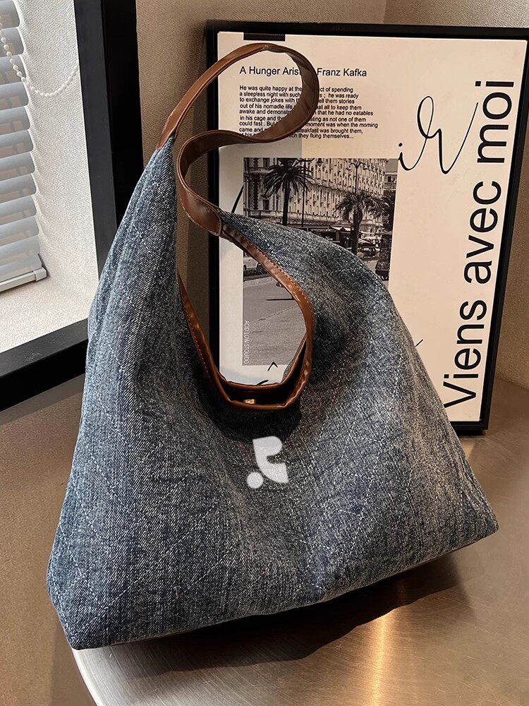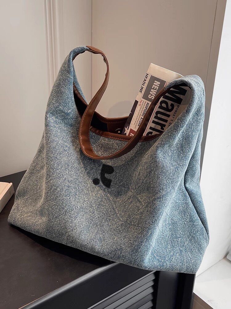 韓國restandrecreation復古大容量包包女牛仔布單肩包托特水桶包