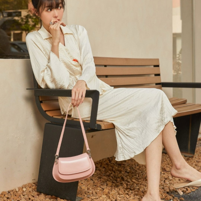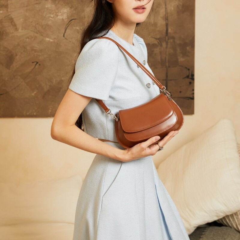 2025新款真皮女包納帕牛皮馬鞍包單肩斜背小方包時尚百搭腋下包女