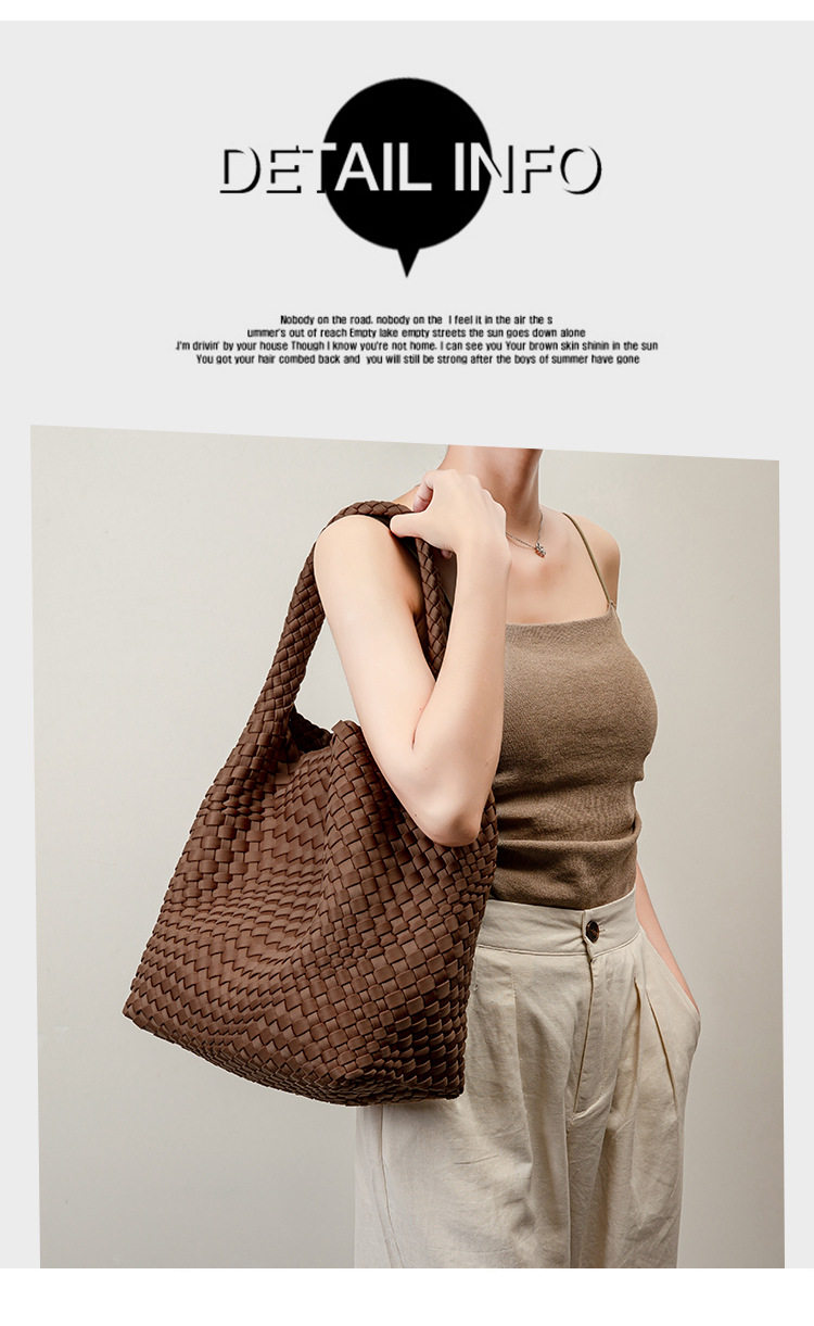 新潮網紅街拍純手工編織包潛水料防水大容量單肩百搭子母腋下大包
