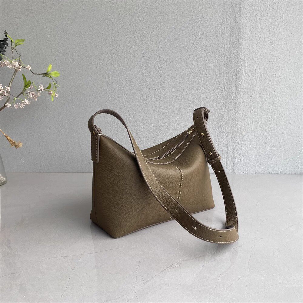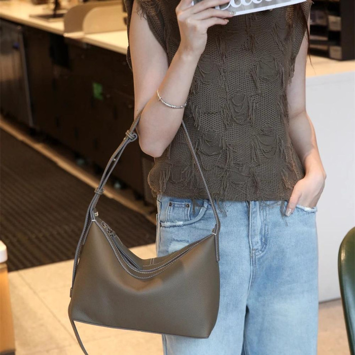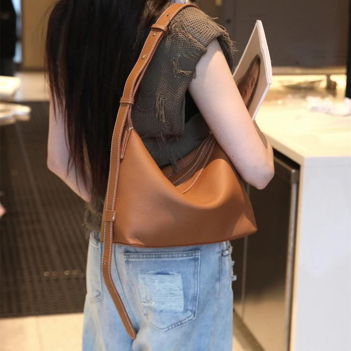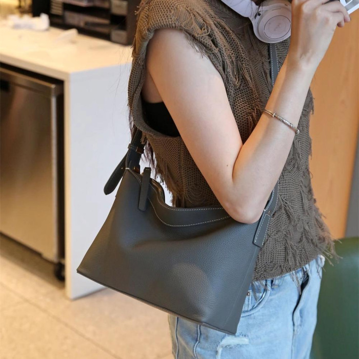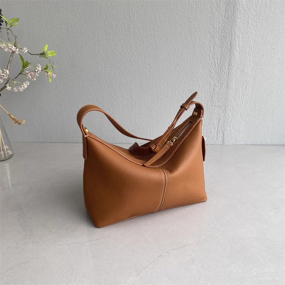 ~進口頭層牛皮~女包高級質感時尚小衆洋氣飯盒包腋下包托特包