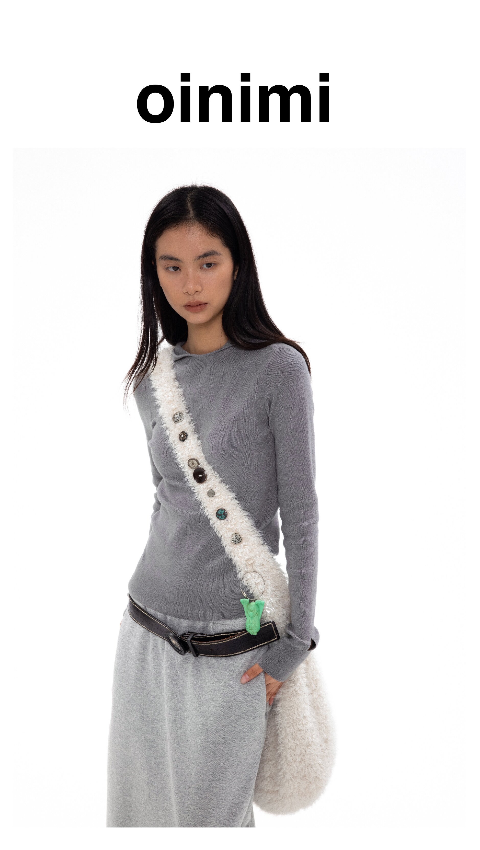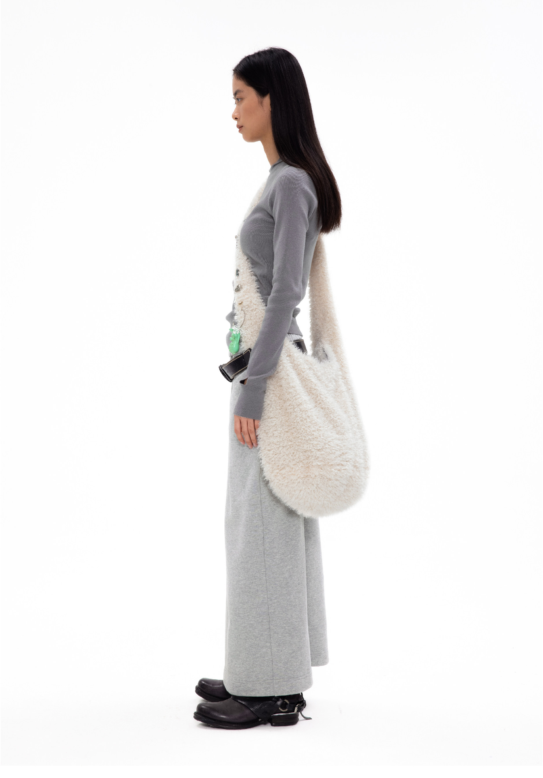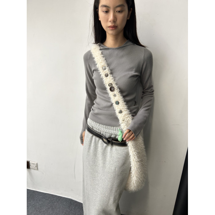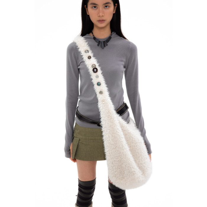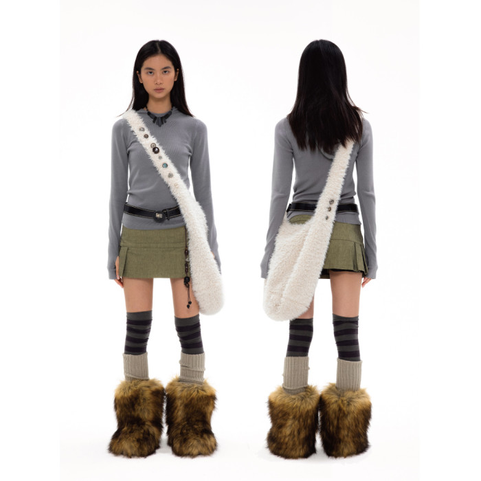 oinimi 米白色羊羔毛包 釘釦裝飾毛毛包 大容量通勤斜後後背包