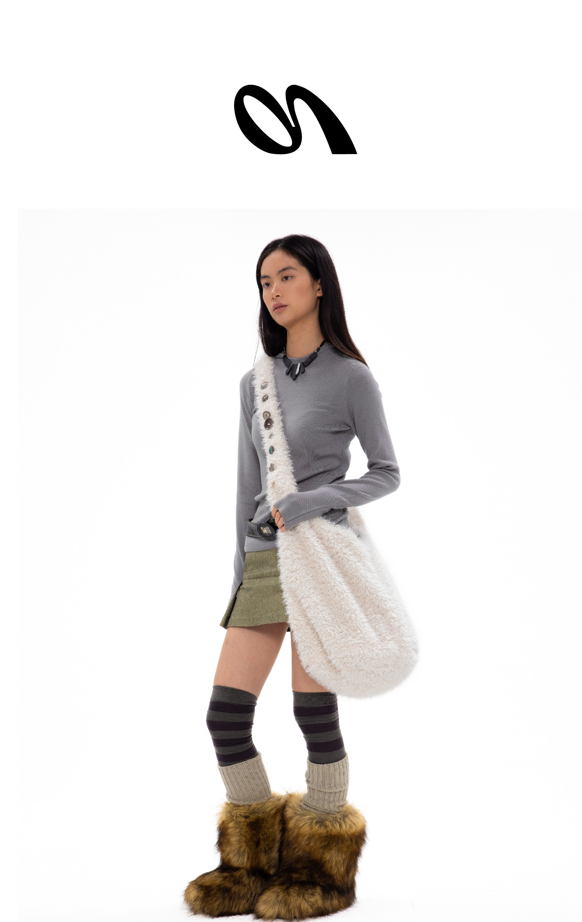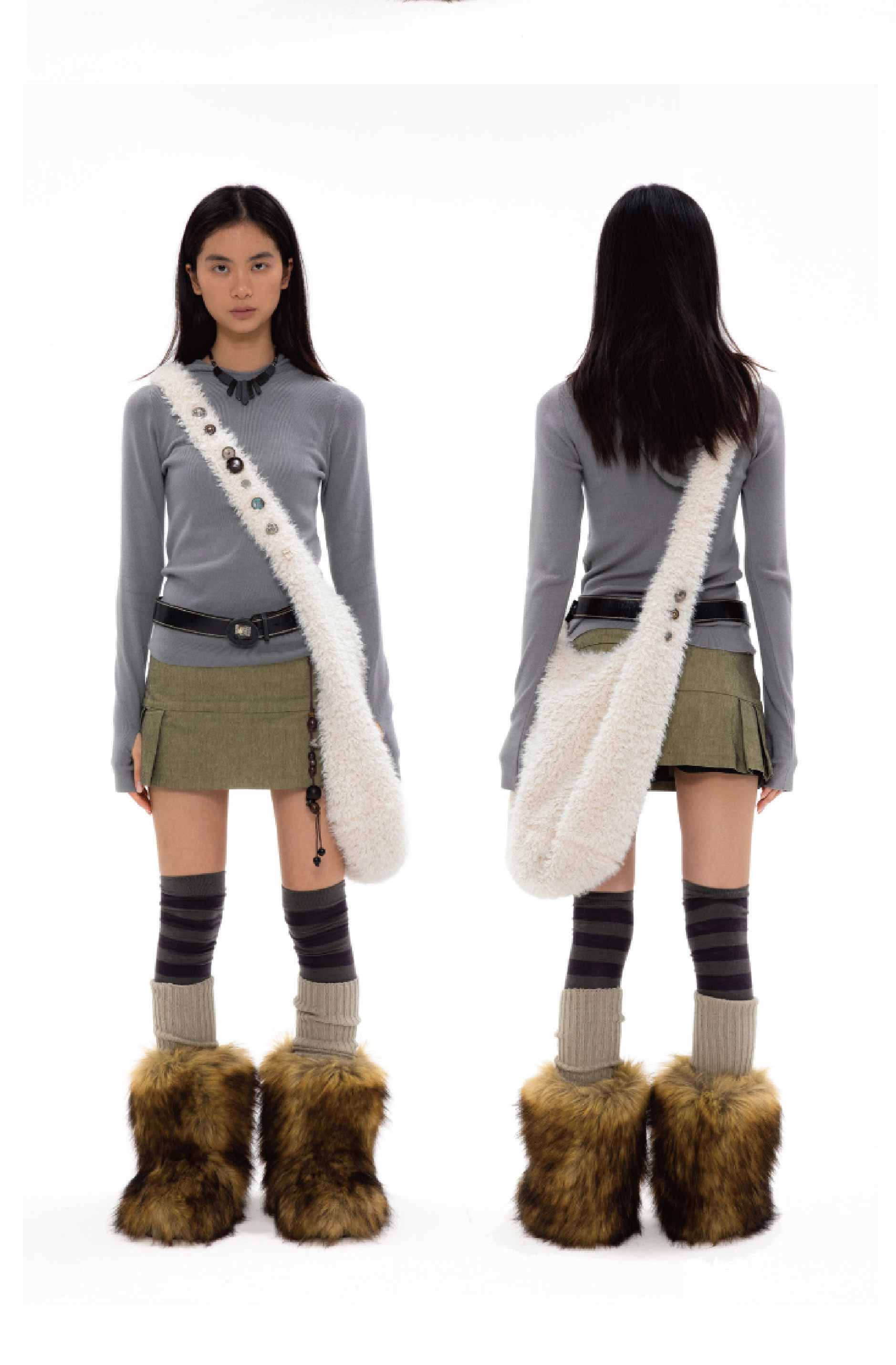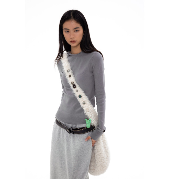 oinimi 米白色羊羔毛包 釘釦裝飾毛毛包 大容量通勤斜後後背包