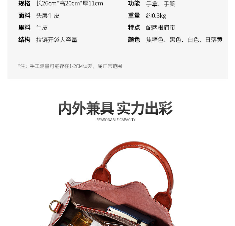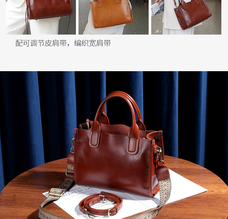 頭層牛皮斜背手提包包女百搭2026新款真皮大容量寬肩帶托特包女包
