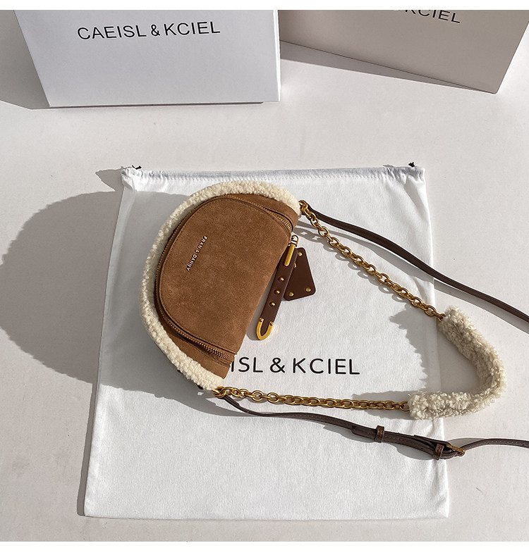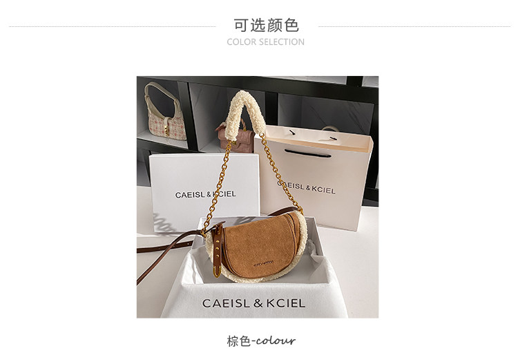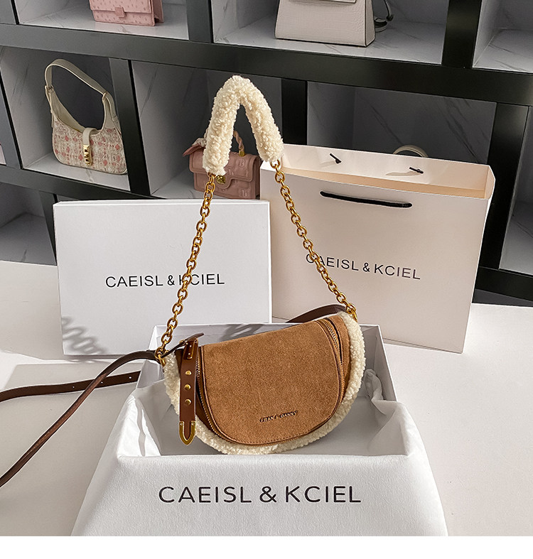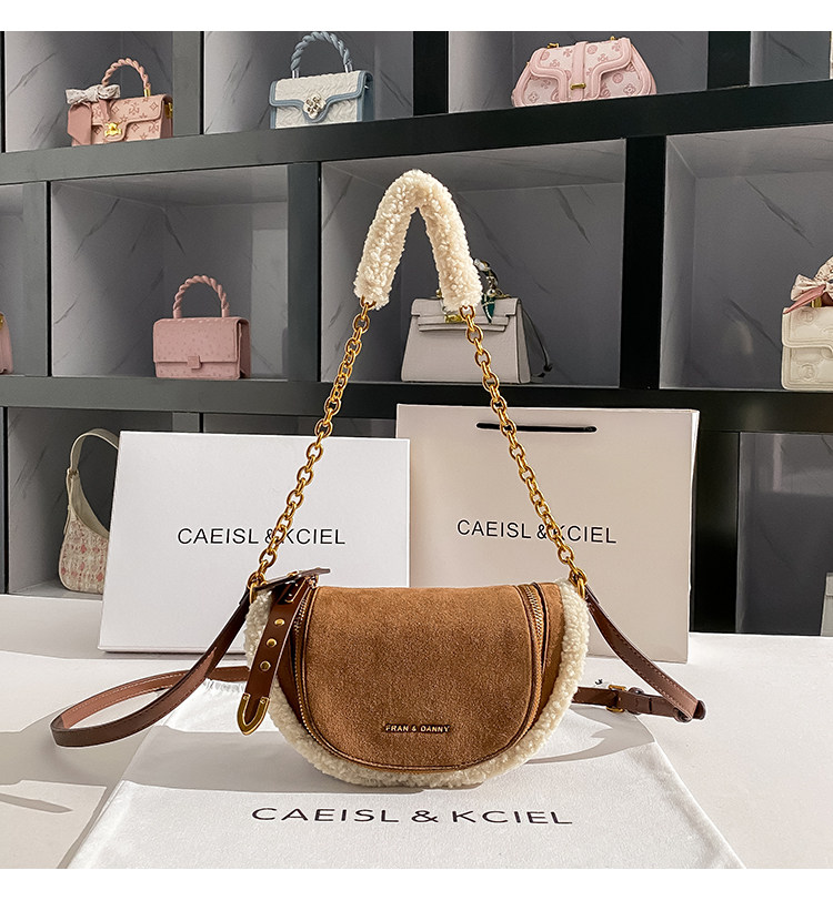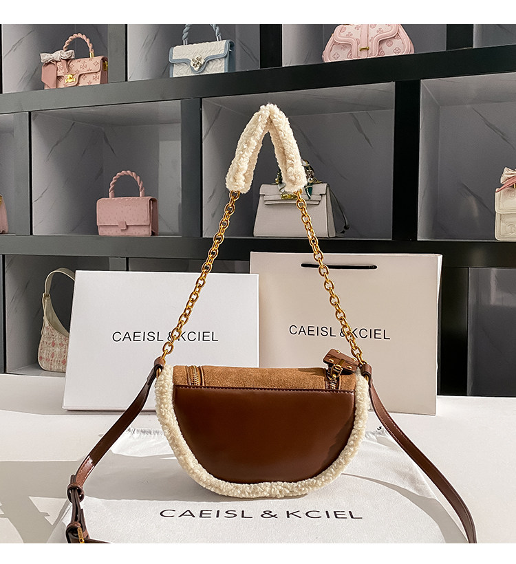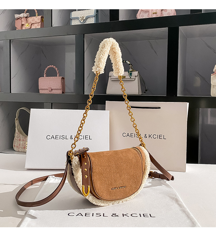 CAEISL&KCIEL女包小衆設計毛絨手提馬鞍包2026新款秋冬單肩斜後後背包