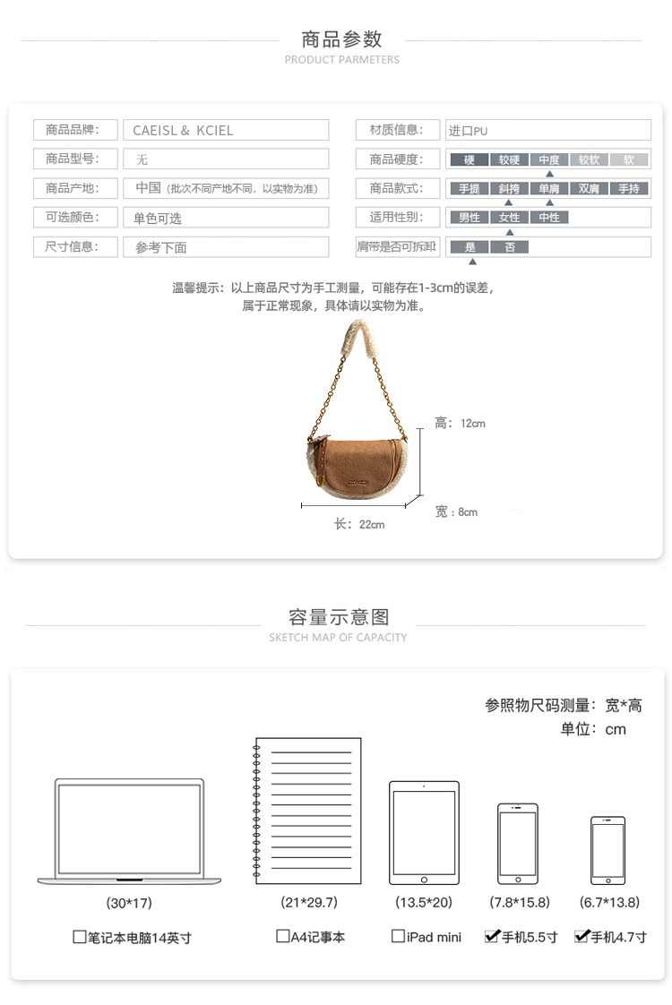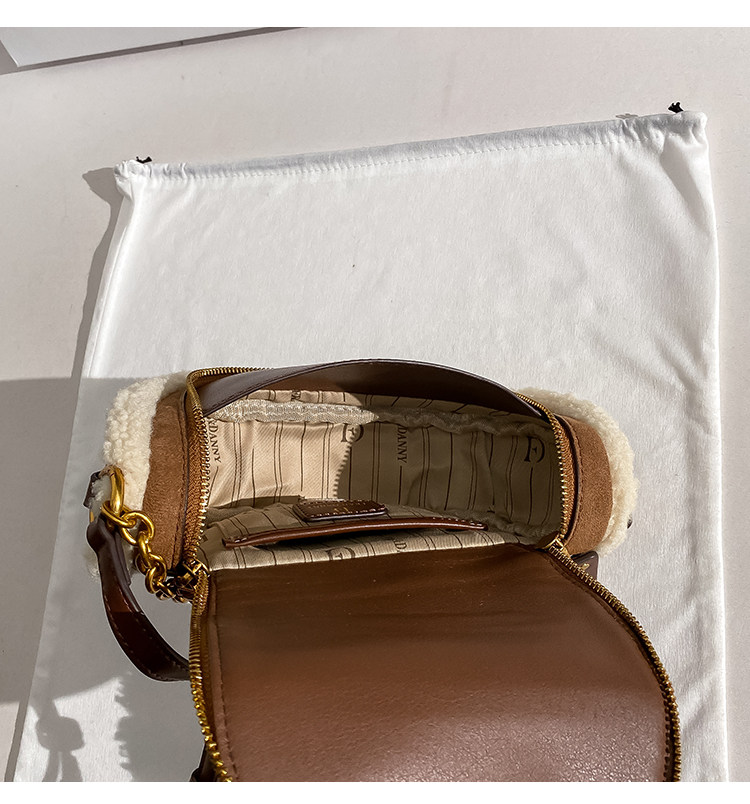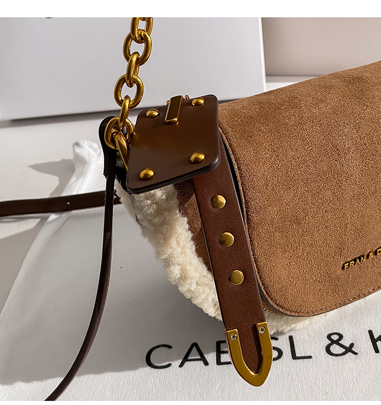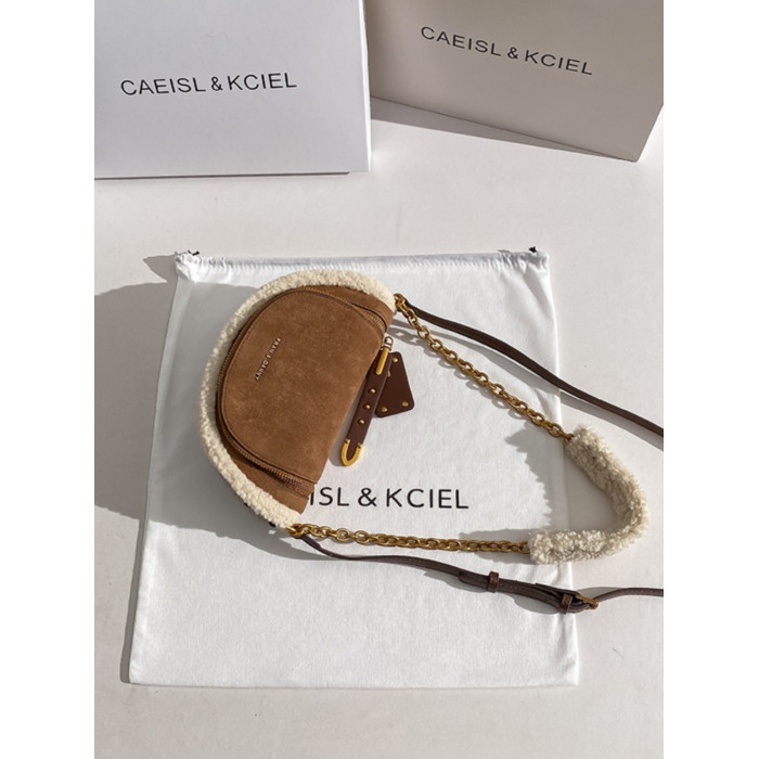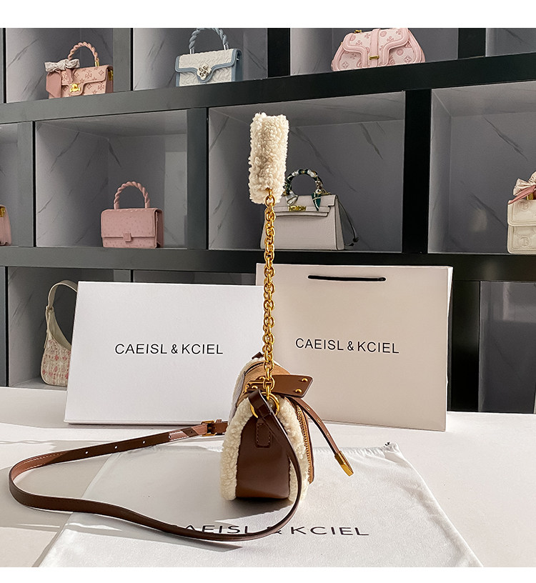 CAEISL&KCIEL女包小衆設計毛絨手提馬鞍包2026新款秋冬單肩斜後後背包