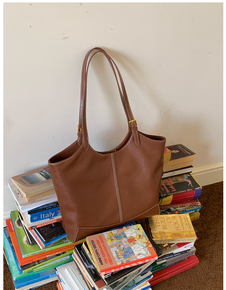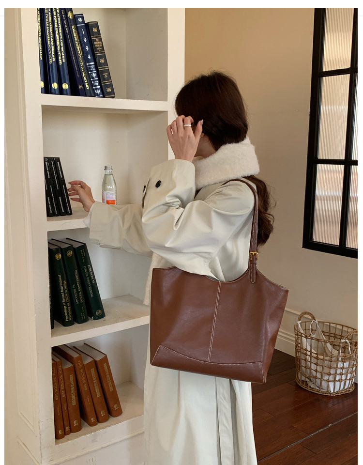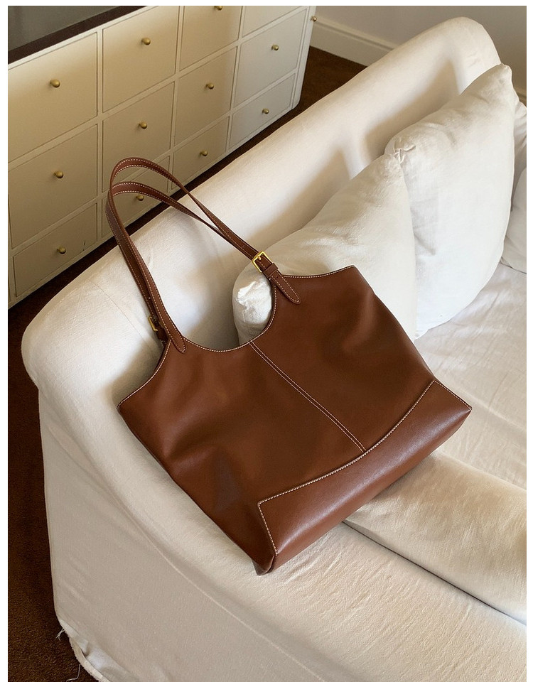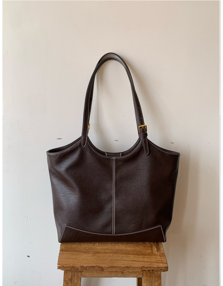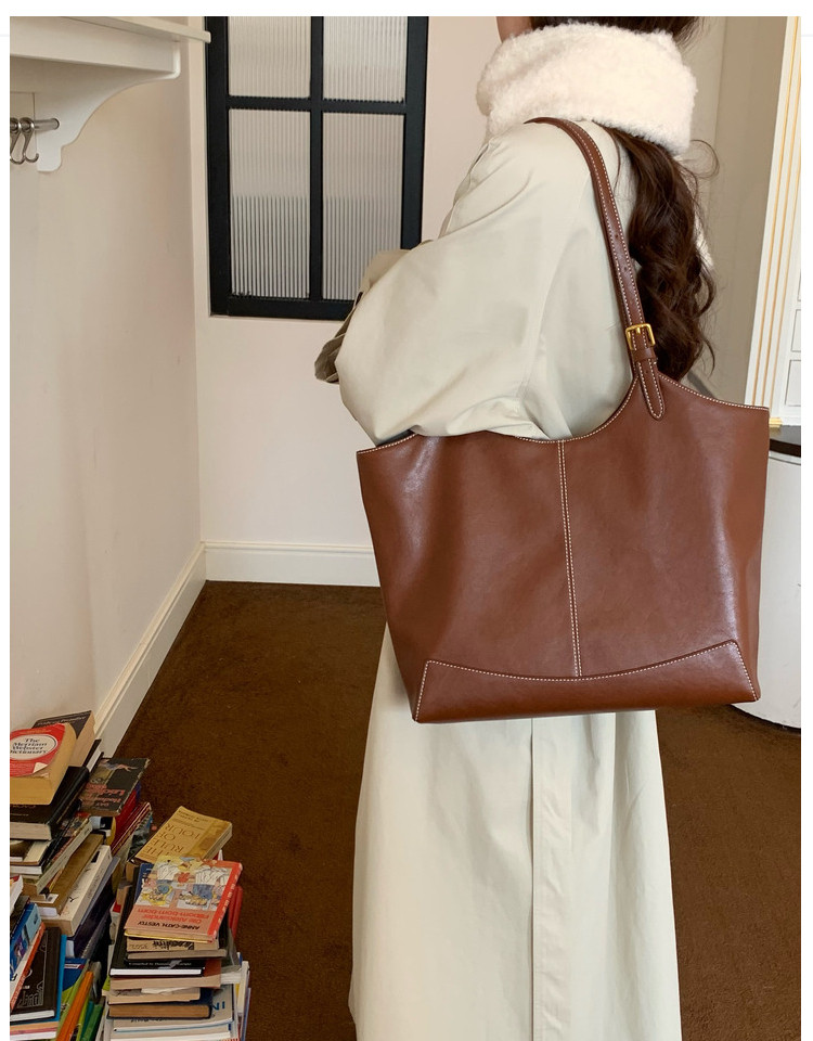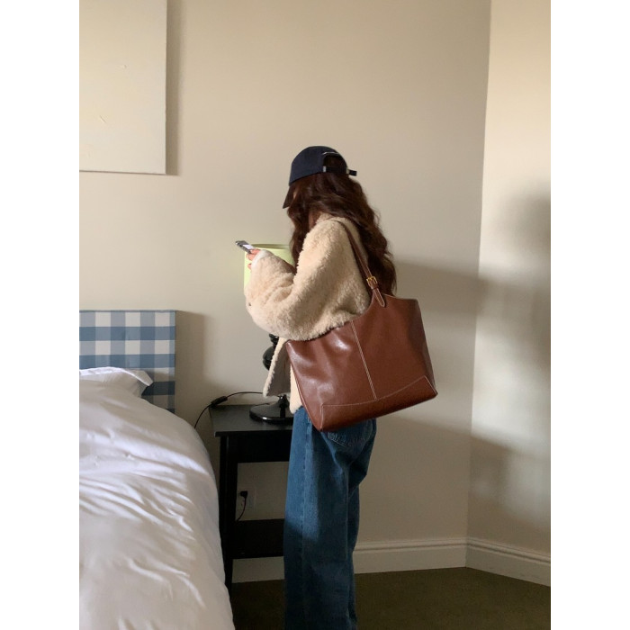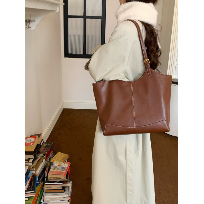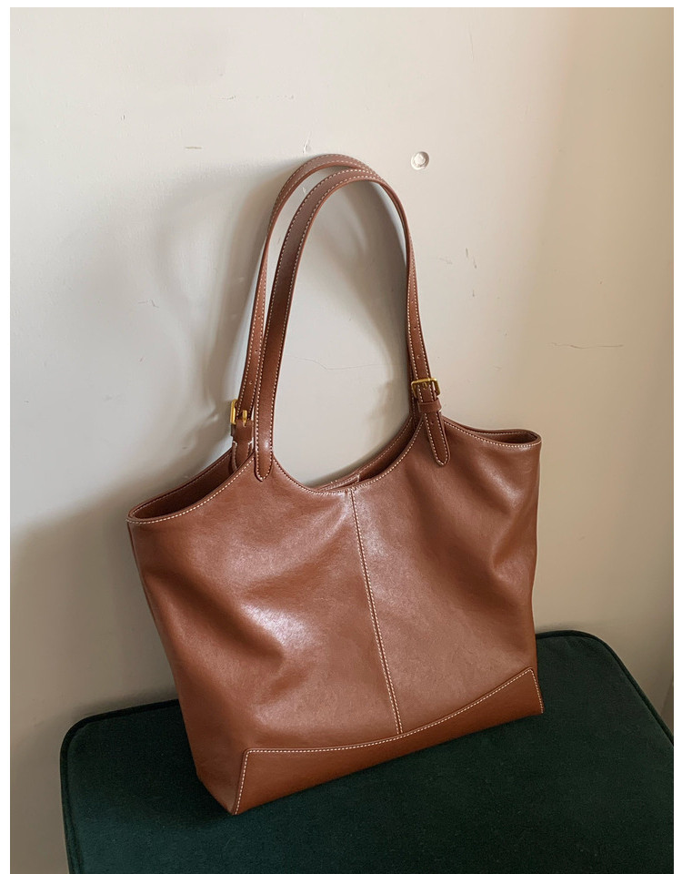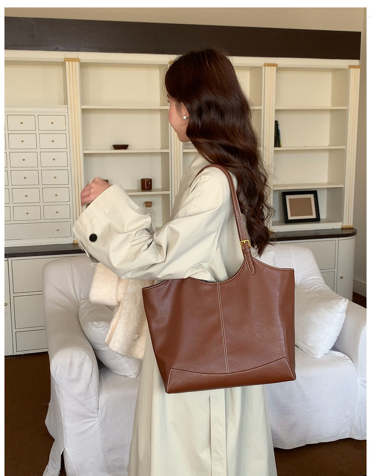 大包包女韓版簡約通勤植鞣單肩包 復古百搭大容量托特包可折曡