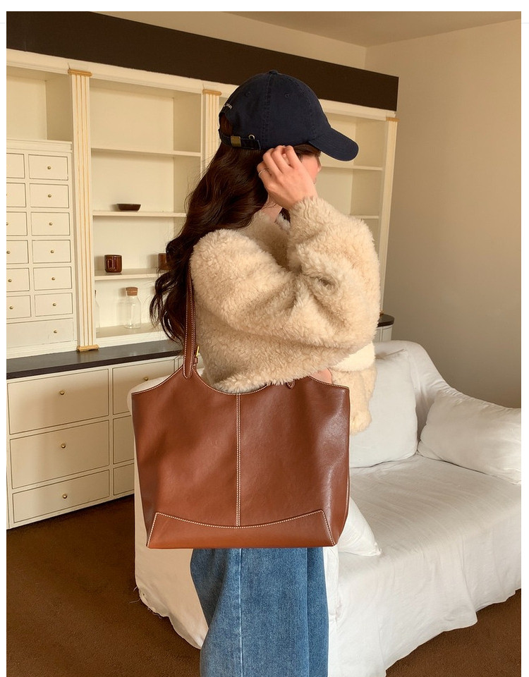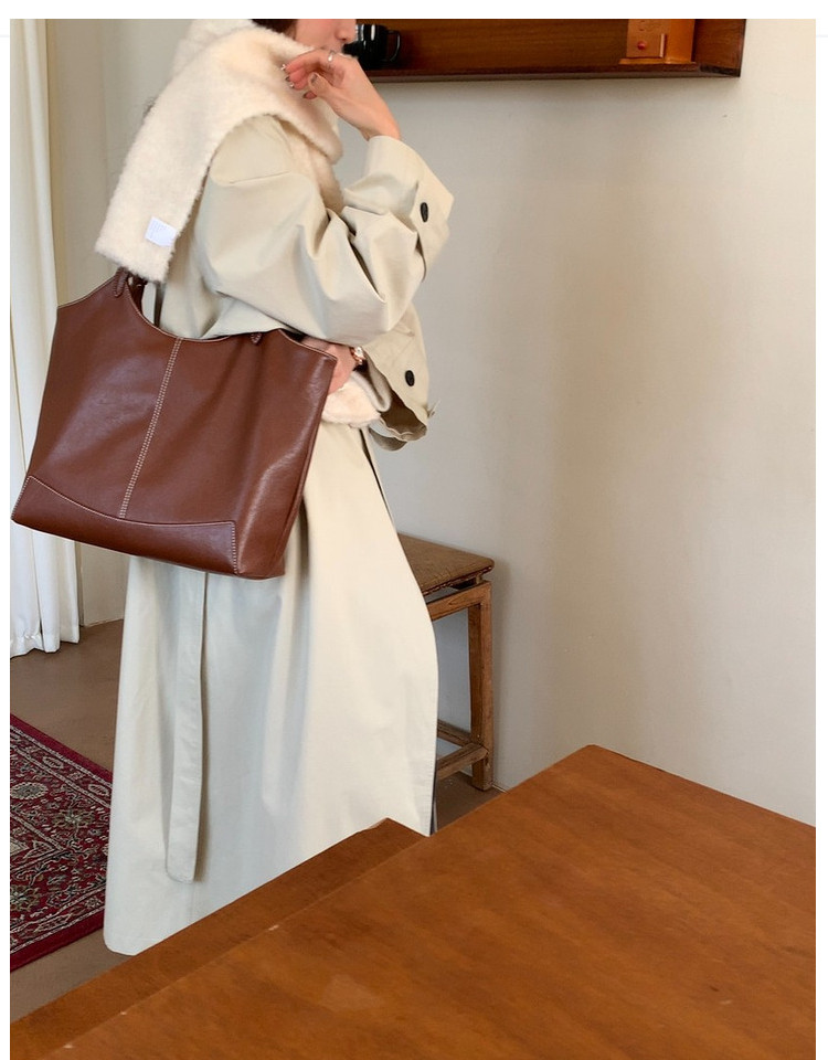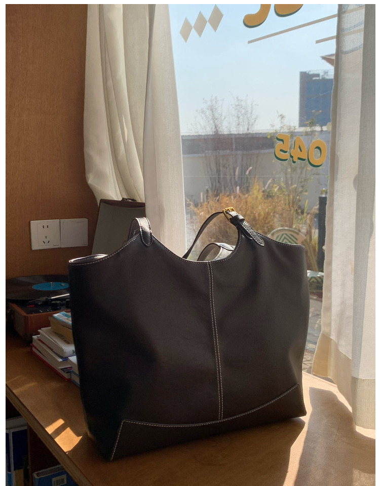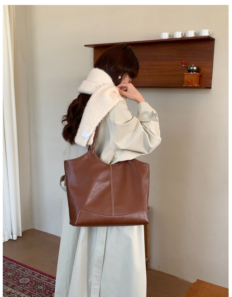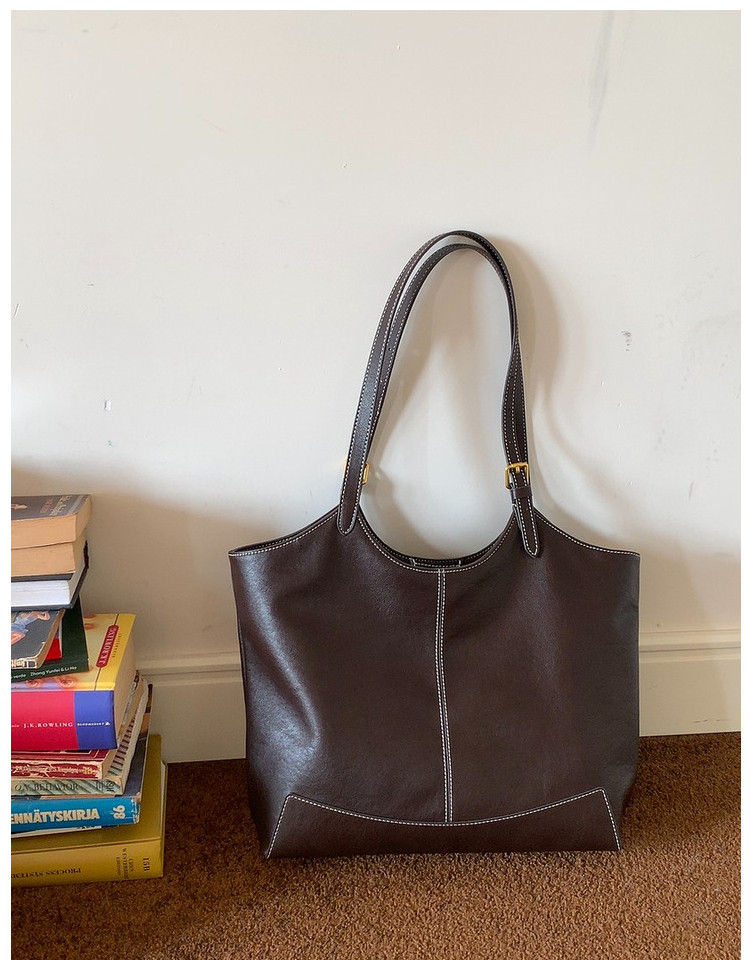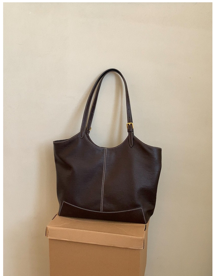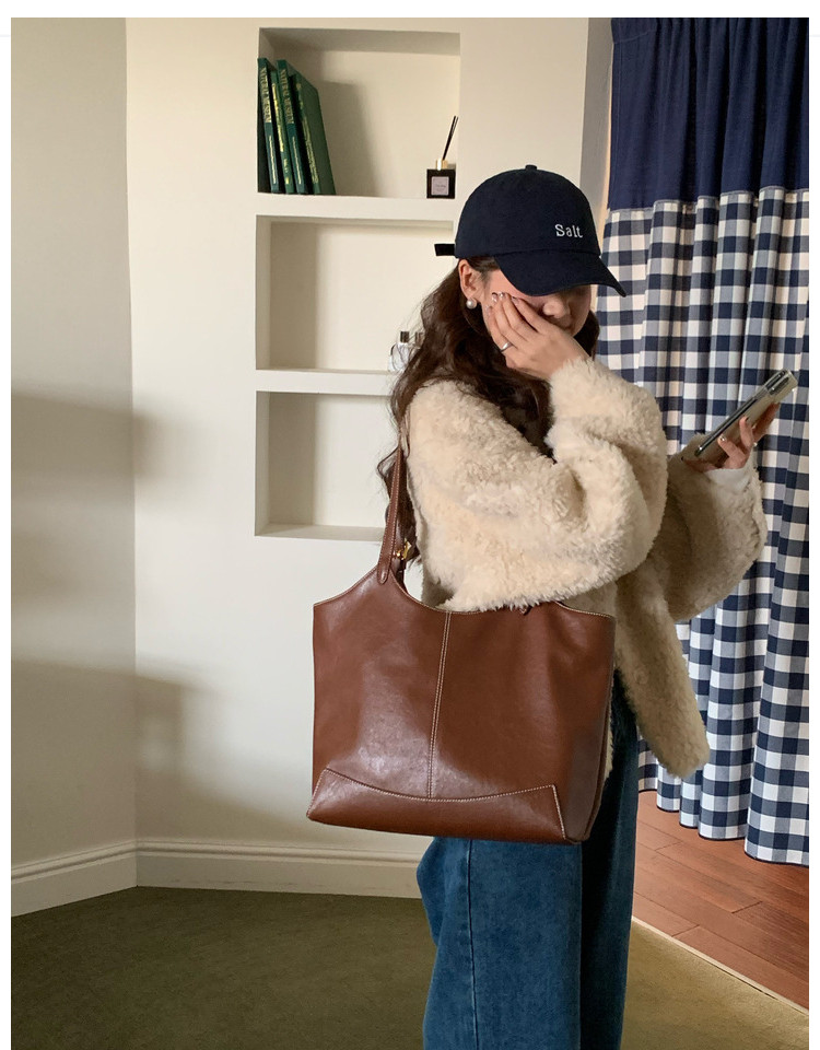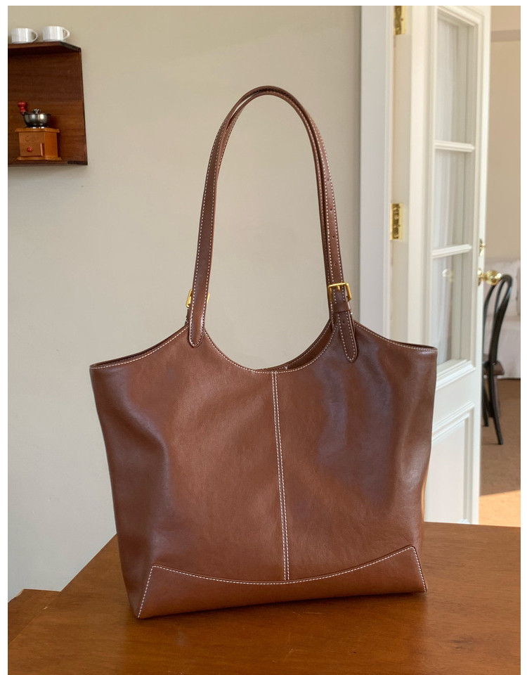 大包包女韓版簡約通勤植鞣單肩包 復古百搭大容量托特包可折曡