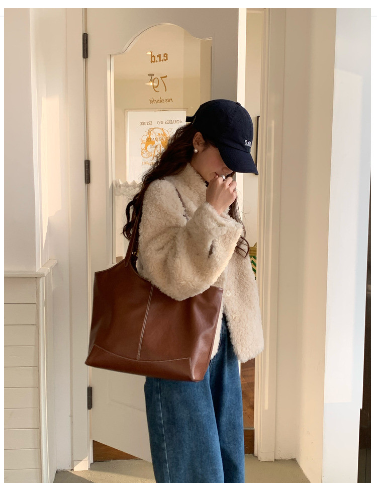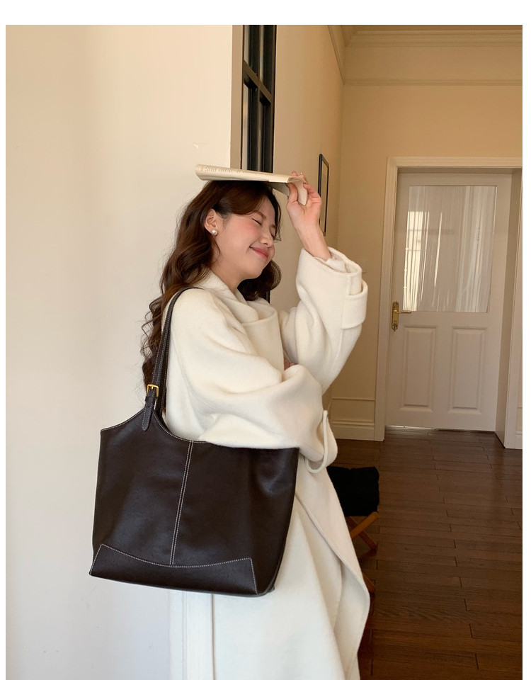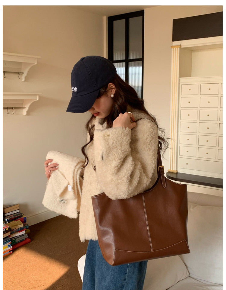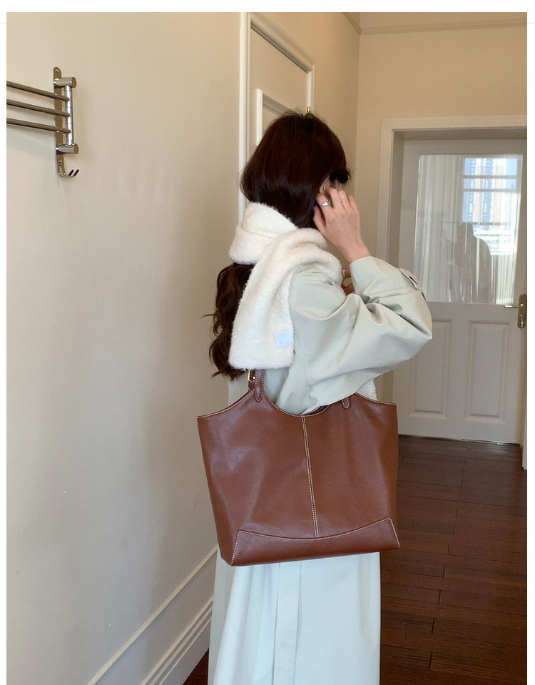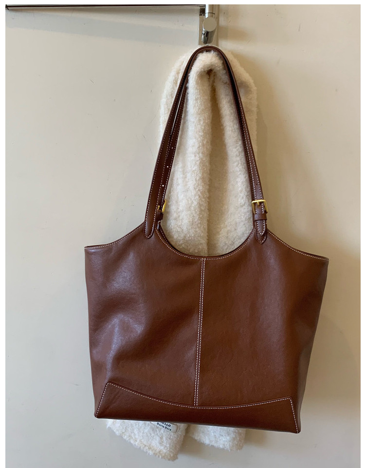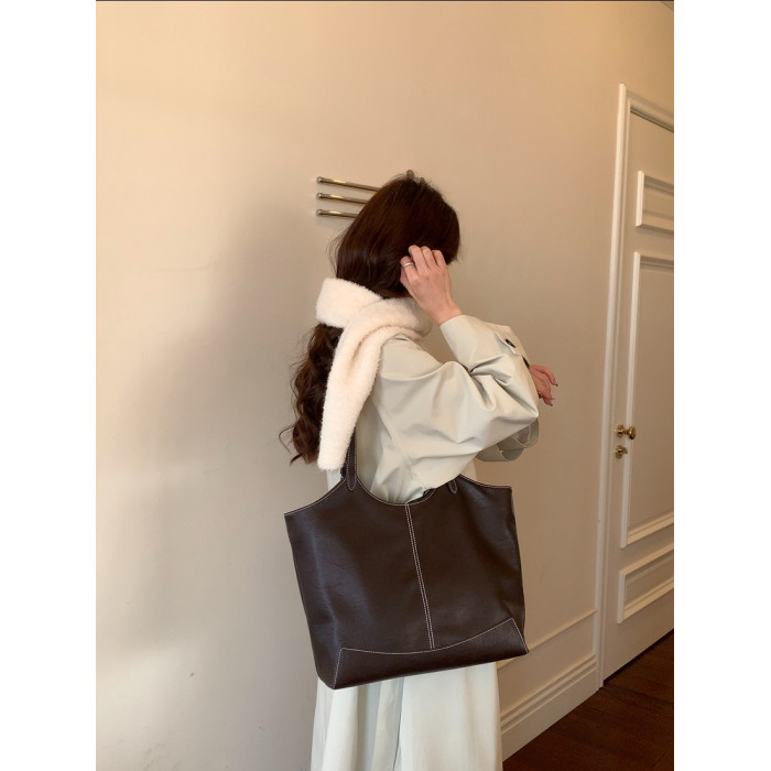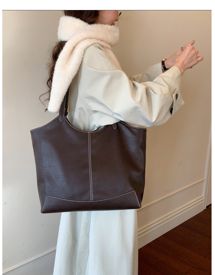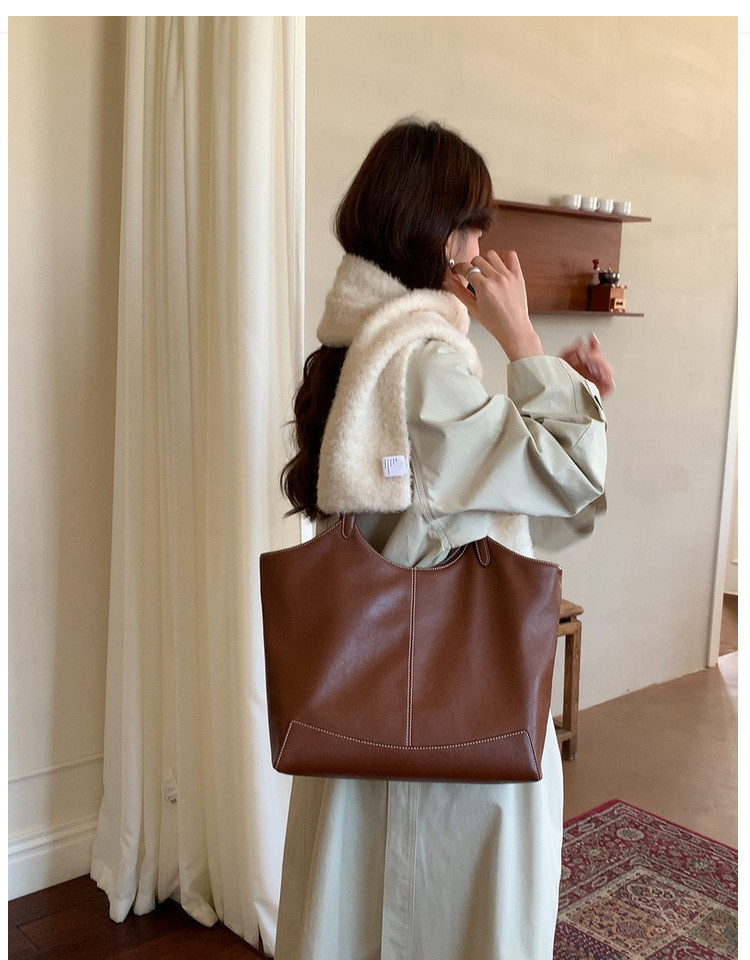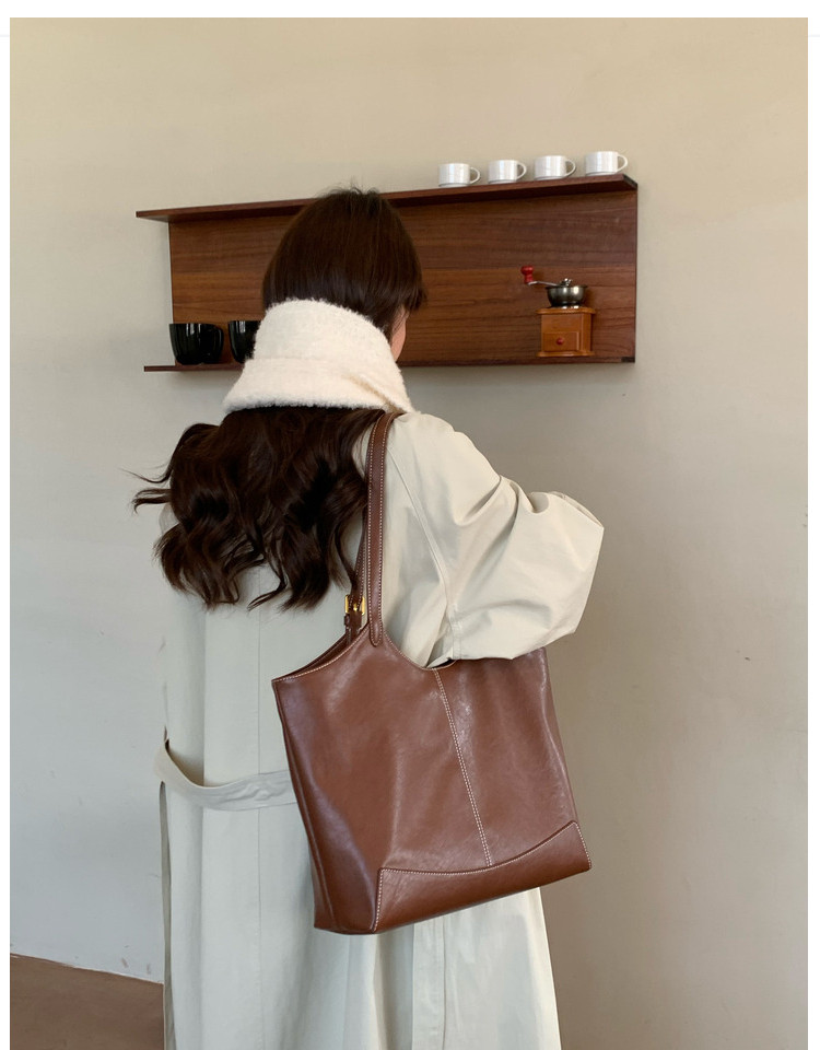 大包包女韓版簡約通勤植鞣單肩包 復古百搭大容量托特包可折曡