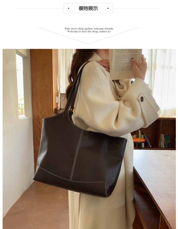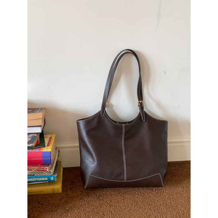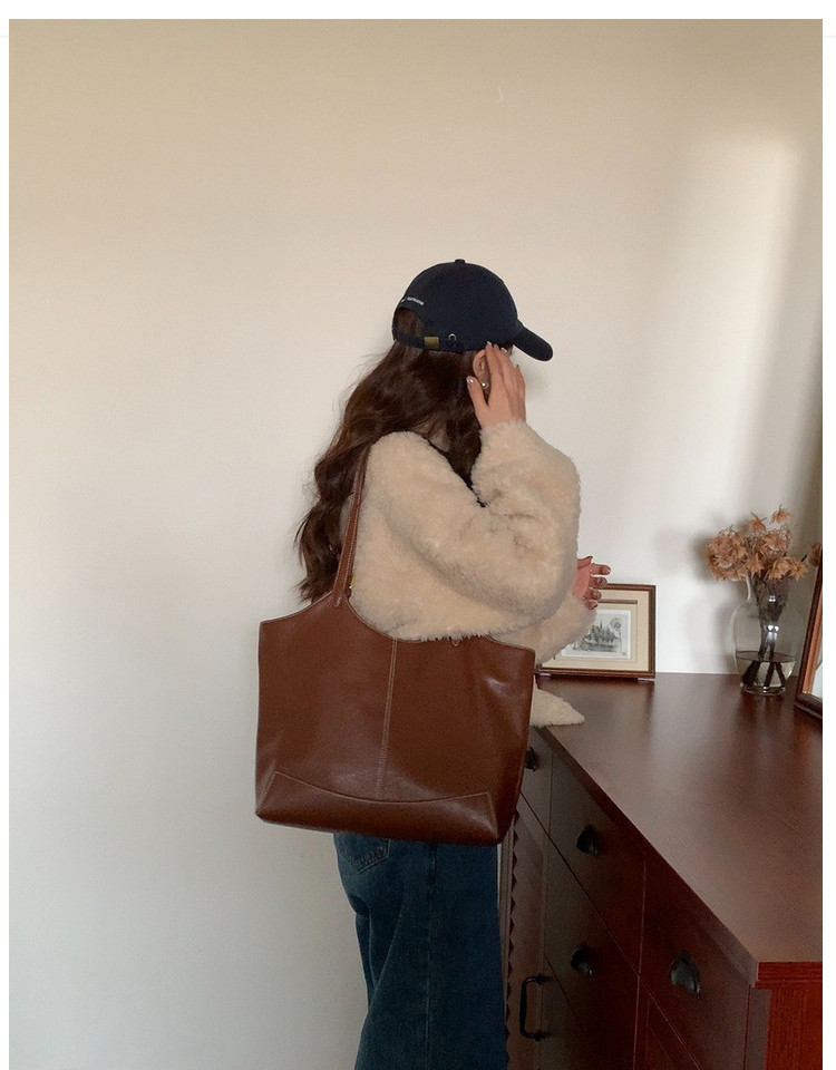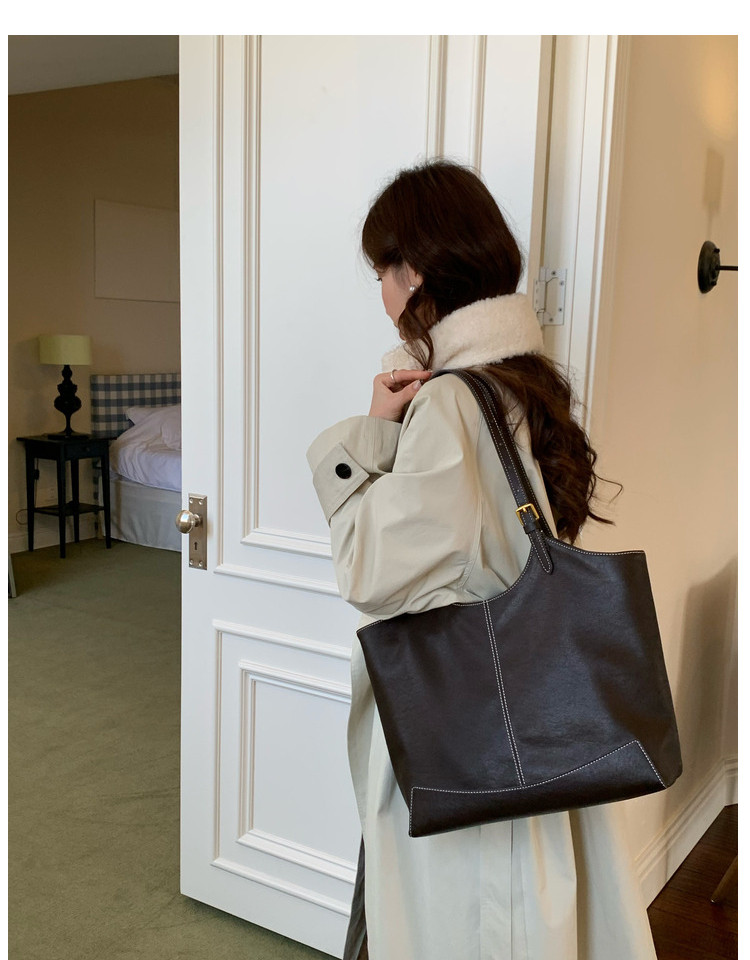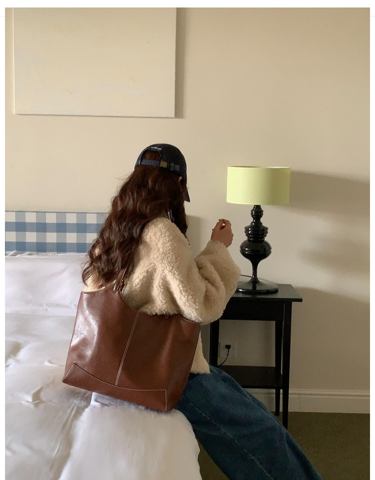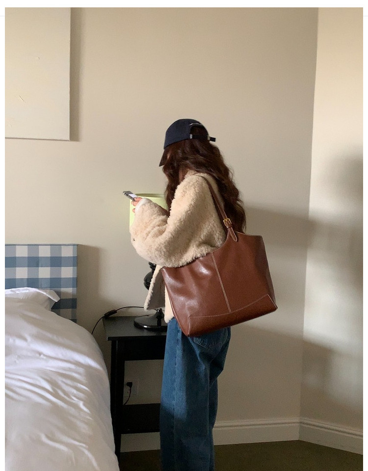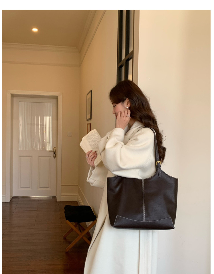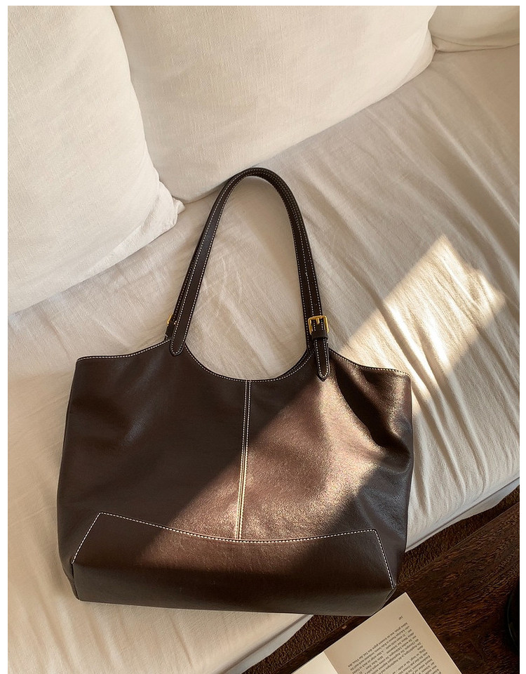 大包包女韓版簡約通勤植鞣單肩包 復古百搭大容量托特包可折曡
