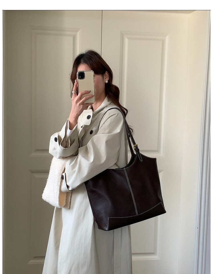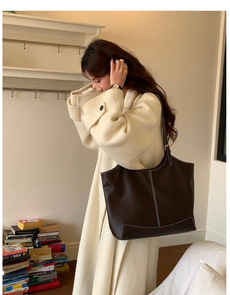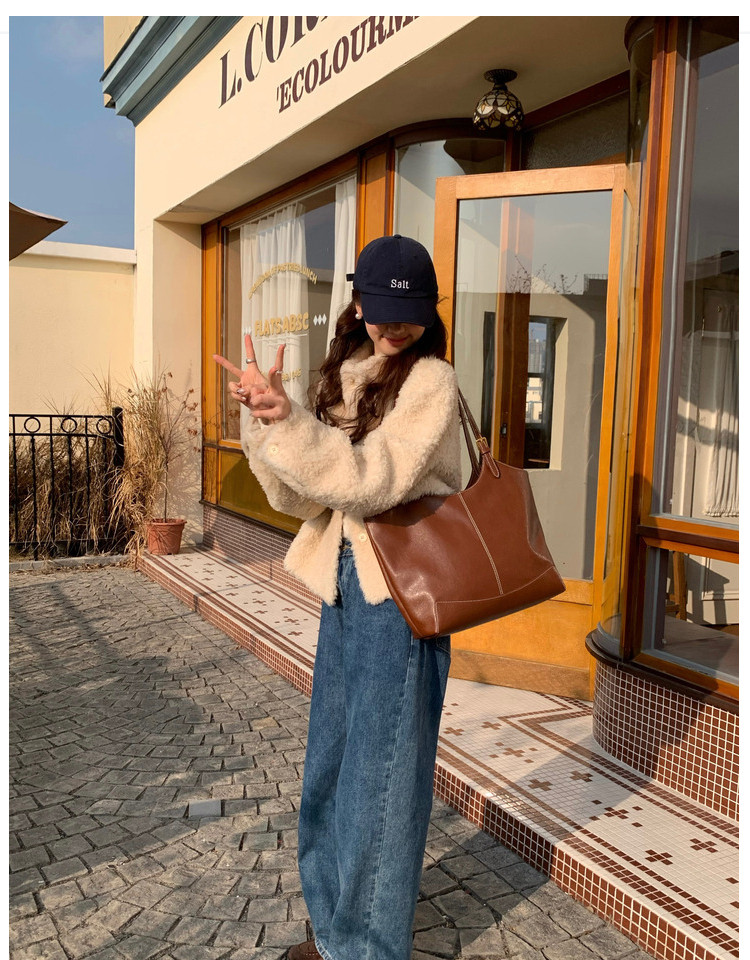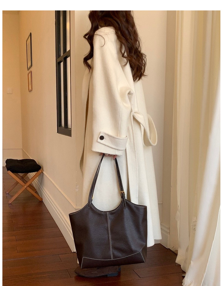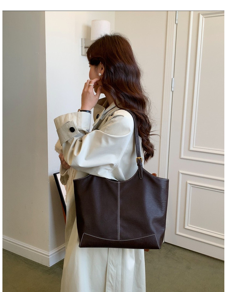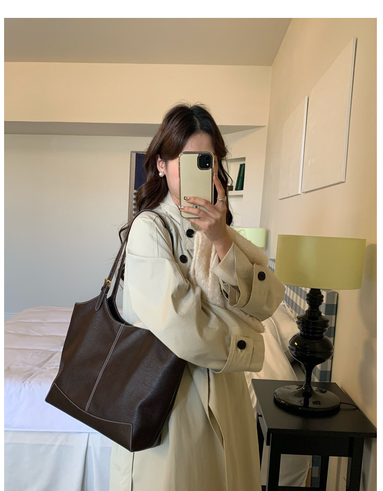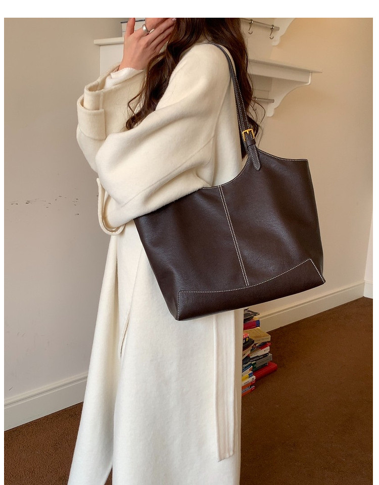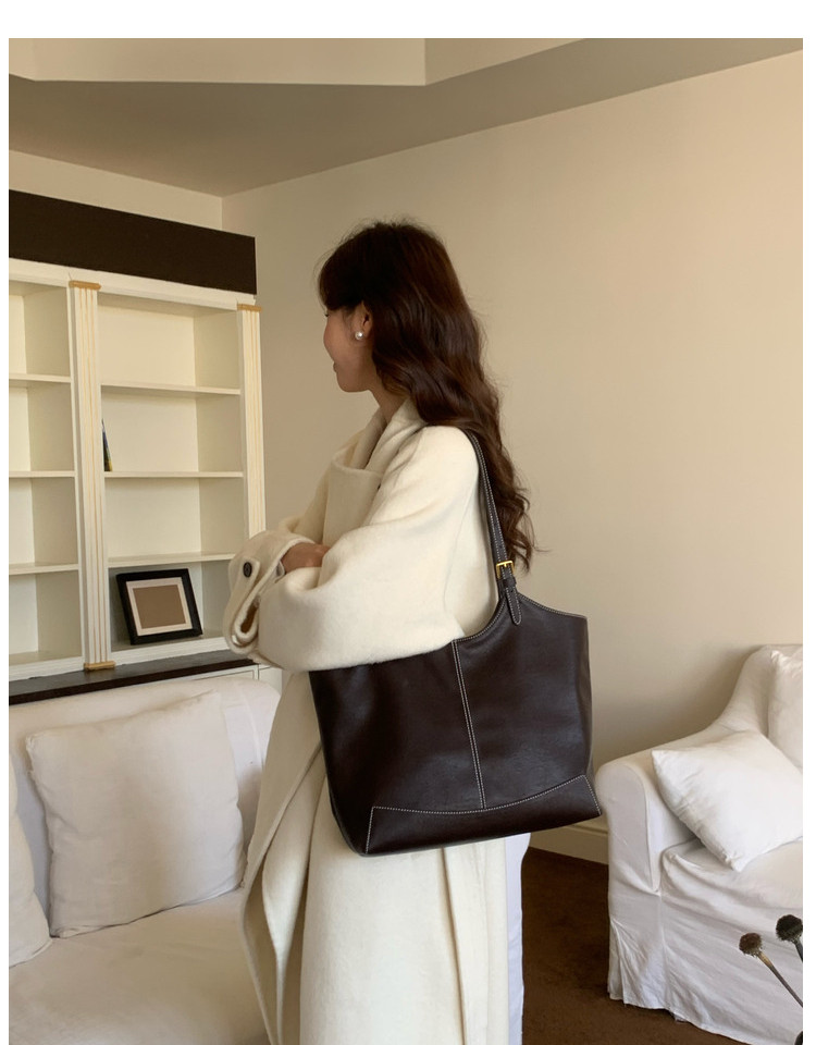 大包包女韓版簡約通勤植鞣單肩包 復古百搭大容量托特包可折曡