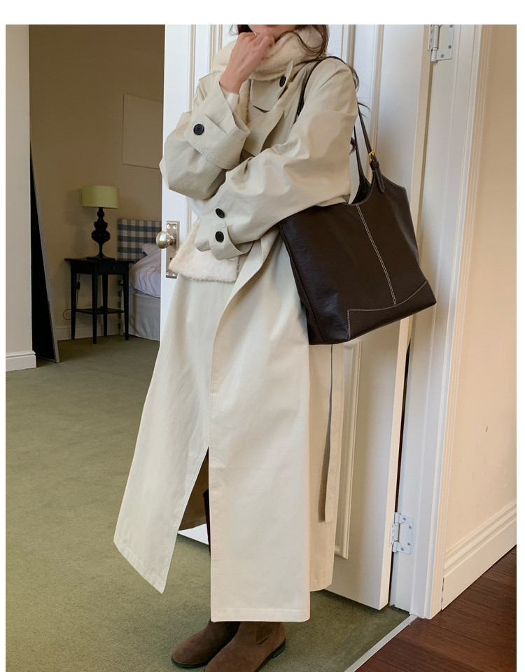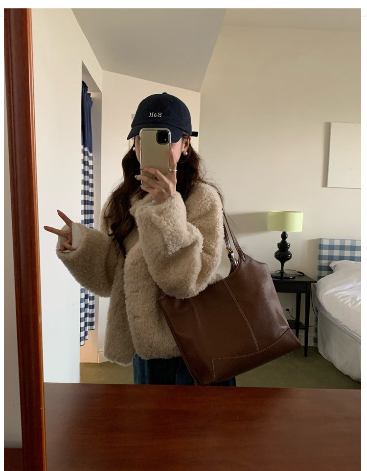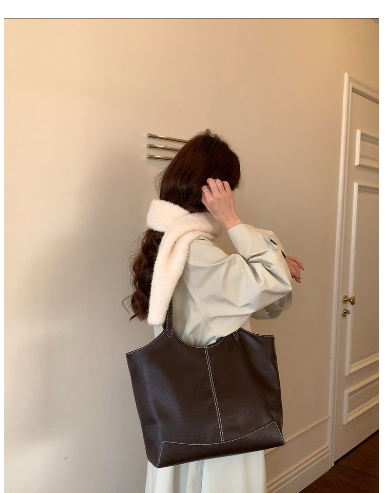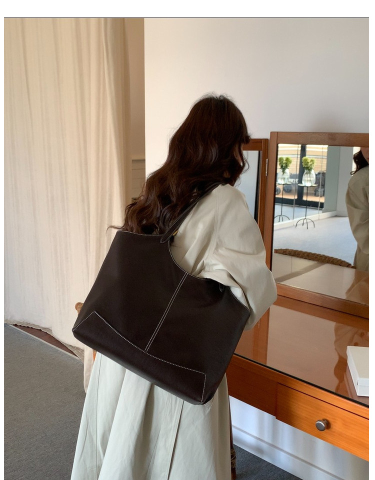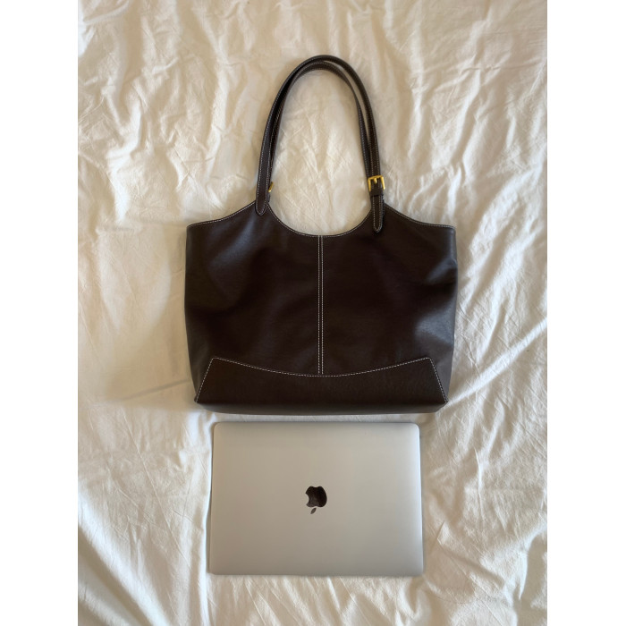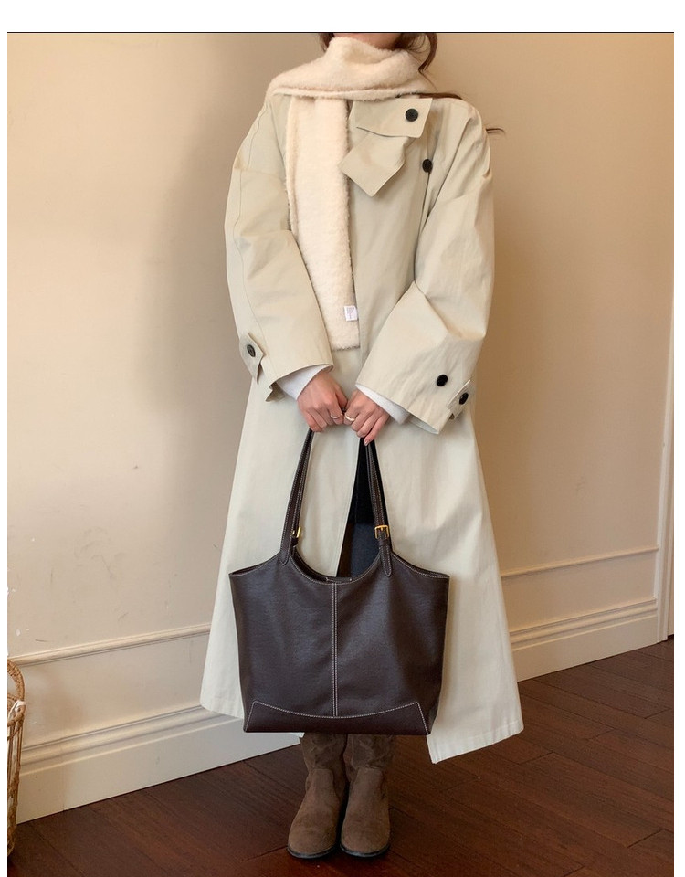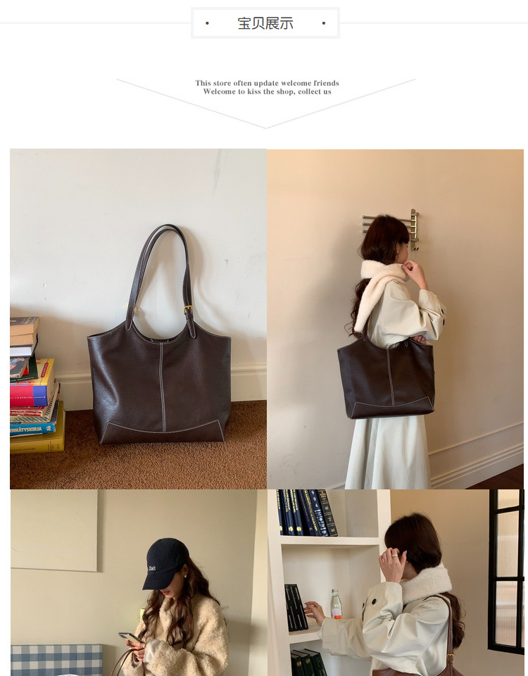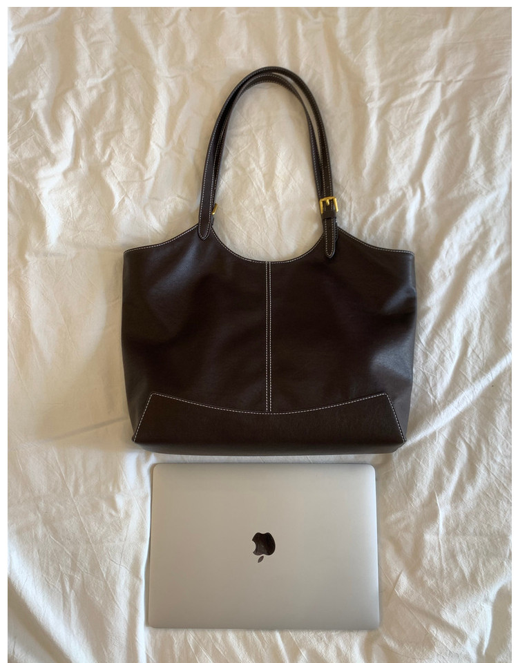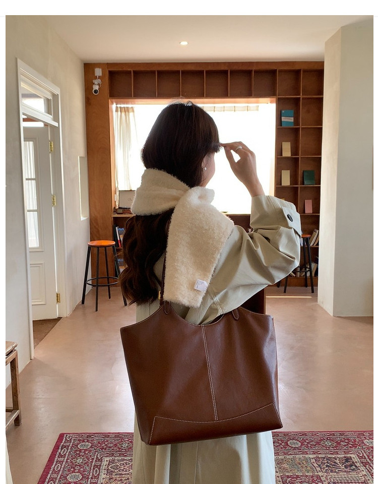大包包女韓版簡約通勤植鞣單肩包 復古百搭大容量托特包可折曡