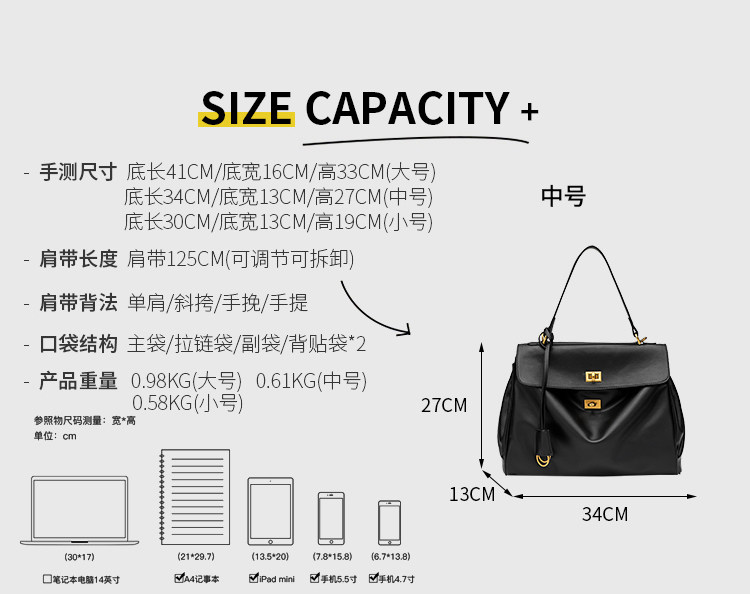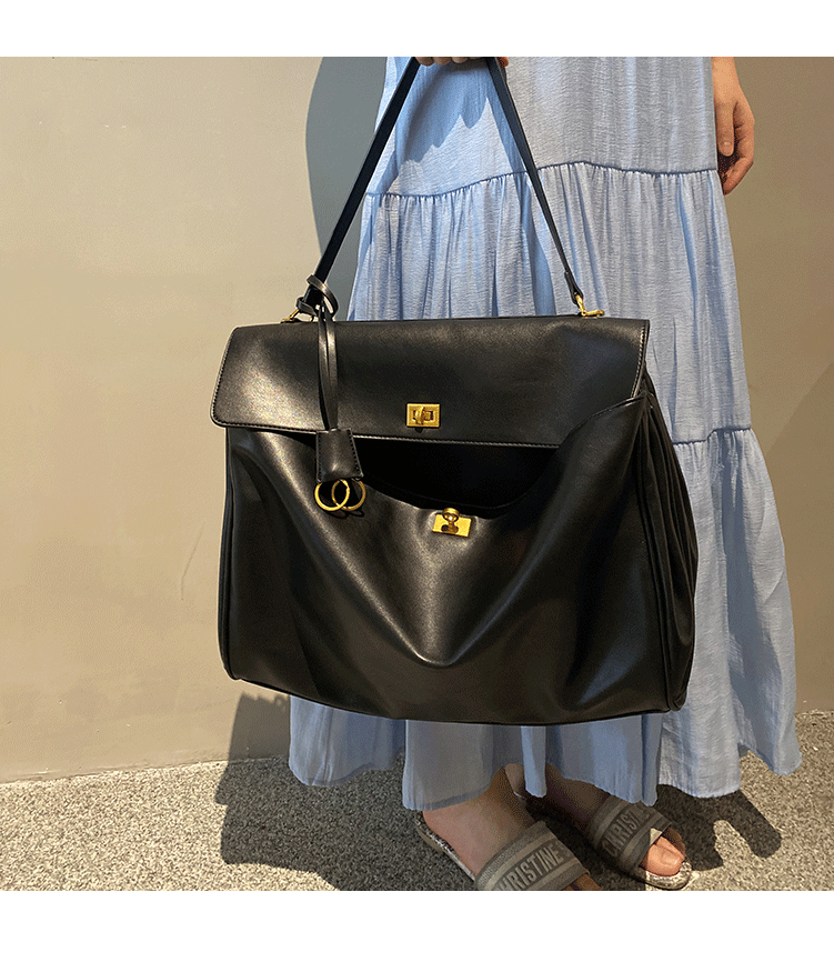 真皮托特包鎖釦腋下包2026新款單肩斜後後背包休閒通勤牛皮凱莉女包