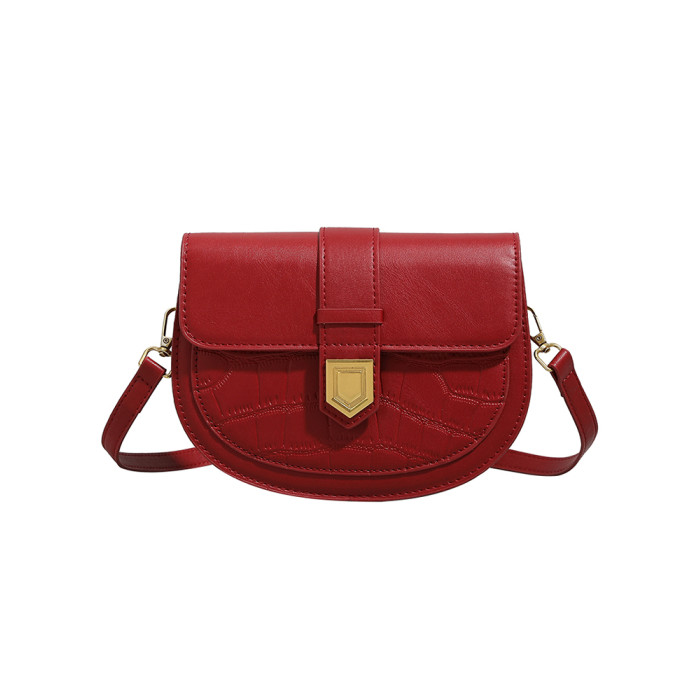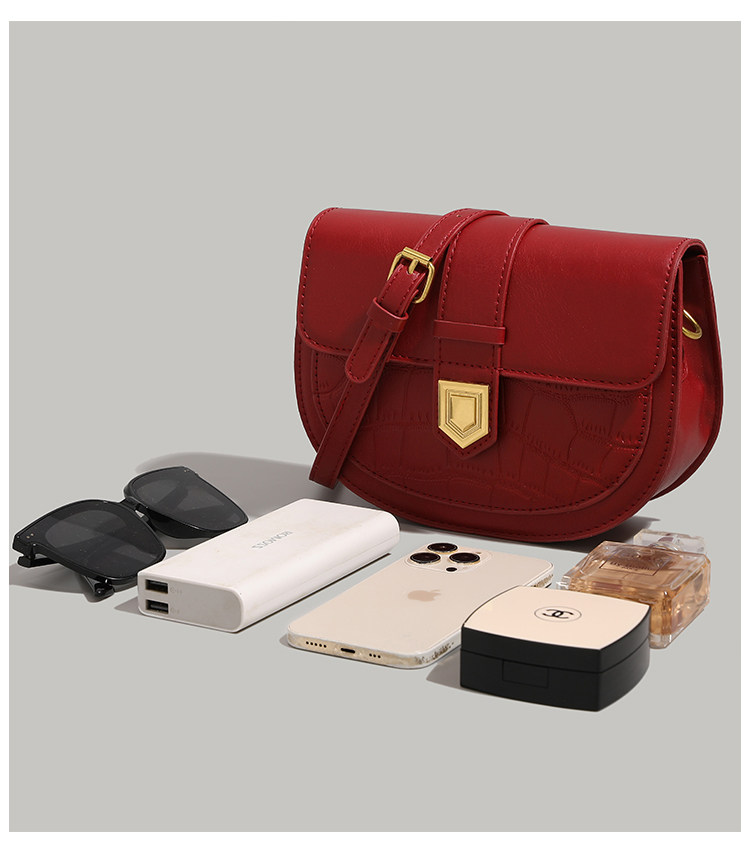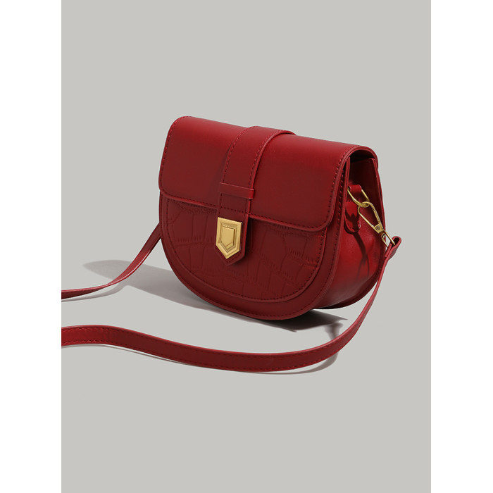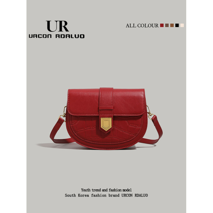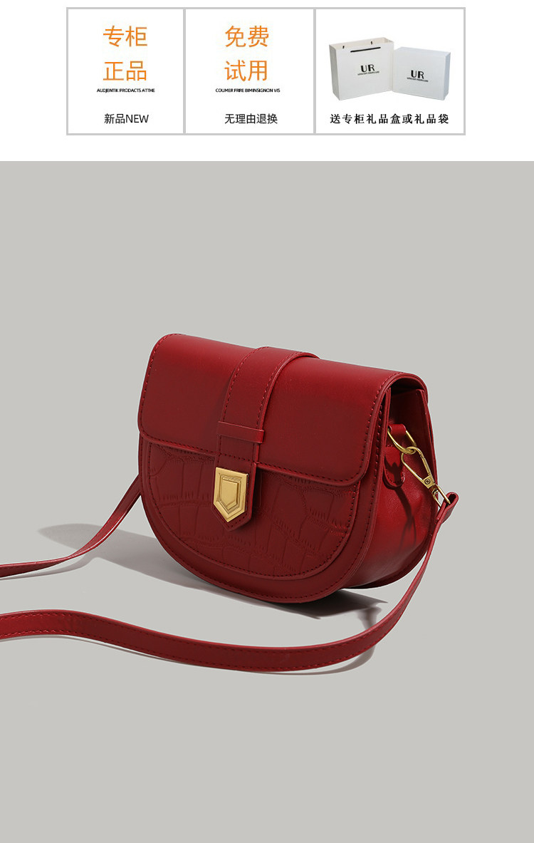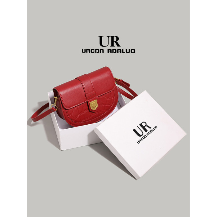 UR鱷魚紋質感馬鞍包女2025新款高級感新娘婚包時尚百搭單肩斜後後背包