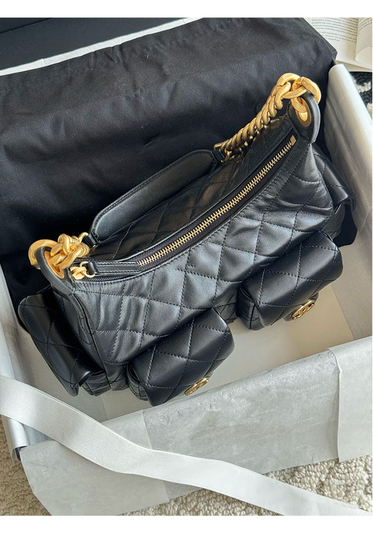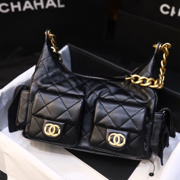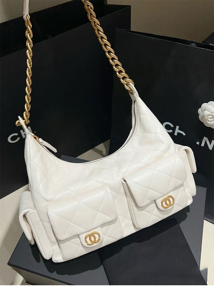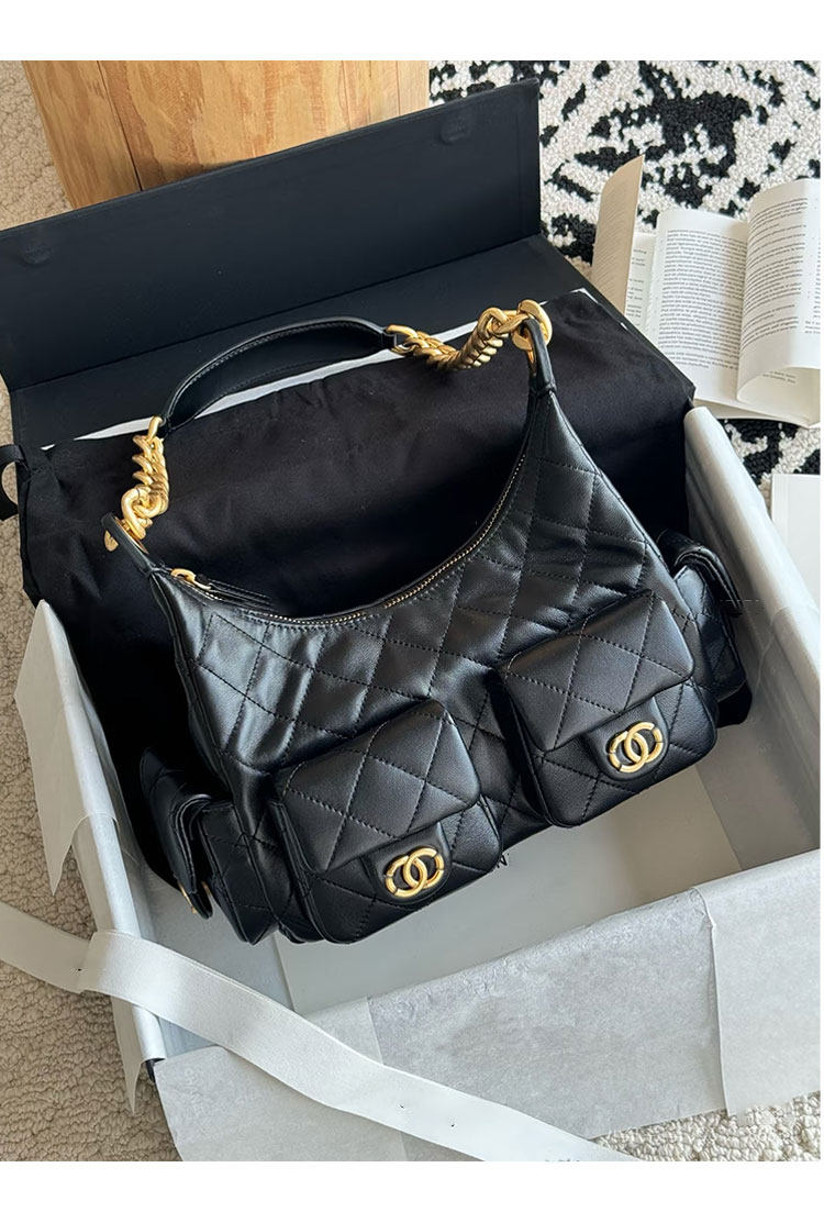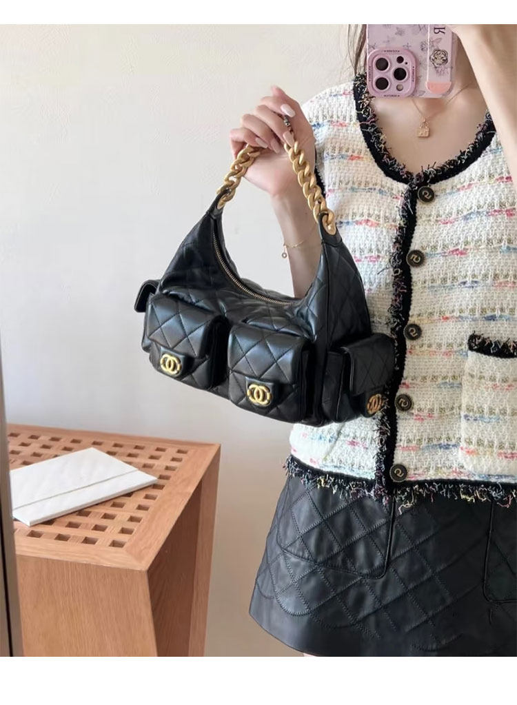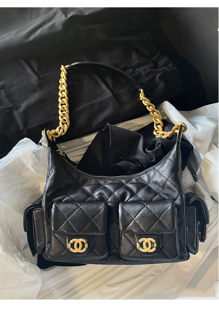 Jennie同款小香風25C嬉皮包hobo腋下包菱格鏈條流浪包單肩托特包