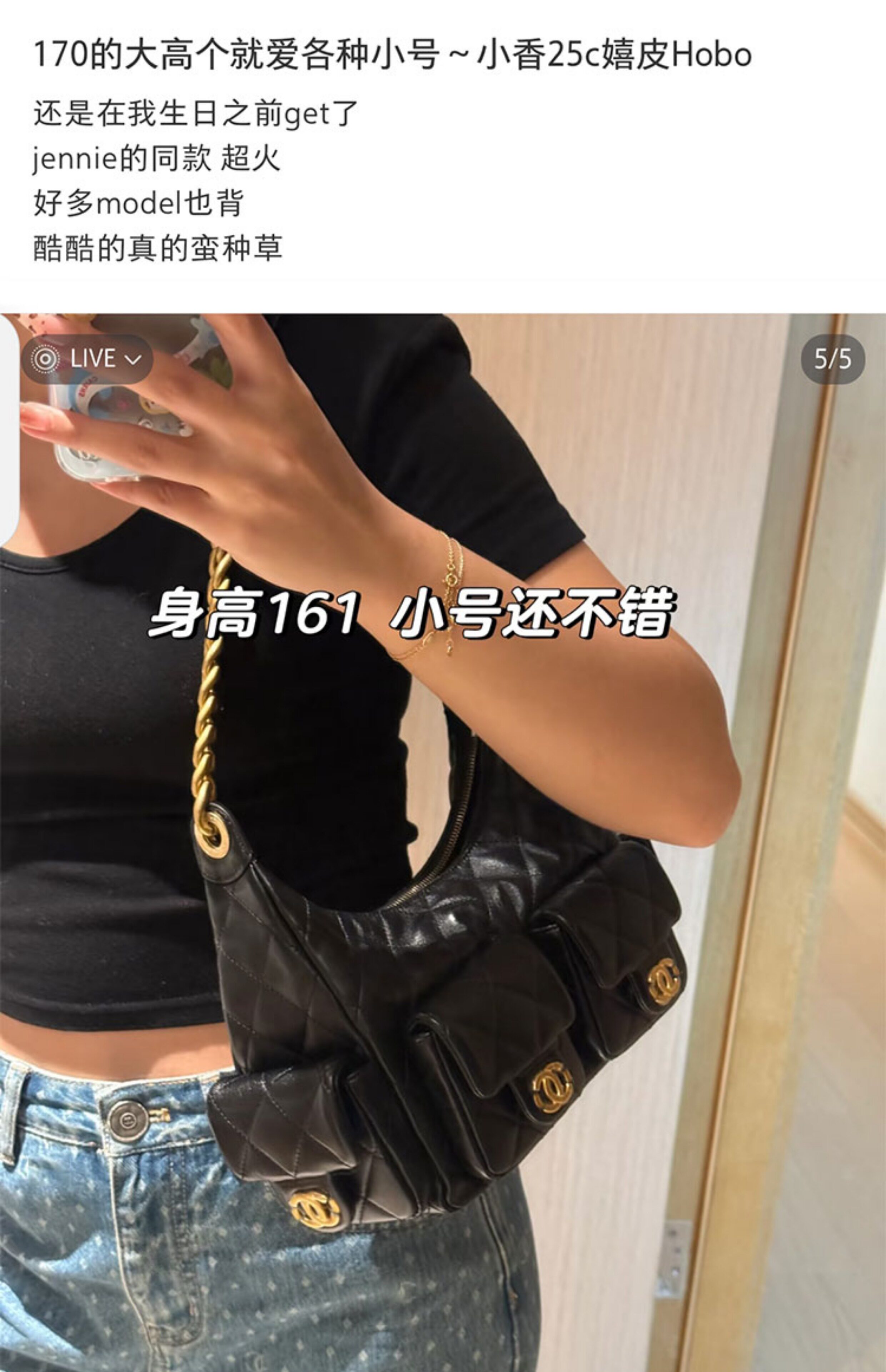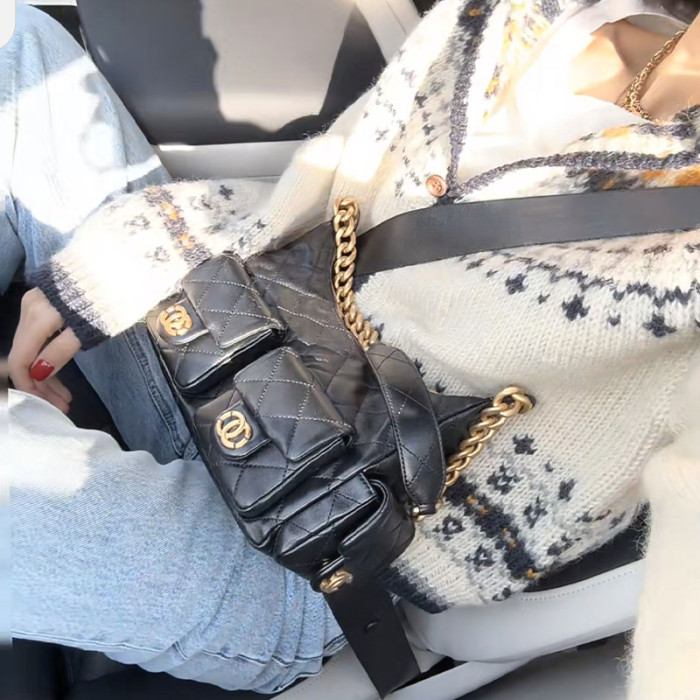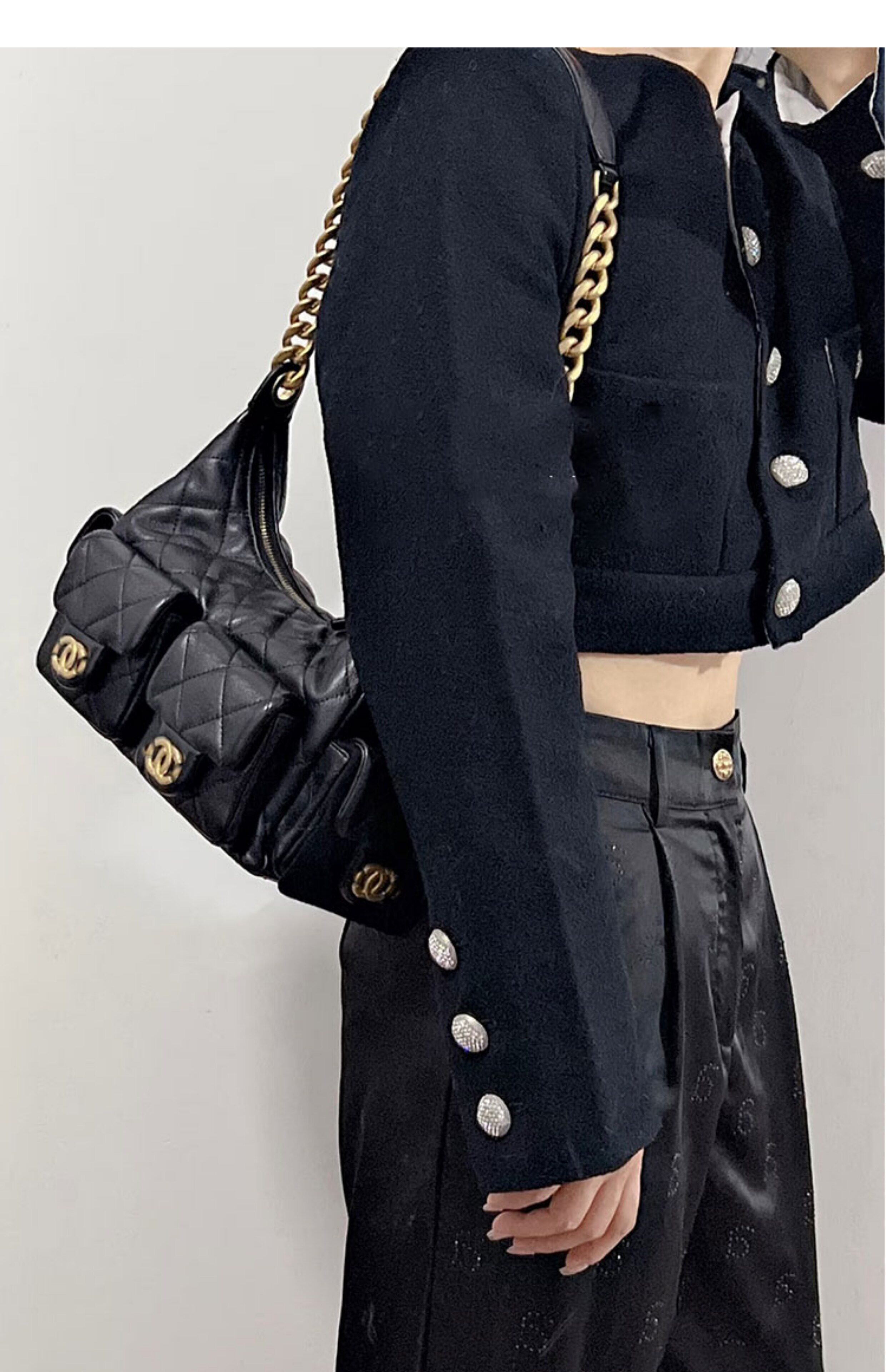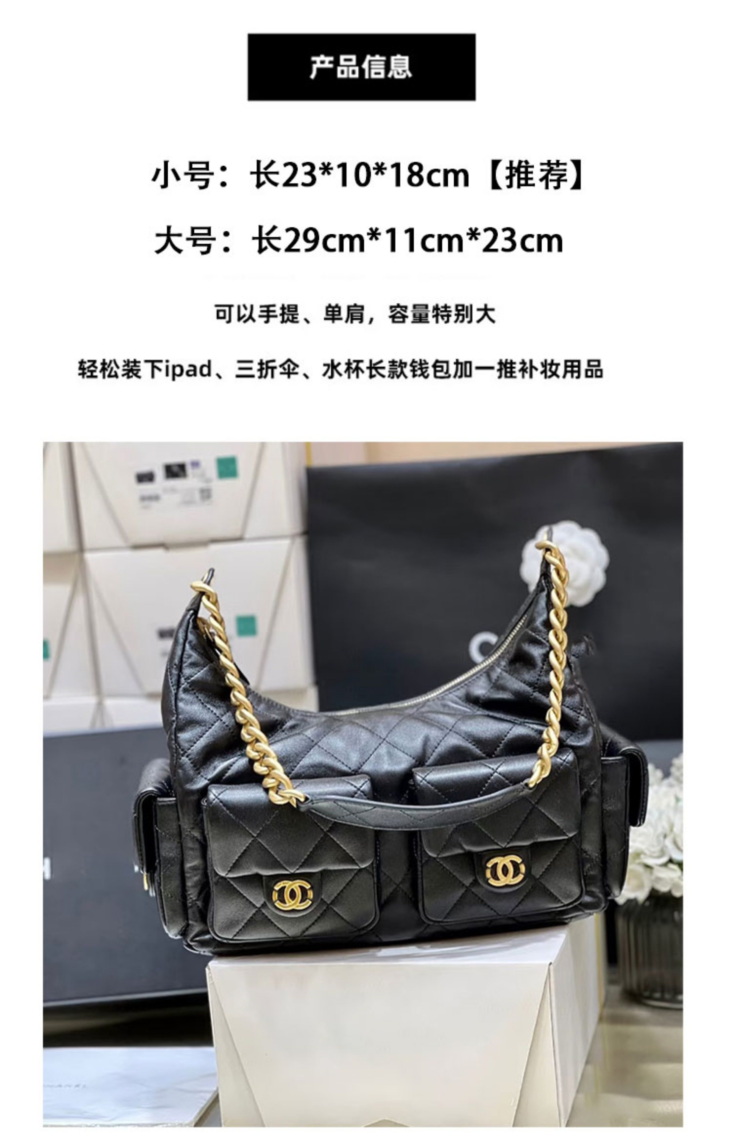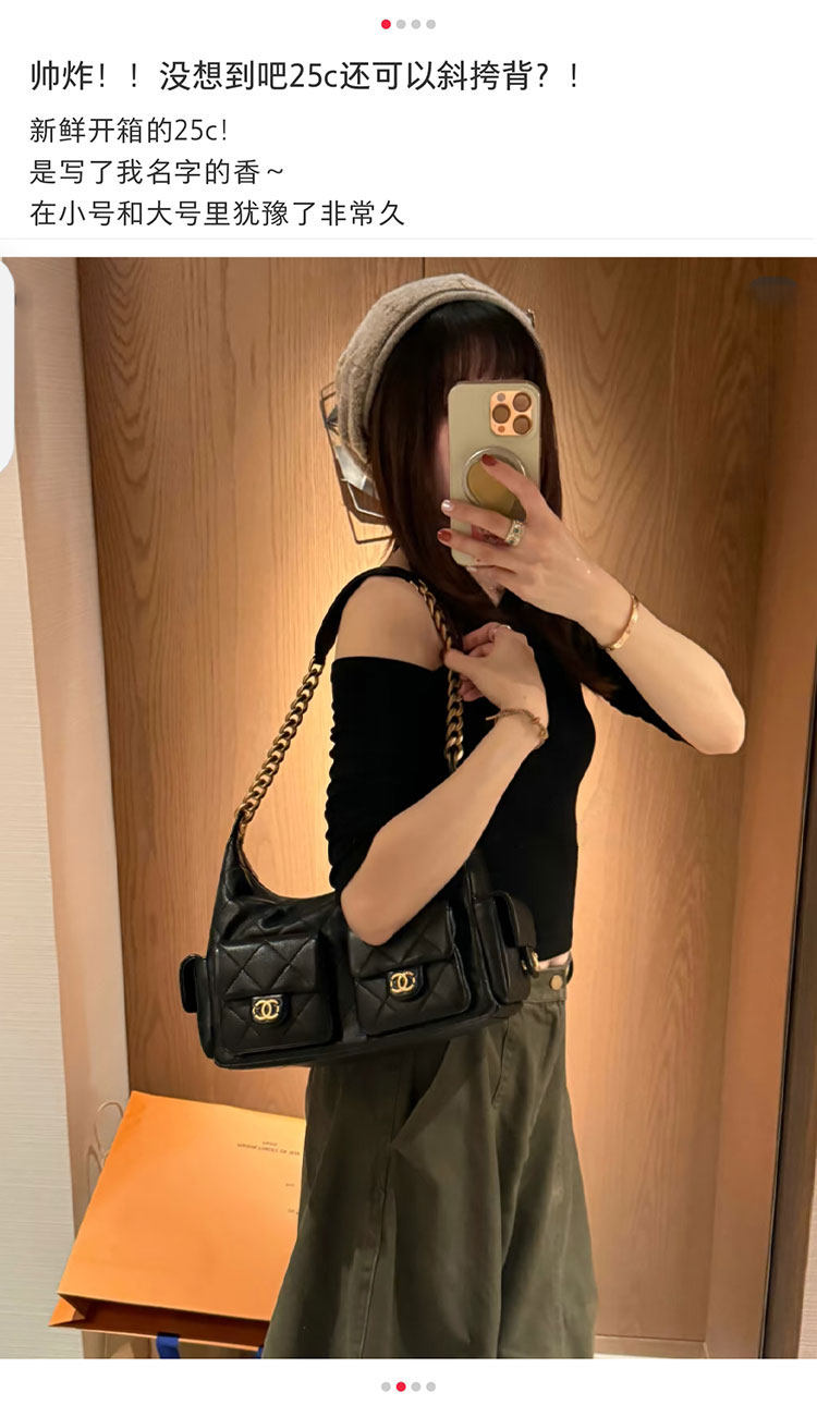 Jennie同款小香風25C嬉皮包hobo腋下包菱格鏈條流浪包單肩托特包
