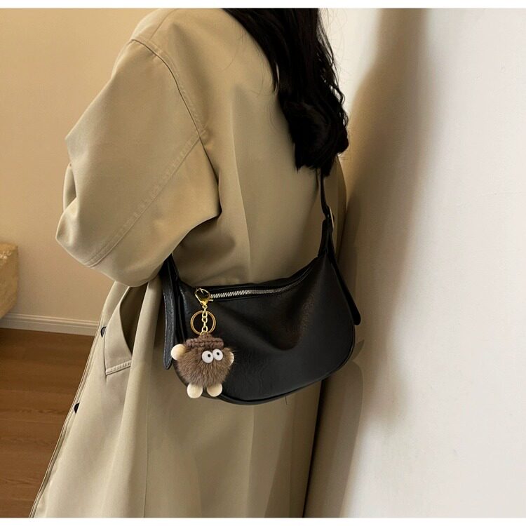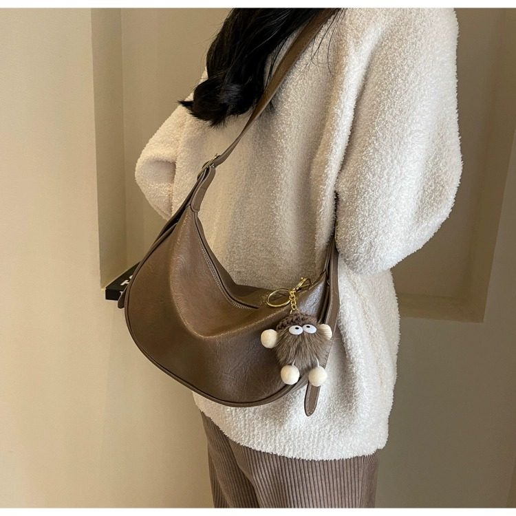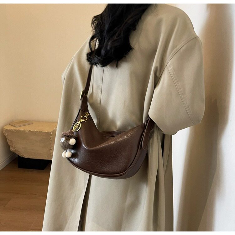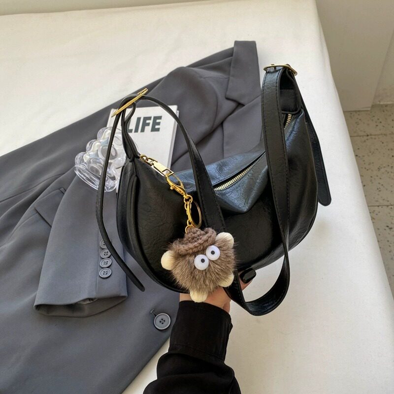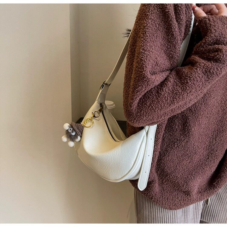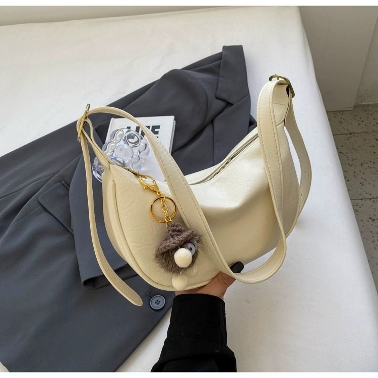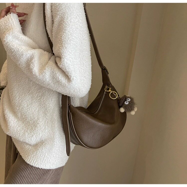 時尚軟皮包包女2026新款休閒斜後後背包夏季百搭餃子包簡約休閒單肩包