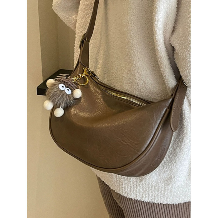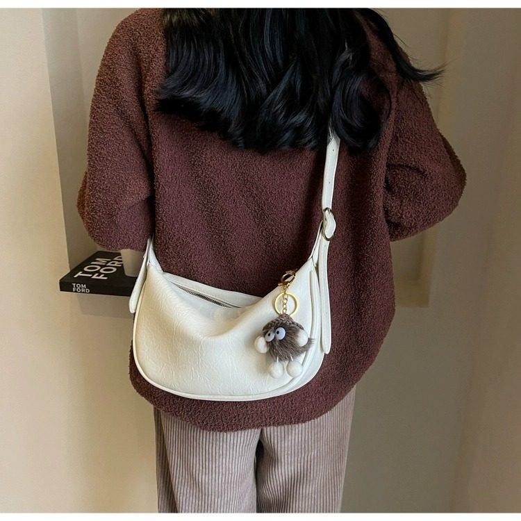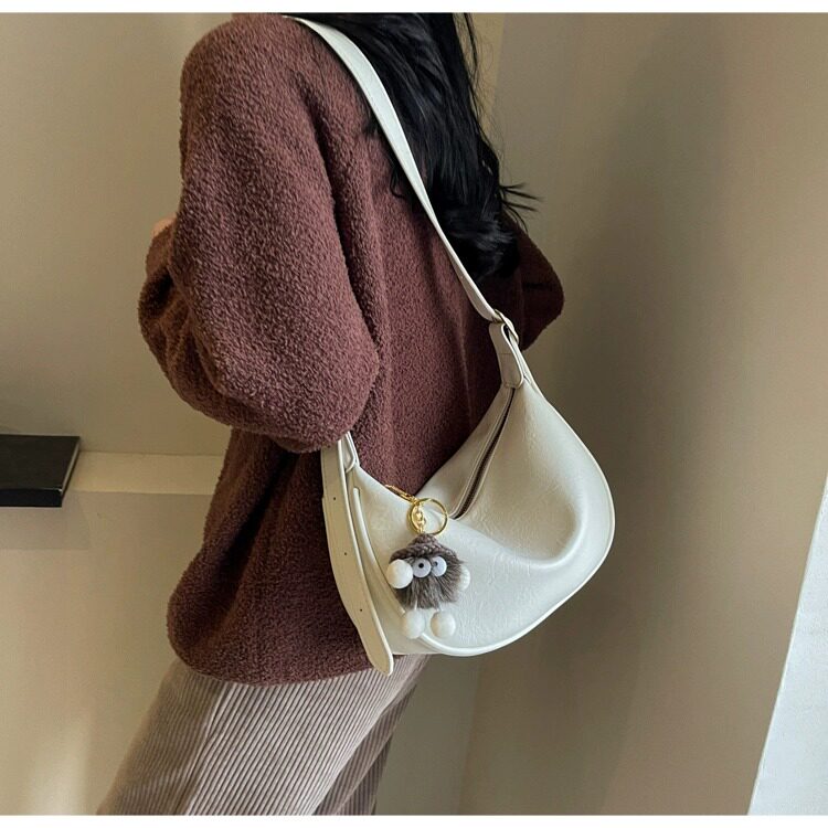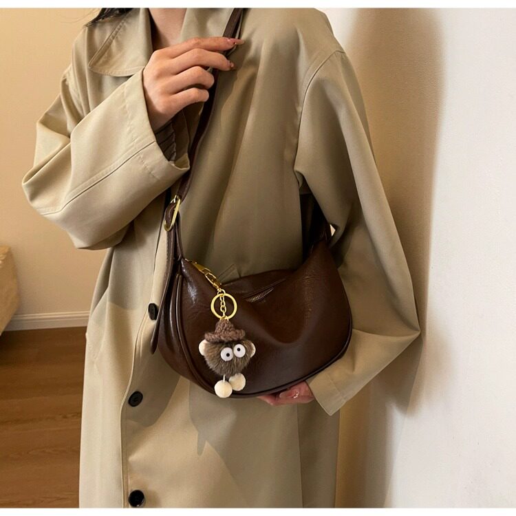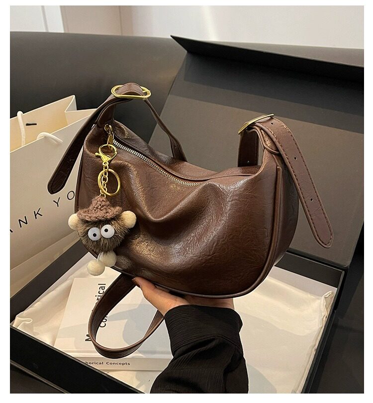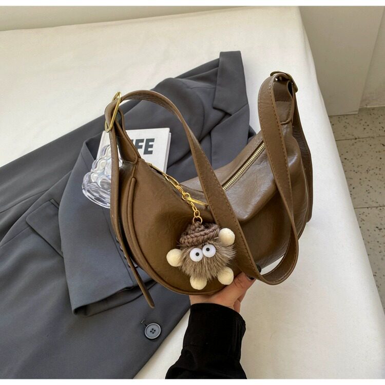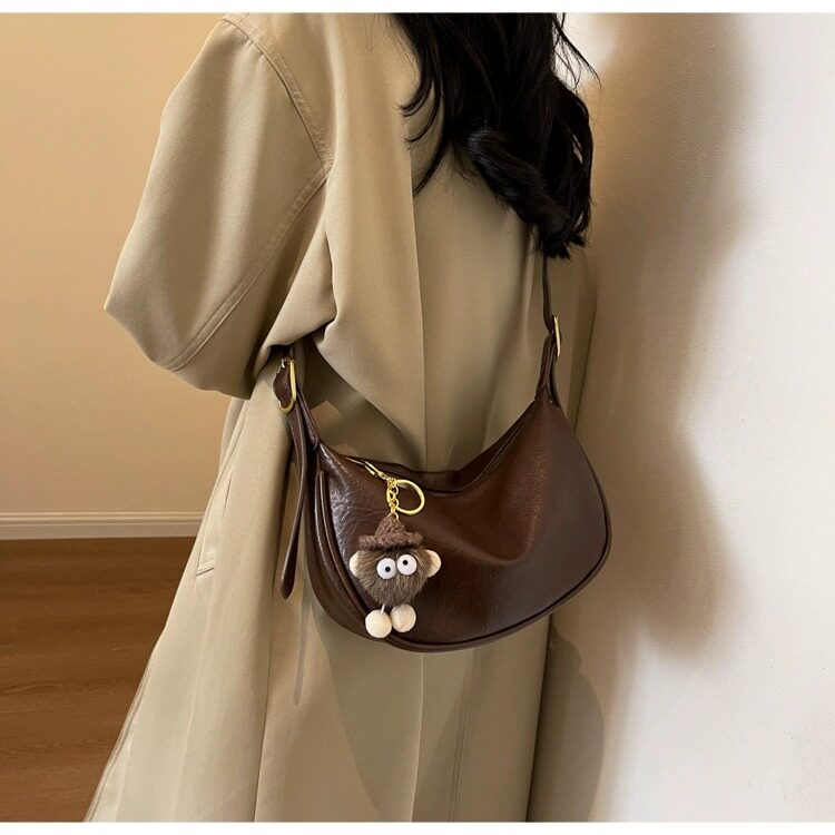 時尚軟皮包包女2026新款休閒斜後後背包夏季百搭餃子包簡約休閒單肩包