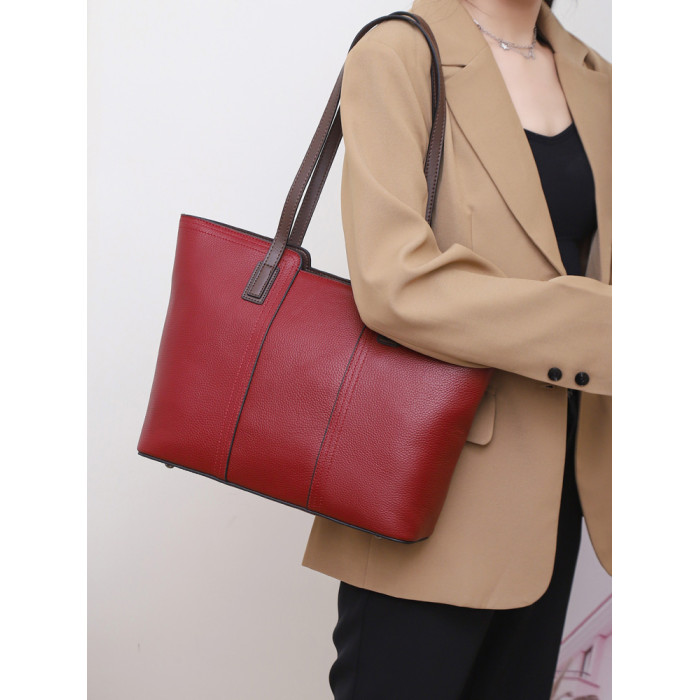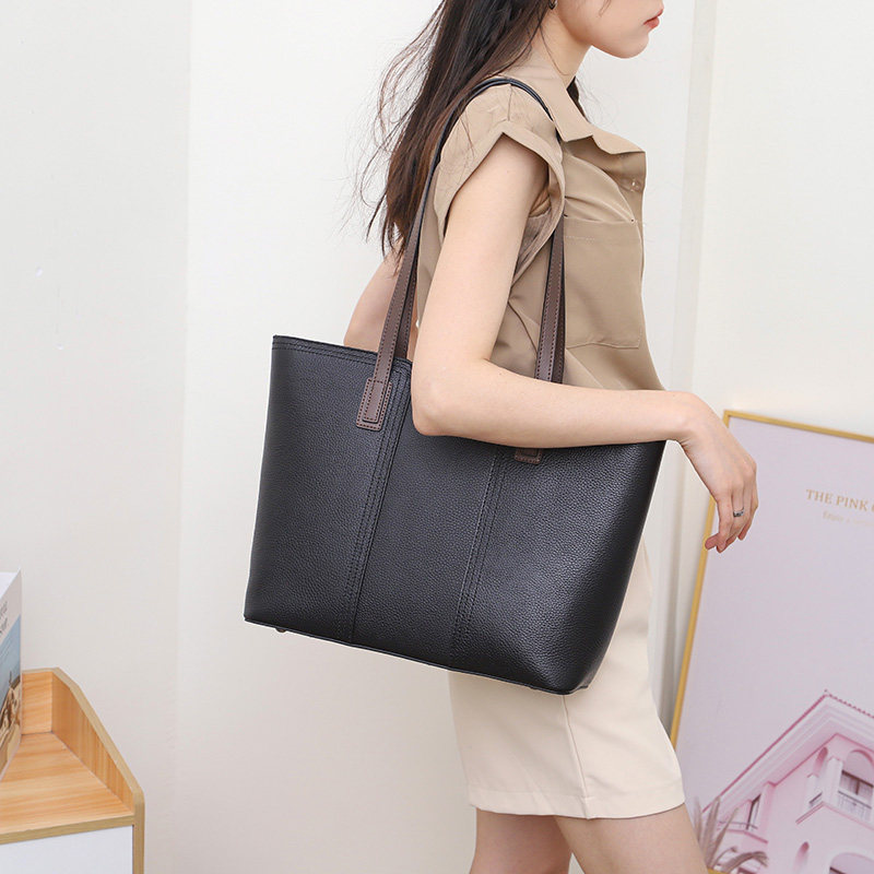 時尚簡約大容量真皮托特包女高級感軟牛皮商務休閒單肩包放A4文件