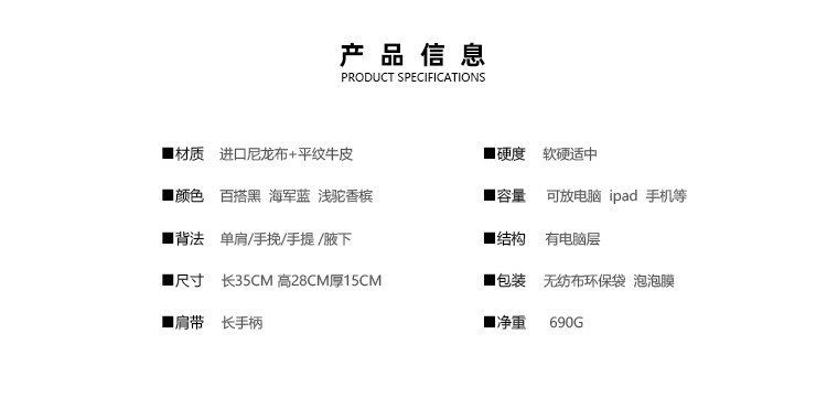 | 箱包硬度 | 軟 |