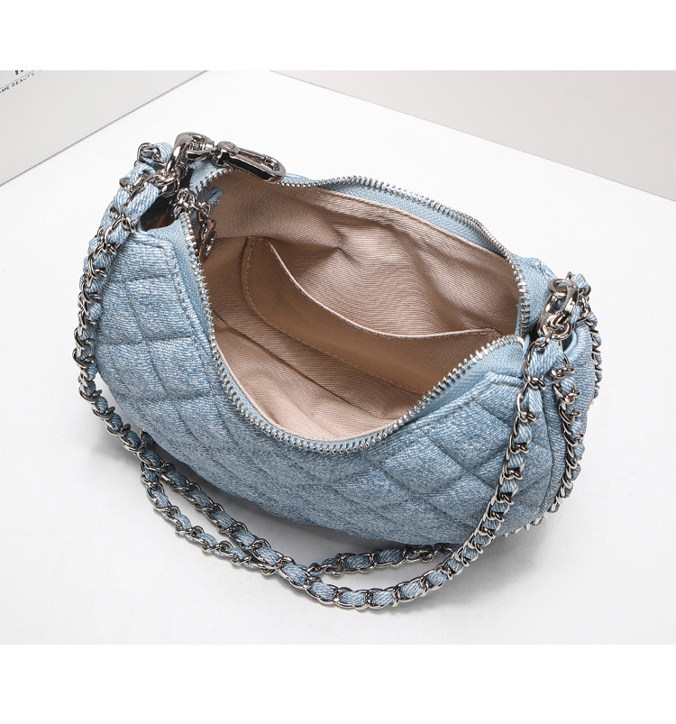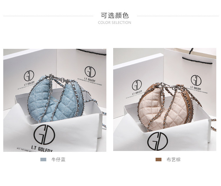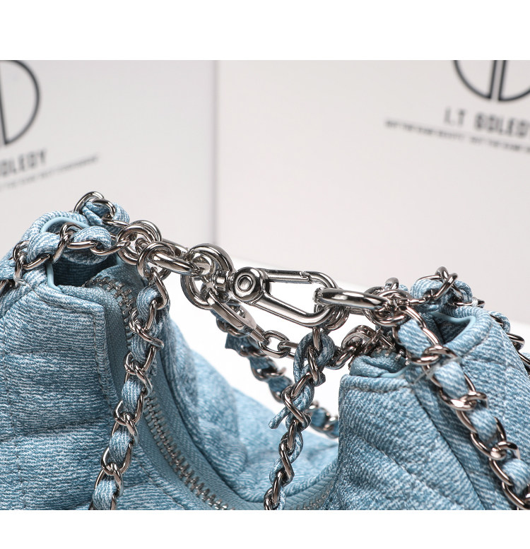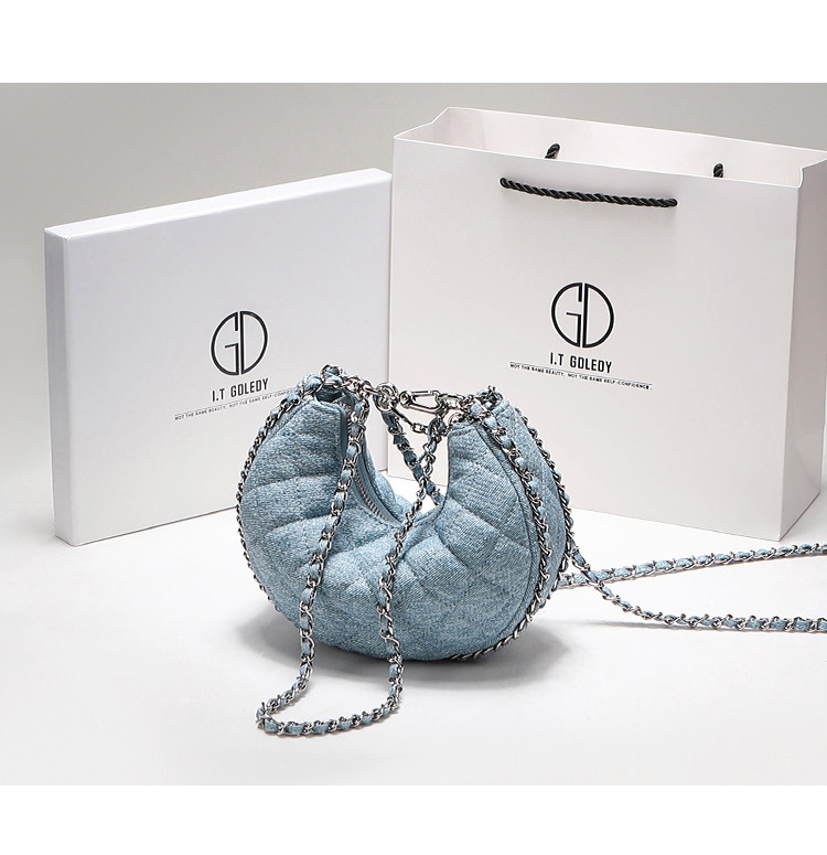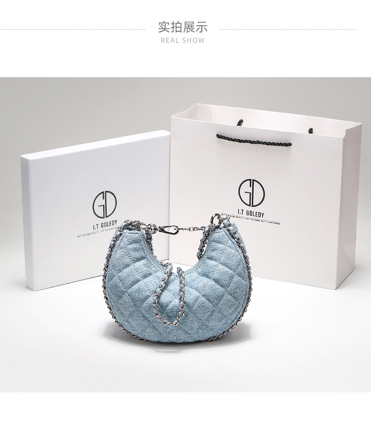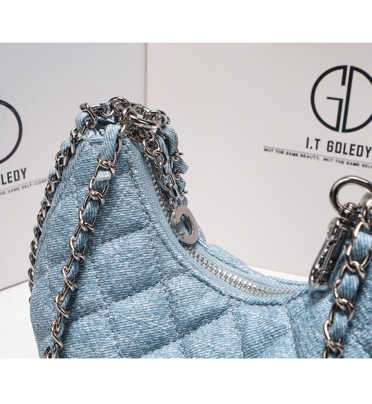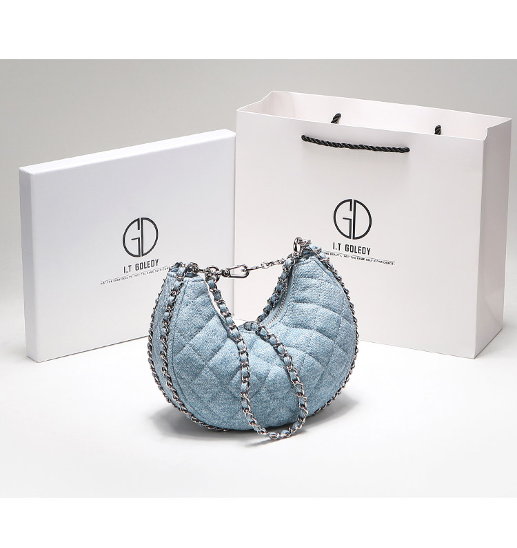 itGdledy小衆包包腋下牛仔包包女2026新款菱格鏈條月牙包斜背小包