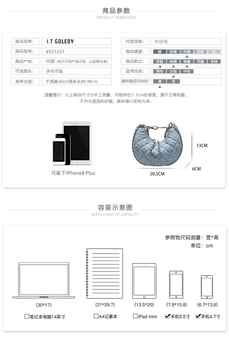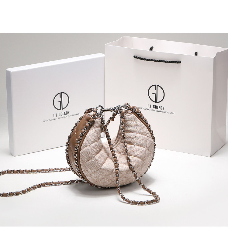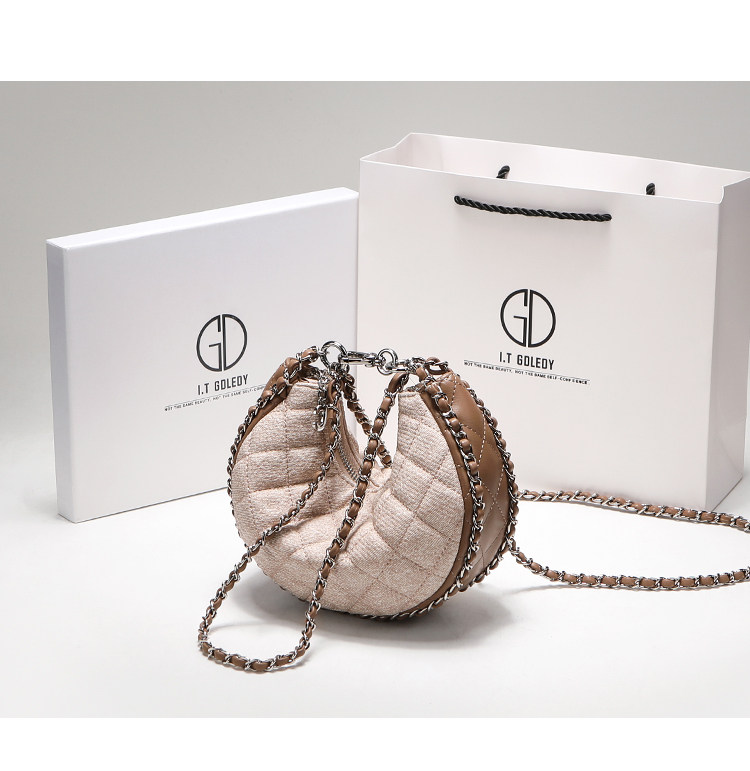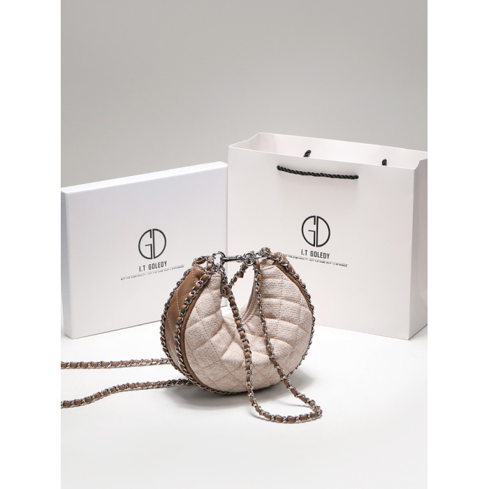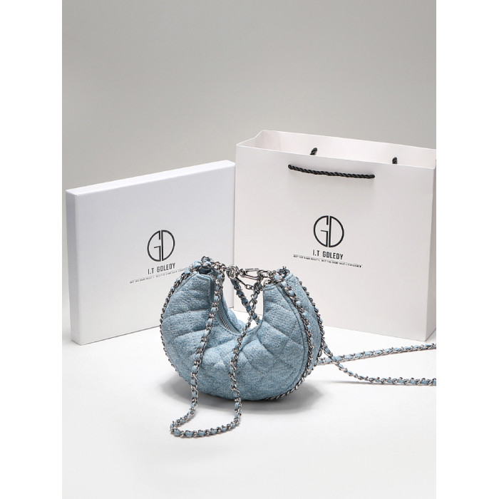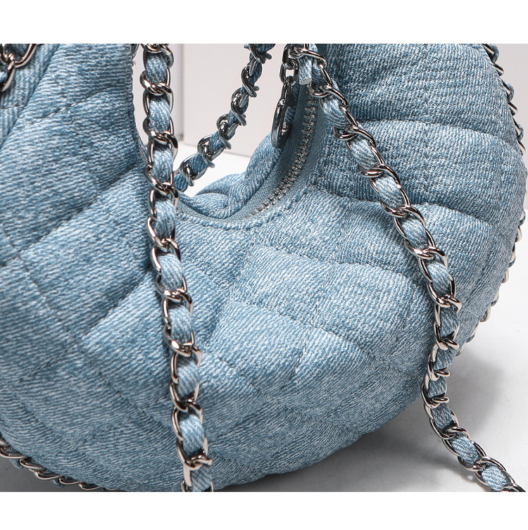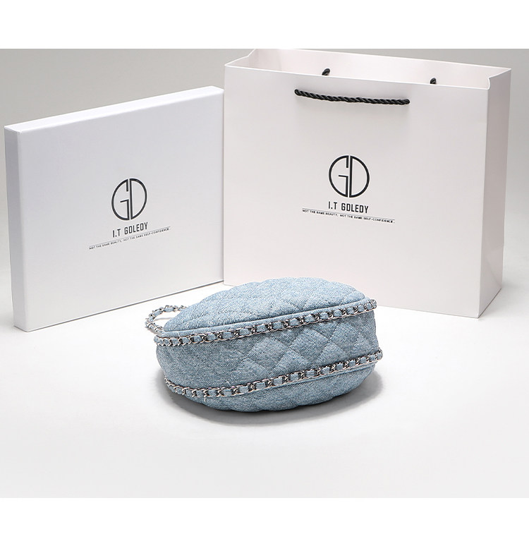itGdledy小衆包包腋下牛仔包包女2026新款菱格鏈條月牙包斜背小包